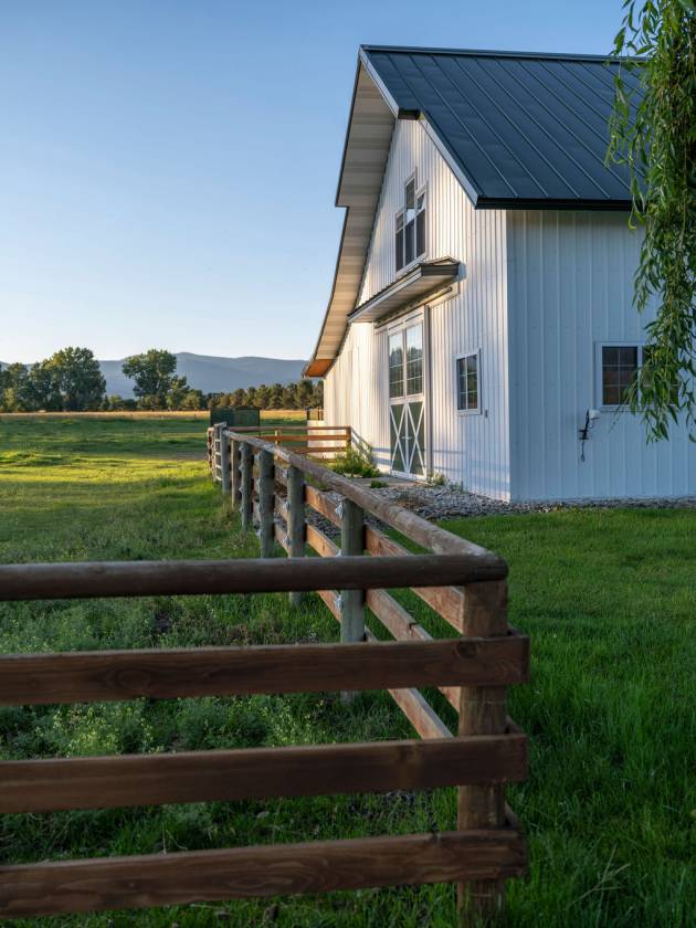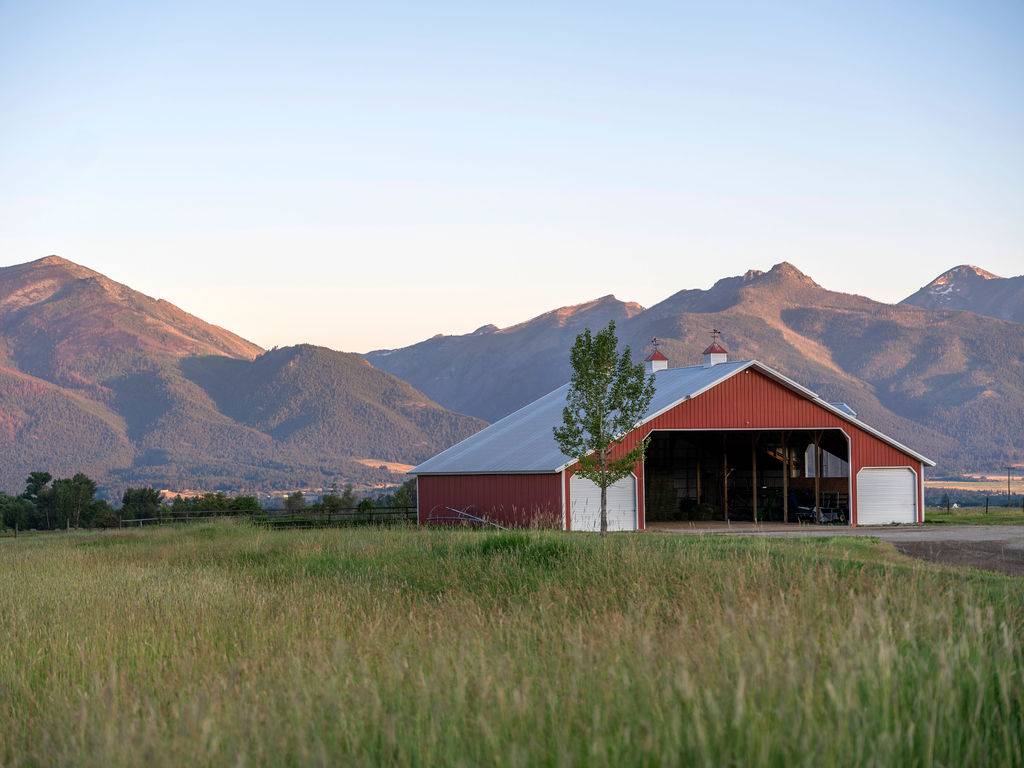 Set in the heart of the Bitterroot Valley, the sprawling St. Clair Ranch spans approximately 244 deeded acres of productive ground with deep agricultural roots, strong equestrian infrastructure, and iconic Montana scenery in every direction. Just minutes from Stevensville and within easy reach of both Missoula and Hamilton, this is a working property with all the essentials and plenty of Montana character. The recently remodeled main home blends classic rustic design with modern comfort. Natural materials, warm wood tones, and simple, enduring finishes give it a timeless feel that fits right into the landscape. With 3,000 square feet of living space, the home is spacious without feeling overbuilt—comfortable, practical, and authentically Montanan. The remodel includes a new boiler system, new wood flooring, new Pella windows, updated electrical wiring, new lighting, removal of non-structural interior timbers, fresh interior paint, stained ceilings, new structural timbers at entryways, a new kitchen sink, a Wolf gas cooktop, new quartz countertops, and more. The exterior has also been updated with fresh paint and a new 30-year asphalt shingle roof. A separate 950 square foot apartment above one of the barns provides additional living space for guests, caretakers, or renters. There is also a one-bedroom, one-bath guest suite with , offering even more flexibility. The equestrian and ranch amenities are extensive on this property, featuring an outside arena, round pen, barn with stalls, storage, a tack room, horse wash bay, and indoor trailer parking. Pole barns offer ample hay storage to support the property's strong hay production. A large shop with four overhead doors provides plenty of space for equipment, trailers, and daily operations. Multiple creeks run through the property, and a large portion of the acreage is protected by a conservation easement that preserves its agricultural integrity and scenic value for future generations. Historic water rights, some dating back to the 1800s, support the ranch's long-standing productivity. With panoramic mountain views and essential infrastructure already in place, this ranch offers space to breathe, the ability to carry on a true Montana legacy, and the chance to enjoy the natural beauty and abundant wildlife of the Bitterroot Valley.