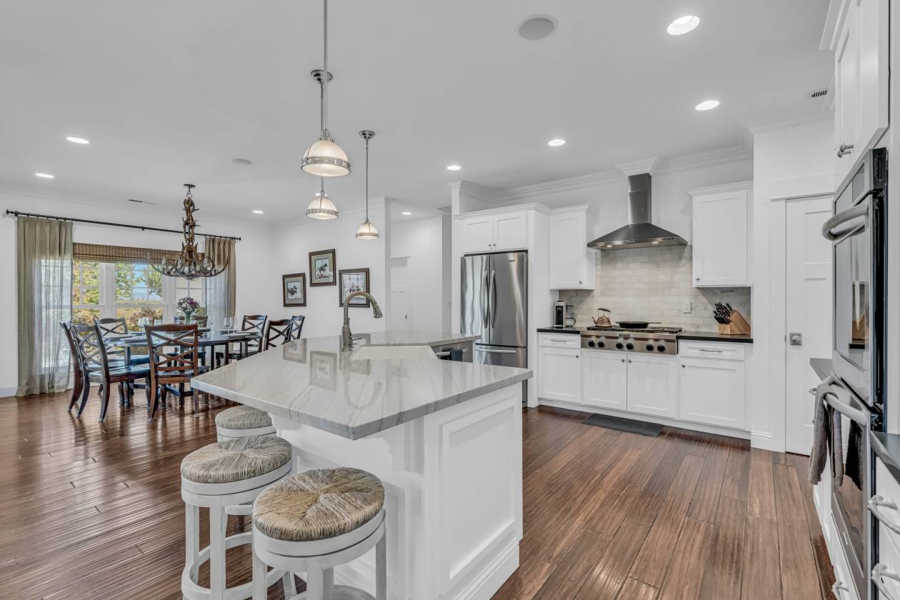 • The luxurious primary suite offers a spa inspired bath with dual marble vanities, a walk in shower, and a jetted soaking tub. A second primary suite provides its own walk in shower, dual vanities, and granite countertops making it ideal for multigenerational living or private guest quarters.