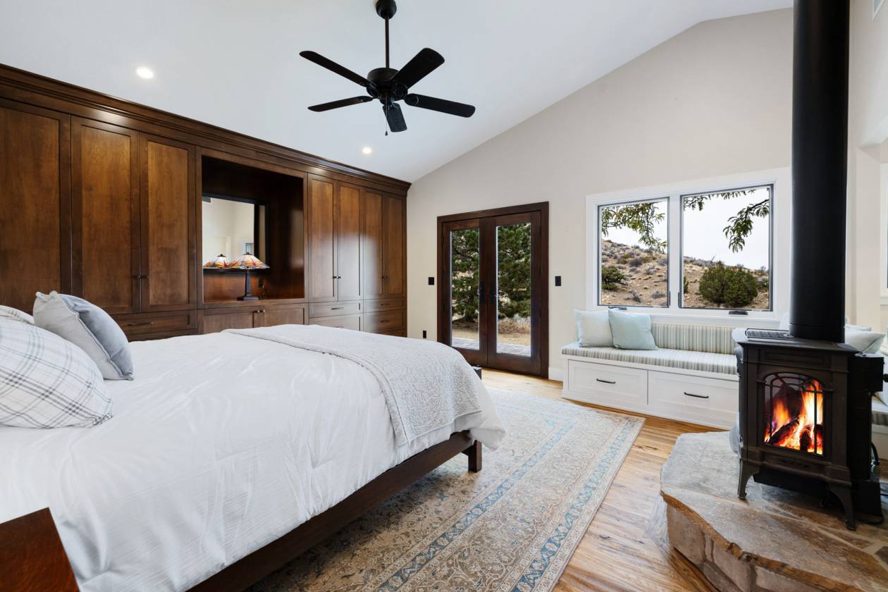 110 Moonstone Lane: A once-in-a-lifetime 200-acre legacy ranch in Red Rock, where rugged wilderness meets refined Western living. This private holding captures the essence of Nevada's open range—rolling hills, panoramic vistas, and miles of trails that begin right off your back porch. Comprising four contiguous parcels, the property's western boundary adjoins over 50,000 acres of BLM land, offering direct and unrestricted access to the Sand Hills and Peterson Wilderness—a vast and untamed expanse ideal for trail riding, hiking, and exploring Nevada's backcountry in pure solitude. The ranch-style residence crowns an elevated ridge with sweeping, cinematic views in every direction. Completely reimagined in 2016, the home blends rustic craftsmanship with understated luxury—featuring Aries Brothers cabinetry, leathered granite counters, Wolf, Miele and Zephyr appliances, a true cast iron clawfoot tub, and real hardwood flooring throughout. Custom built-ins accent each room, and a Jotul wood-burning fireplace with a reclaimed timber mantle from the Davis Creek Ranch anchor the great room, while every window frames an ever-changing visual masterpiece - Sand Hills and Peterson Mountain Wilderness, the Dog Skins and Virginia Peak, Fred's Mountain, and even down to Sonora Pass along the sweeping Eastern Sierra front - almost 120 miles! The equestrian compound is purpose-built for those who ride, train, or simply live the lifestyle. A custom six-stall cedar barn showcases handcrafted ironwork designed for durability and beauty. A secondary barn provides two additional stalls, hay and equipment storage, and a wash rack. The professional-grade 90' x 90' arena and round pen—each built with reclaimed oil field piping and deep concrete footers—are designed to handle serious use. Two custom single-track, multi-use trails of 4.5 miles wind through the property. Rollercoaster trail ascends to the property summit with stunning views back onto the home and barns and up into the exquisite rocks of the Sand Hills. Rock Garden trail explores quartz-laced, wind-carved boulders, and summits the iconic property mesa with 360-degree views of colorful mountains and sweeping valleys unlike anywhere else in Northern Nevada. For the discerning buyer seeking adventure, privacy, majestic scenery, and connection to the land, this property offers it all—breathtaking sunrises and Alpen-glow sunsets, crisp snow-capped horizons, and endless adventure by horseback, mountain bike, on foot or on side-by-side. Just 20 minutes from town, yet it feels a world apart—an authentic Nevada sanctuary, truly one of a kind. 4 Parcel IDs : 079-371-06, 079-371-10, 079-371-11, 079-371-12