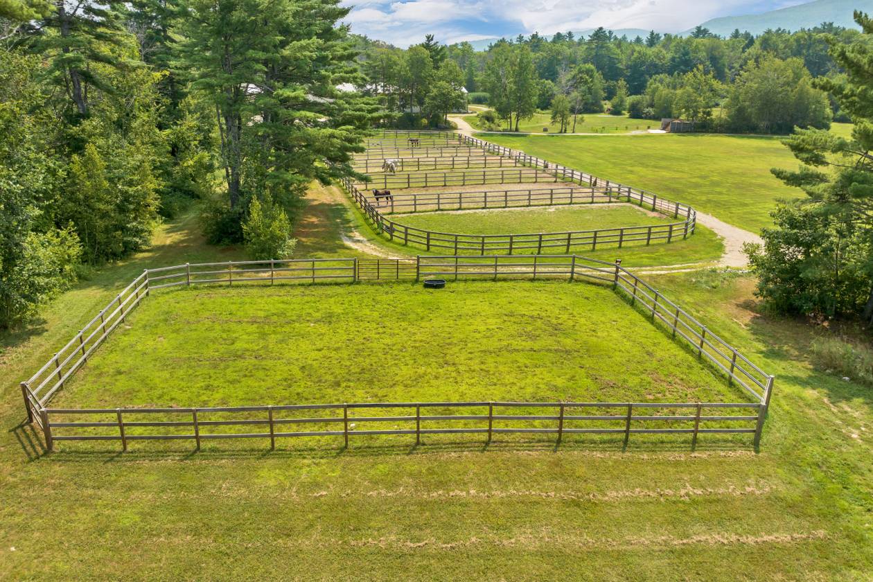 Welcome to 251 Wentworth Road, a one-of-a-kind equestrian retreat, where rustic elegance meets world class horse care! In the heart of New Hampshire, on 15 acres of pastures, trails, and forest, this historic New England estate boasts a blend of comfortable living, professional-grade horse facilities, and a beautifully restored 45x45 antique event barn, perfect for entertaining, weddings, retreats, or private gatherings. The main residence offers a custom, updated kitchen, an inviting year-round sunroom with a new wood stove for warmth and ambiance, ample living spaces and a private primary suite. The home includes three other bedrooms, and an in-law apartment tucked upstairs with direct access to the event barn. Beyond the house is the sprawling equestrian retreat, with 9 paddocks, pastures with ample plantings for grazing, a pond, and trails throughout. The updated regulation arena includes 15 matted stalls, top of the line footing, 150 LED lights, as well as ample observation, clinic, hay loft, and adjacent outdoor arena with premium footing. The property is enhanced with perennial gardens and garden beds, adding to the serene ambiance. Whether you're seeking a premium horse facility, an extensive country estate, or an unforgettable event venue, 251 Wentworth Road delivers unmatched beauty and quality in the Lakes Region of New Hampshire.