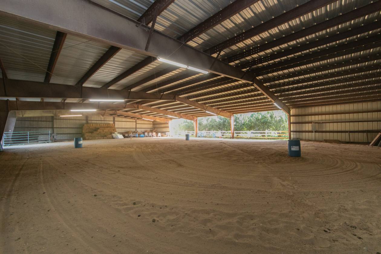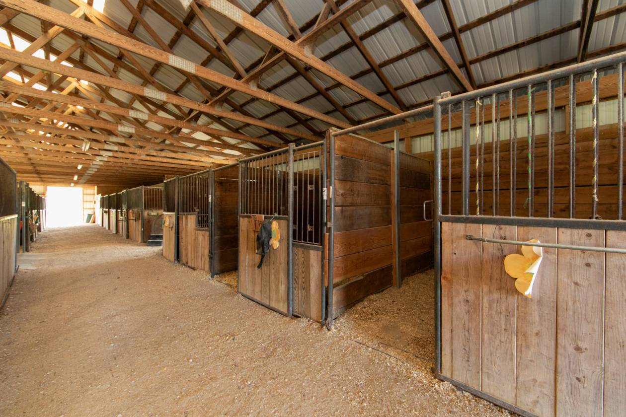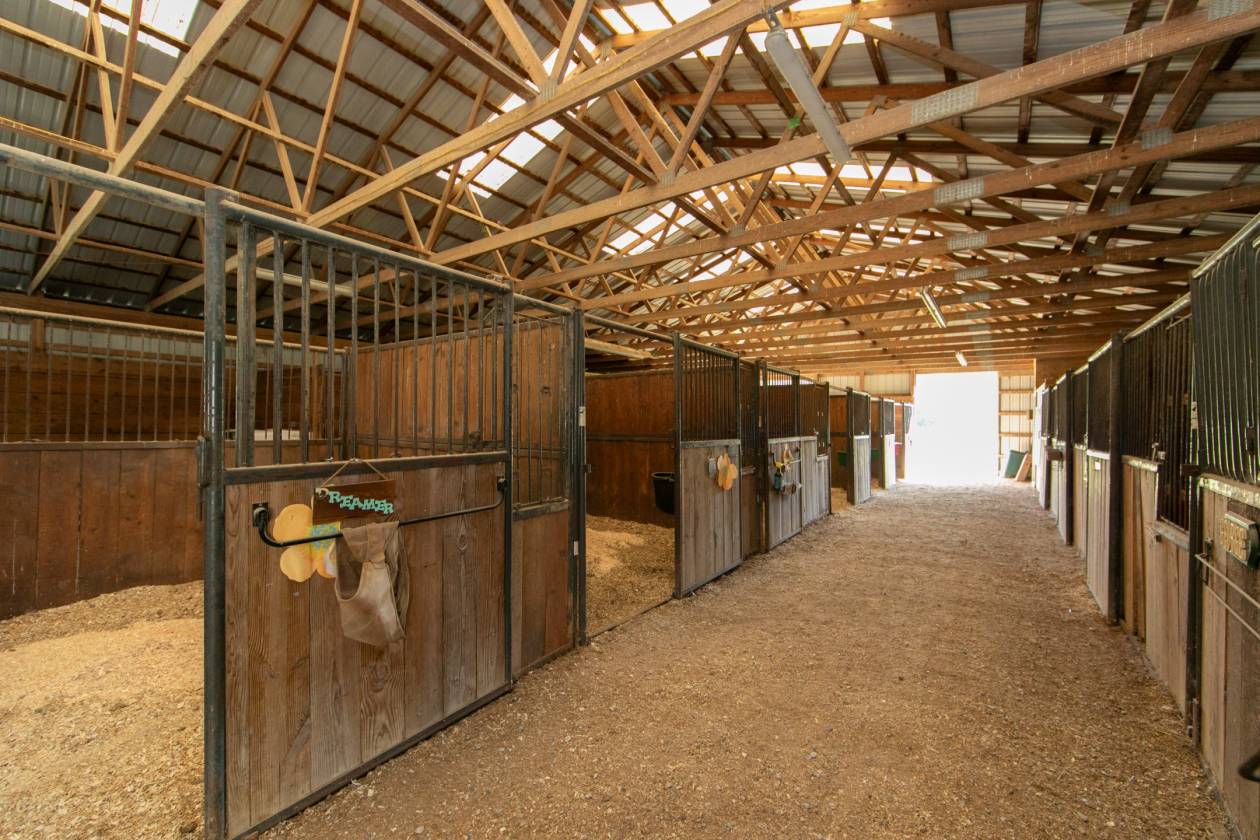 - 23 stall barn with matts which measures 125 x 50, with office, 100 x 150 outdoor, 120 x 80 indoor, wash bay, secure take room.