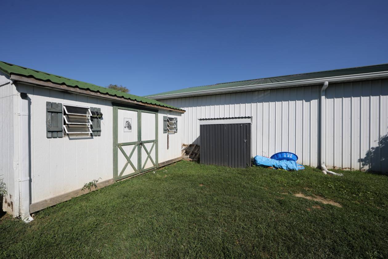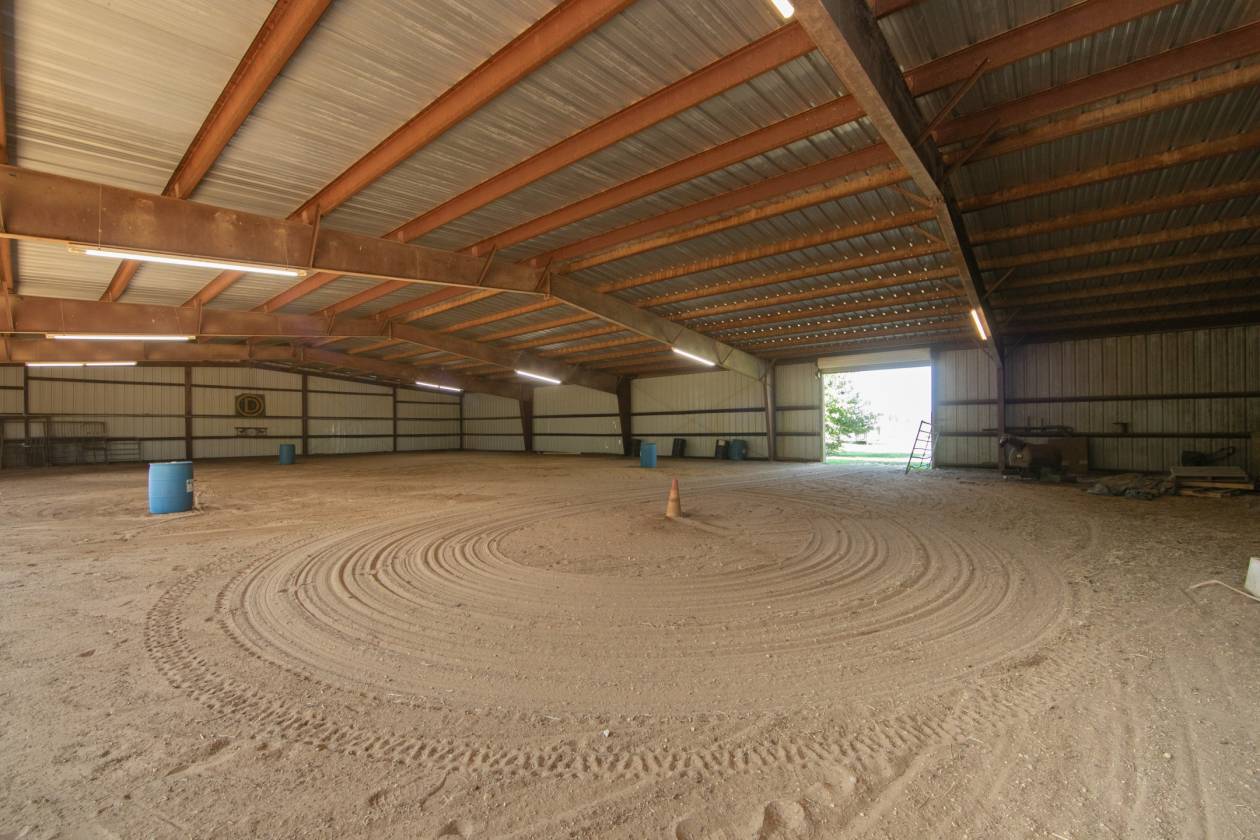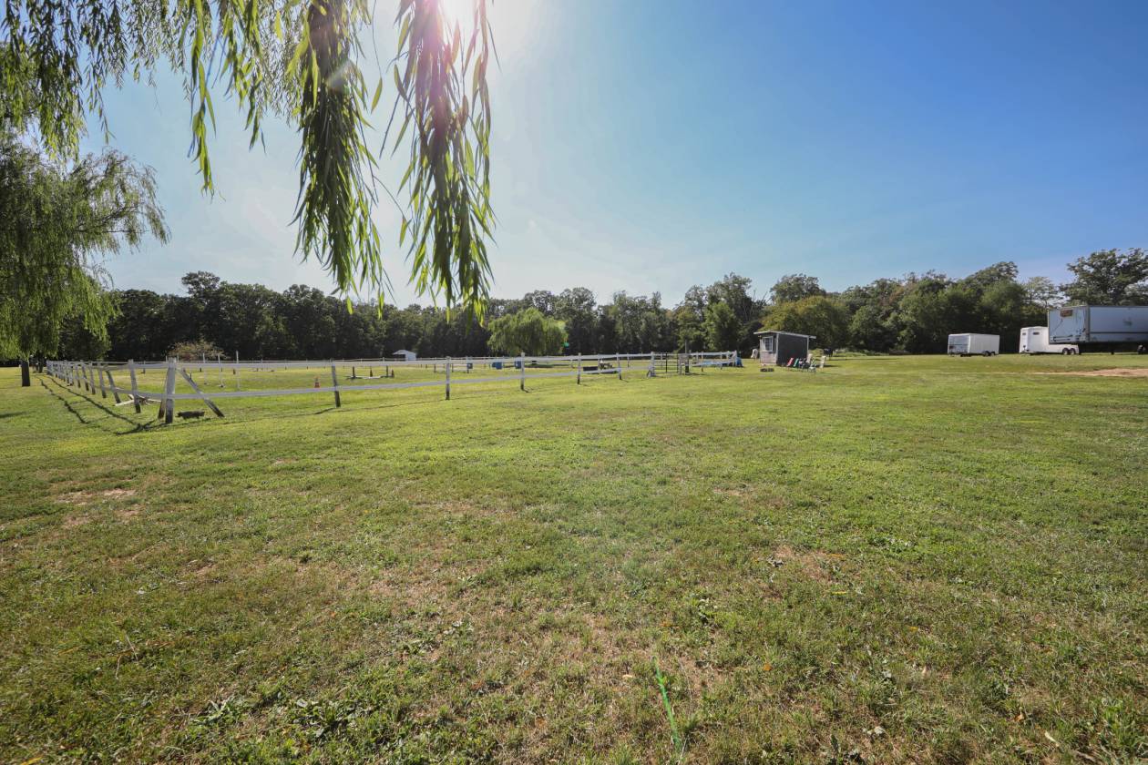 28 acre horse farm with 120 x 80 indoor riding arena. Not many farm for sale at this price with an indoor. 23 stall barn, outside wash bay, fenced, 60 ft round pen, and outdoor riding arenas with judges booth. The indoor has plenty of space to store hay, shavings, carriages with an open side for ventilation. Outdoor riding arena is 100 x 150 with modern led lighting. 5 huge grass filled turn out pens with frost free hydrants and 3 large run in sheds. Plenty of parking area for cars and trailers. The farm has weeping willows that are lovely and create shade during the summer. Gorgeous pear trees line the road frontage.