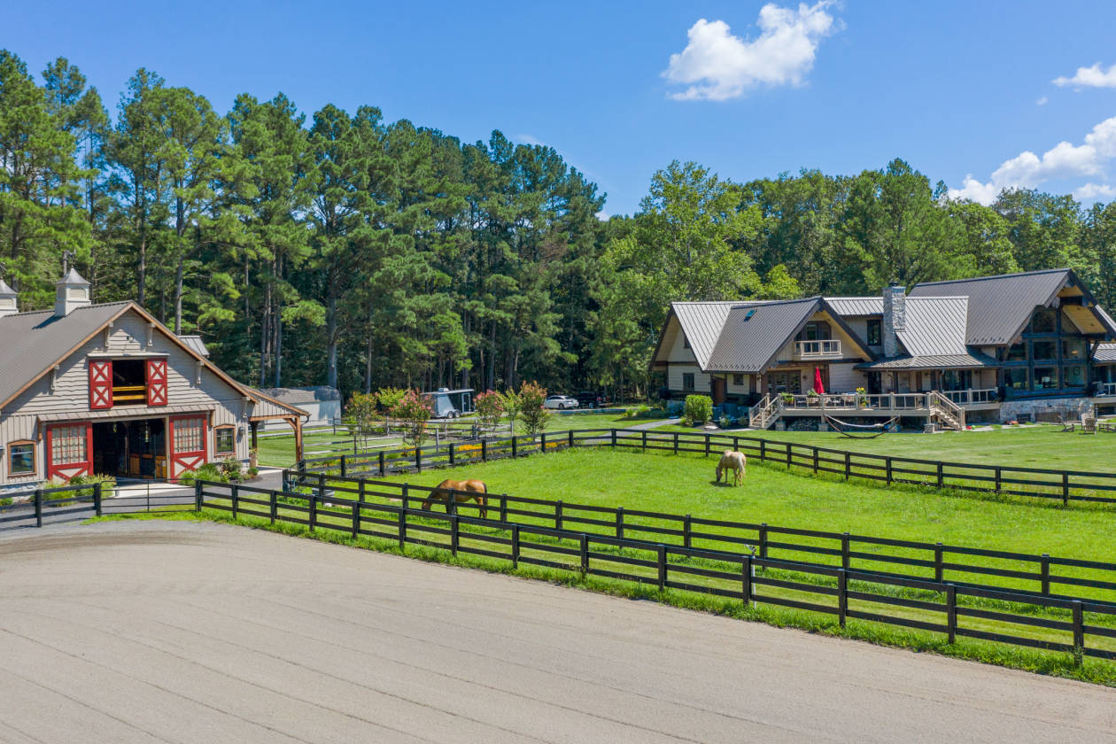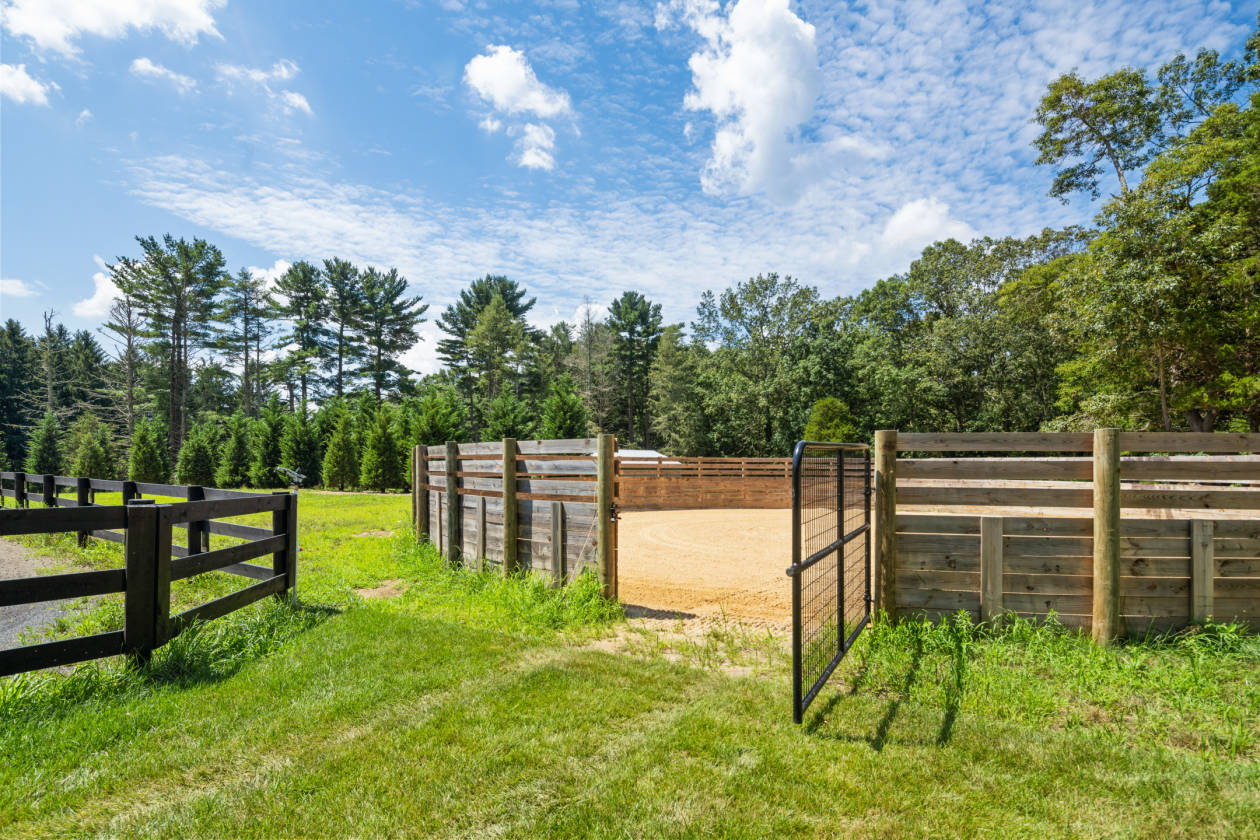 - 31 Acres. Riding Trails in the woods. Round pen, 5-6 turnouts, outdoor wash stall, wooded riding trails. 8 acres of fenced pastures with solar-powered electric fencing and water, 60' round pen. 100' x 180' riding ring with irrigation system. Whole-house & barn generator. HVAC: 4 zones house, 1 zone barn. Smart switch exterior lighting. Timer for exterior barn lights.