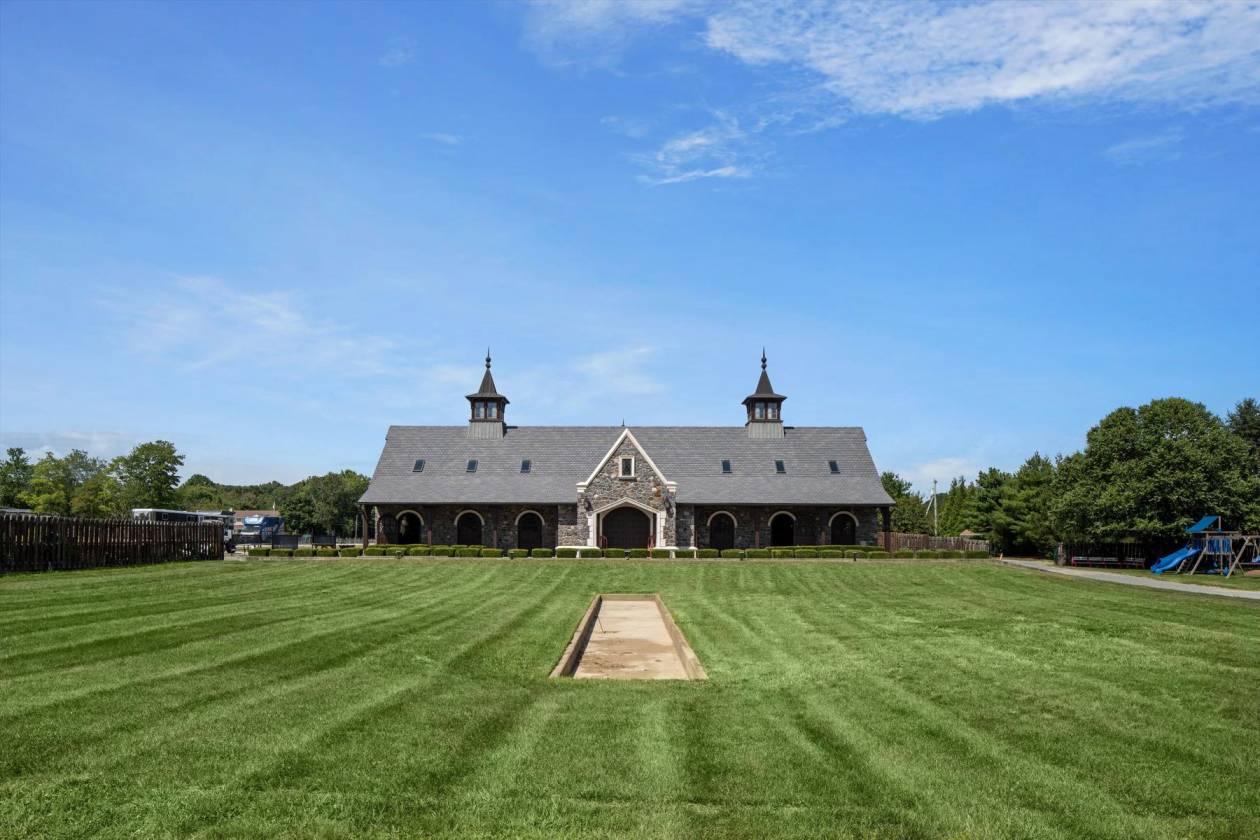 Welcome to a one-of-a-kind equestrian estate that blends privacy, beauty, and world-class amenities across approximately 60 pristine acres. Whether you envision it as a private family retreat, a working equestrian estate, or a stunning country escape, this property delivers on every level. From the moment you arrive through the grand gated entrance, you’ll know you’ve entered a retreat unlike any other. Meander down a treelined drive to a stunning residence, where craftsmanship, comfort, and eco-friendly living come together. This custom-built stone and timber frame home, designed with sustainable SIP construction, is not only elegant but efficient, and thoughtfully designed to keep utility costs low without ever compromising on style. A gorgeous entrance invites you into a spectacular great room with a soaring cathedral ceiling, exposed beams, Italian marble floors and a handsome woodburning fireplace. The open floor plan flows into a magnificent kitchen, custom cabinetry, granite countertops, outfitted with professional-grade Wolf appliances, two dishwashers, pullout refrigerators and freezers, warming drawer, induction cooktop, double oven with 6-burner range w/ griddle, butler’s pantry and walk-in pantry. The perfect blend of beauty and function. Tucked away on the first floor is a dedicated wing for the primary bedroom suite with a woodburning fireplace, a custom walk-in closet, a luxurious spa-like bathroom with antique soaking tub, walk-in shower with jets, steam and tanning feature. A spacious sitting room with cathedral ceiling, stone woodburning fireplace, amazing natural light with elegant doors accessible to a private outdoor oasis w/ a covered pergola and a Michael Phelps swim spa. Also conveniently located on the main level, you will find a wet bar, den w/ fireplace, a full bathroom and access to a temperature controlled oversized 3-car garage w/ catering kitchen w/ a Sub-Zero refrigerator, ice machine and two convection ovens. An elevator takes you to a private & secure upper-level w/ an office and cozy den. The elevator also provides access to the lower level with a custom wet bar, powder room, 2nd laundry room and incredible storage. The secondary bedrooms are located at the opposite end of the home on the 2nd level. This wing includes a family room, 3 en suite bedrooms and laundry. The home offers the perfect integration of indoor and outdoor spaces with multiple access points to the extensive, wraparound brick paver patio, which is perfect for relaxation and entertainment. The resort-style pool complex boasts a saltwater heated pool w/ waterfall feature, sun shelf, spacious hot tub, custom slide and infrastructure for a future pool house and bocce ball court.
