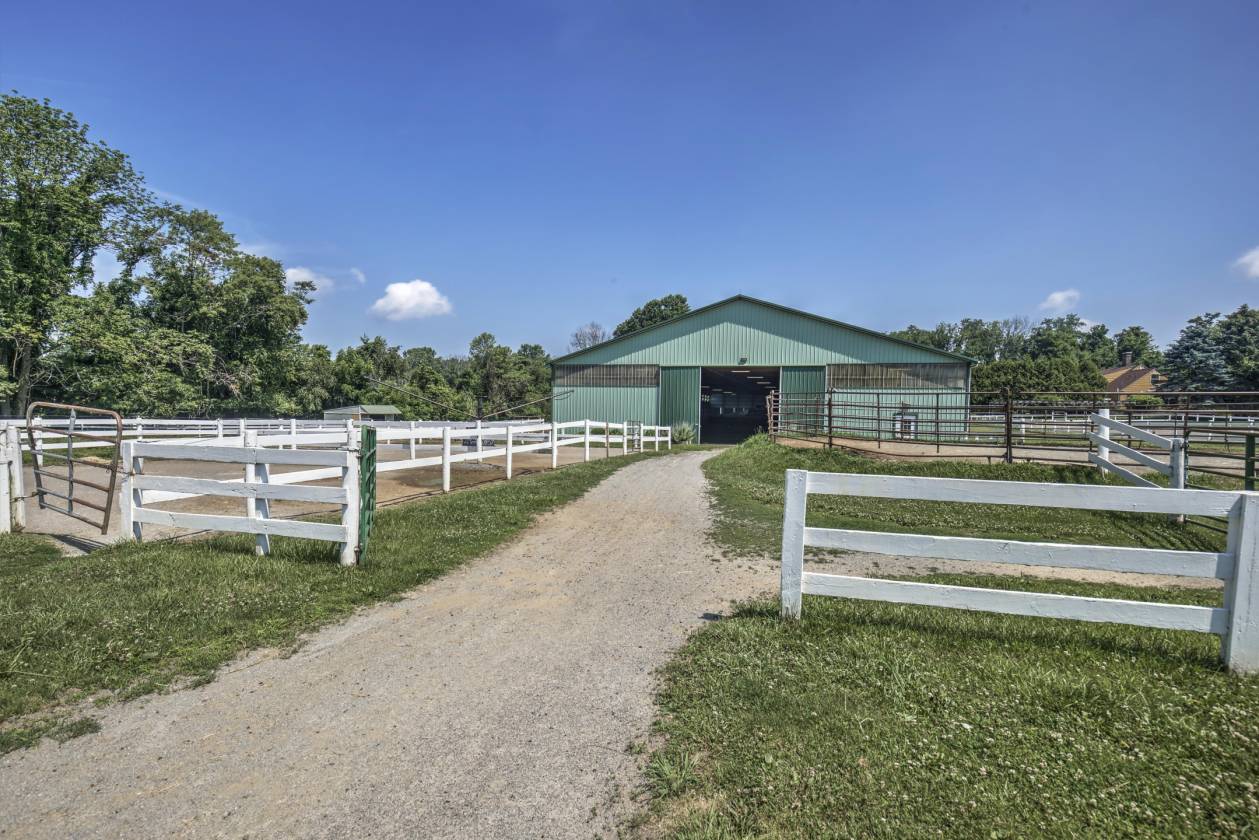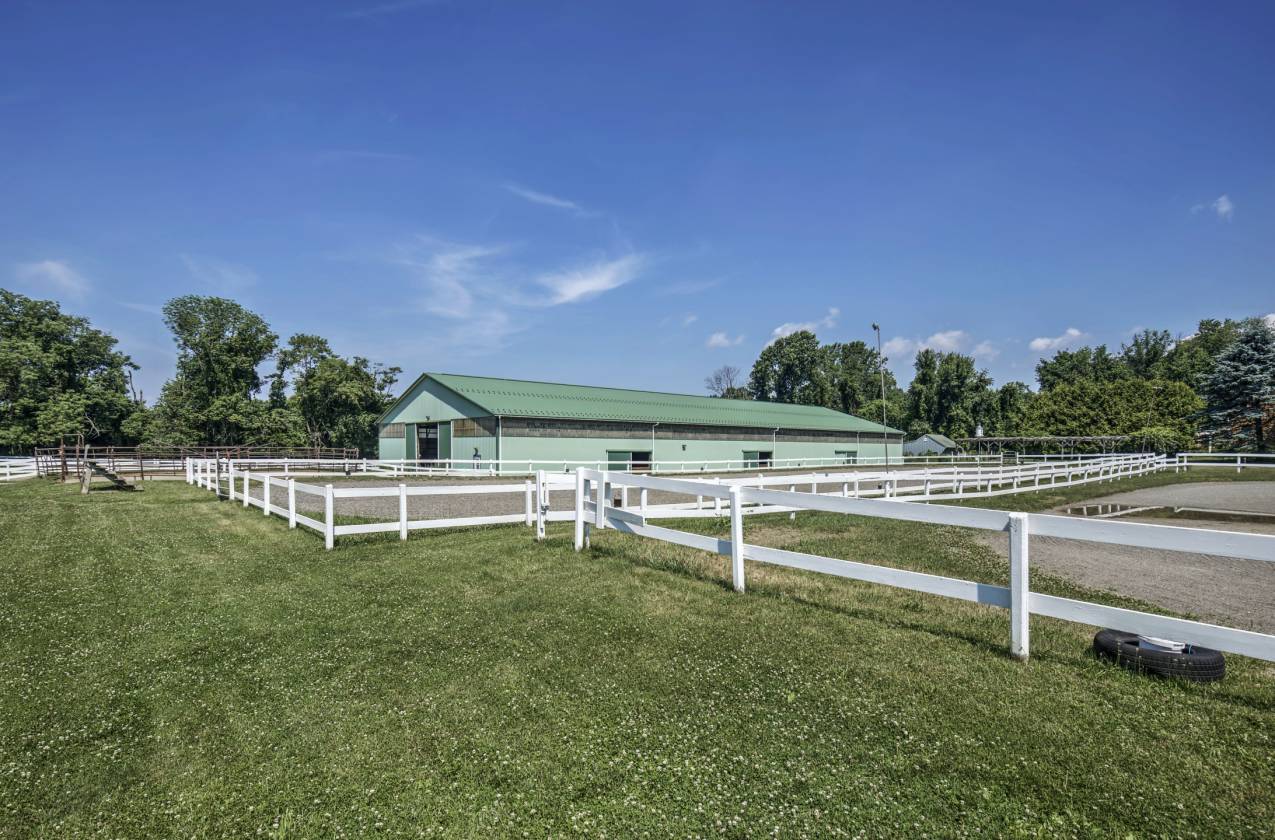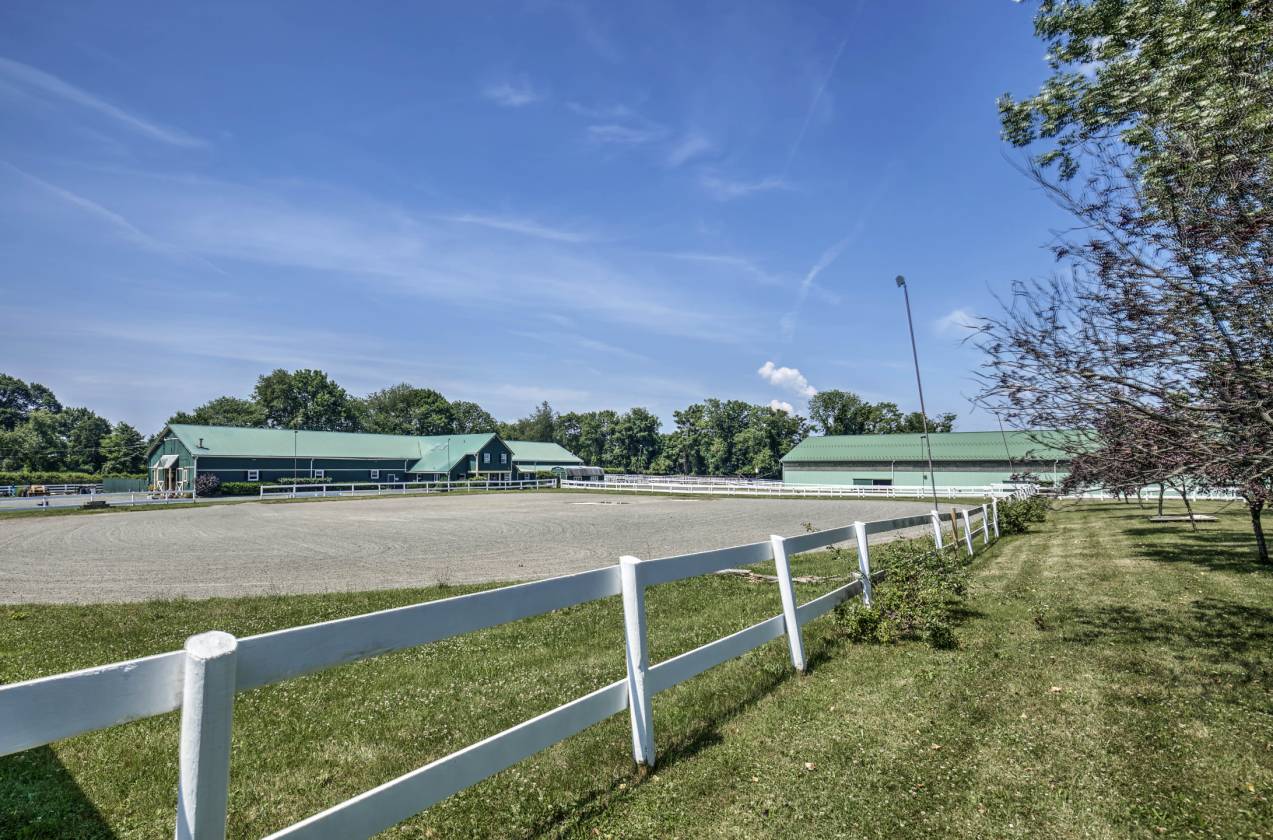 Located in TEWKSBURY TOWNSHIP, NJ. Thoughtfully designed, this turn key facility is ready for its next owner. A storied history unfolds showcasing the renovation and improvements lovingly done by its current owner. The equestrian complex features an amazing 200’x80’ state of the art indoor arena with professional footing, mirrors, LED lighting, sliding windows providing excellent ventilation and high ceiling suitable for jumpers! The stable includes 21 stalls, center aisle, attached renovated apartment, PUBLIC WATER and is heated with NATURAL GAS! There is a full hay loft, wash stall, laundry, lounge and office with a half bath! The property has 10 stone dust paddocks located right out the barn for ease of turnout, and 7 grass turnouts OR design the field to your liking. There are TWO outdoor arenas: 196’x80’ and 180’x200 which are fenced. A separate driveway enters to the lovely cottage style 4 bedroom home. Custom built, this home features an open floor plan and a first floor primary suite. Charming details including beautiful gardens and hedgerows providing privacy from the facility. Its prime location affords accessibility to the Rt 78 corridor, top veterinarians in the country, feed and tack stores and is just minutes from the USET, fox hunting and horse shows. Christie Hoffman Park is a short hack for those desiring trail riding and hunter paces.