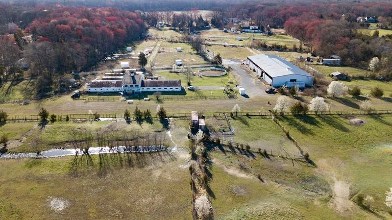 - 30+ acres of mostly level and gentle sloping land that includes a half mile stonedust racetrack, (built by the same builder as the Freehold Racetrack), plus 20 fenced in paddocks with run in sheds. Indoor and outdoor arenas for riding, 60 foot sand round pen with sand footing and observation deck. Playground area for young kids. A rambling stream boarders the south side, plus 2 ponds on the farm, including one inside the ten acre field inside the track, and one up at the house near the driveway with a working aerator fountain. Property has development rights intact, (has not been preserved), and is on a highway (Rt 537) so the commercial value in there as well. Farmstands/stores allowed. All this within 1/2 hour of the Jersey Shore (yes, BEACH riding!) and 80 mins to NYC, 1 hr to Philly, 1 hr to Atlantic City. EXCELLENT LOCATION ON ROUTE 537, EASY ACCESS TO ANY MAJOR ARTERY IN NJ! Just 5 miles from Six Flags Great Adventure, and the New Hilton Gardens and NJ Sports complex being built, Highway 195. ADDITIONAL *5 acres with the (3) two bedroom rental cottages ARE INCLUDED in this price; that parcel of land has a "special business zone", whereby it can be developed into 1/4 acre lots and/or commercial business purposes. Special price for purchase of both parcels. Unusual income opportunity! Build a small "Equestrian Community"! Commercial professional appraisal available upon request of serious screened buyers.