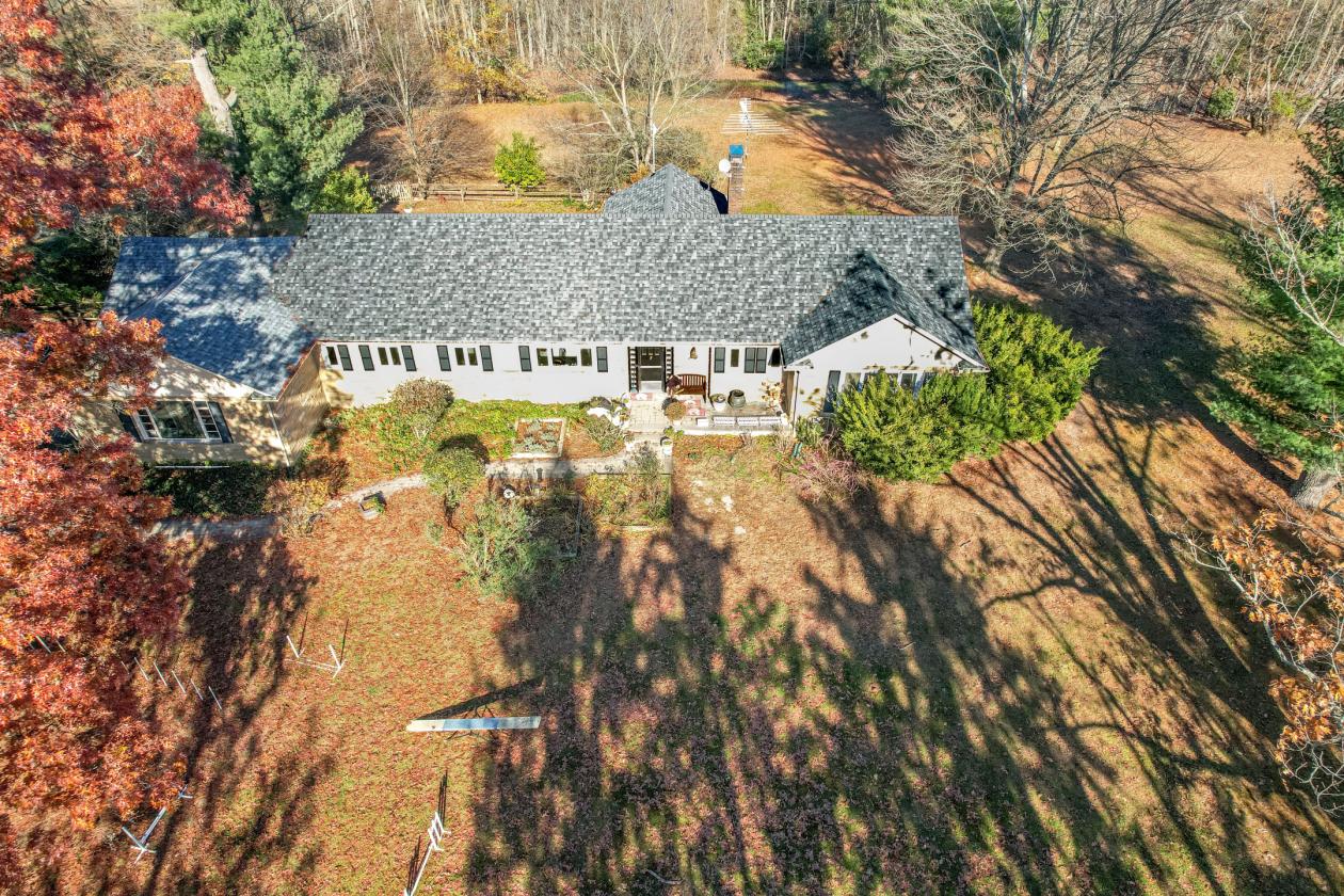 - 3178 sq ft Rancher with full basement. 3 bedrooms, 2.5 bathrooms. Primary bedroom has updated bathroom. 2 more large bedrooms and a hallway bath. Large eat in Kitchen, Den with tile flooring and office area. Large living room with large dining room attached. Large windows to see the farm. Separate well & septic. 3 car side entrance attached garage. Fenced front yard and back yard for the dogs. Lovely patio out back. Second home in the back portion of the property has its own well and septic. Heated by oil. 3 bedrooms, 1 bathroom and a basement. Great for family, care takers and of course added income.