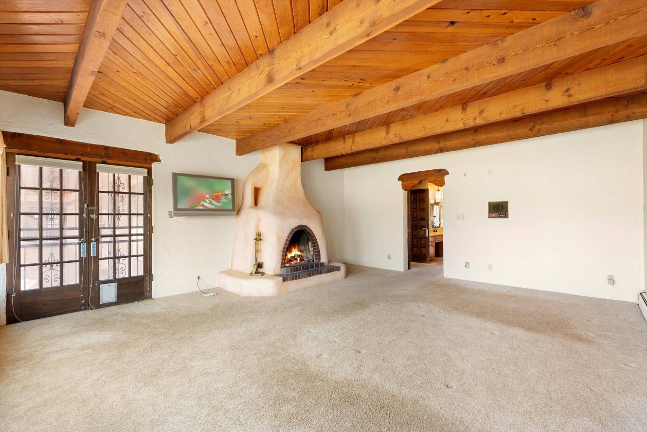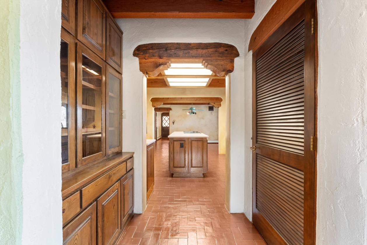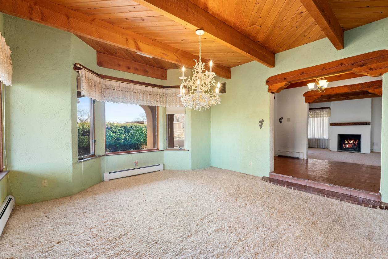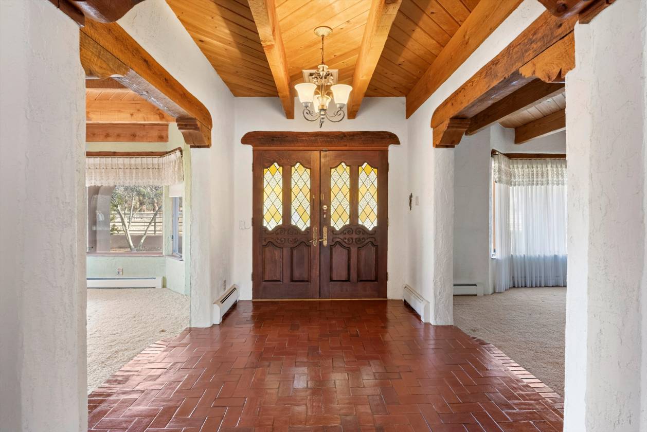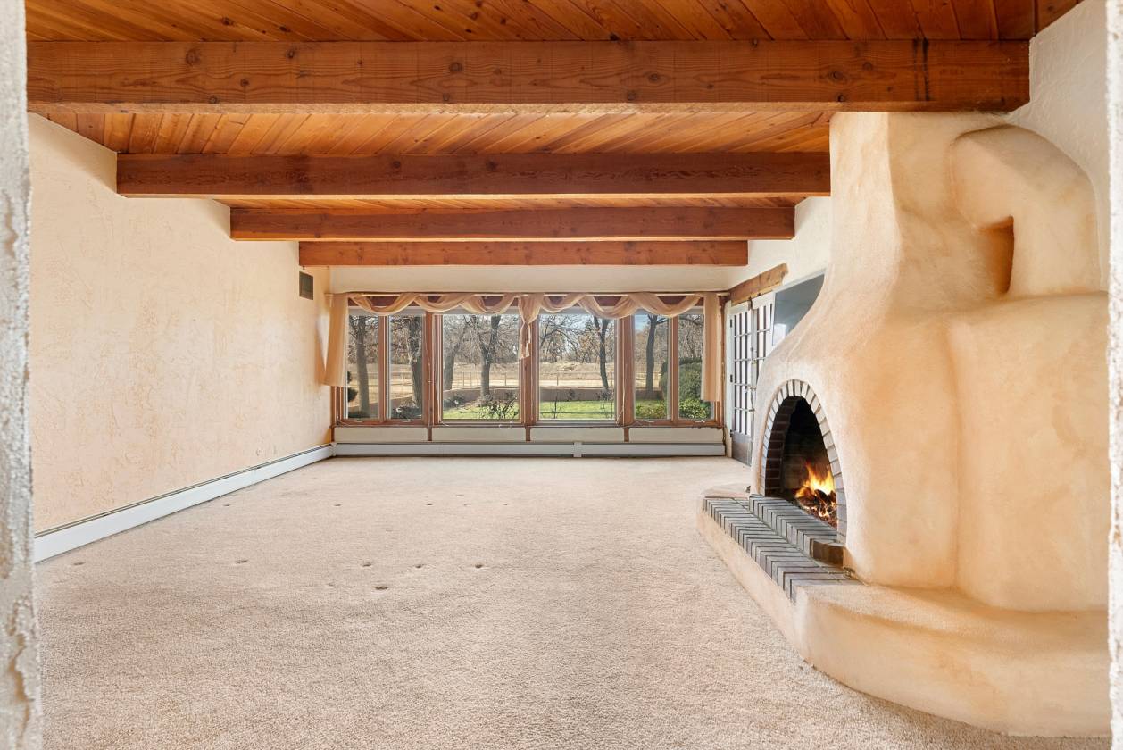 Welcome to this extraordinary 4,500-square-foot SW Pueblo-style estate, located in the prestigious Los Ranchos area in Albuquerque's picturesque North Valley. This single-level home is a rare find, set on 3.6 beautifully landscaped acres, offering endless possibilities. The home's exterior exudes timeless charm, with sprawling verandah, open fields, a pool and hot tub. Inside, you'll find authentic brick flooring, rough cut beams, and T&G ceilings that showcase the craftsmanship of a bygone era. A cozy in-law suite with a kitchenette, bedroom, and living area adds convenience and flexibility. Rarely does an opportunity like this come along. Experience the perfect blend of rustic elegance and functionality in one of Albuquerque's most sought-after locations.
