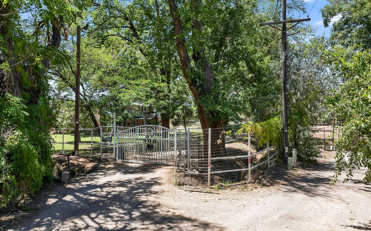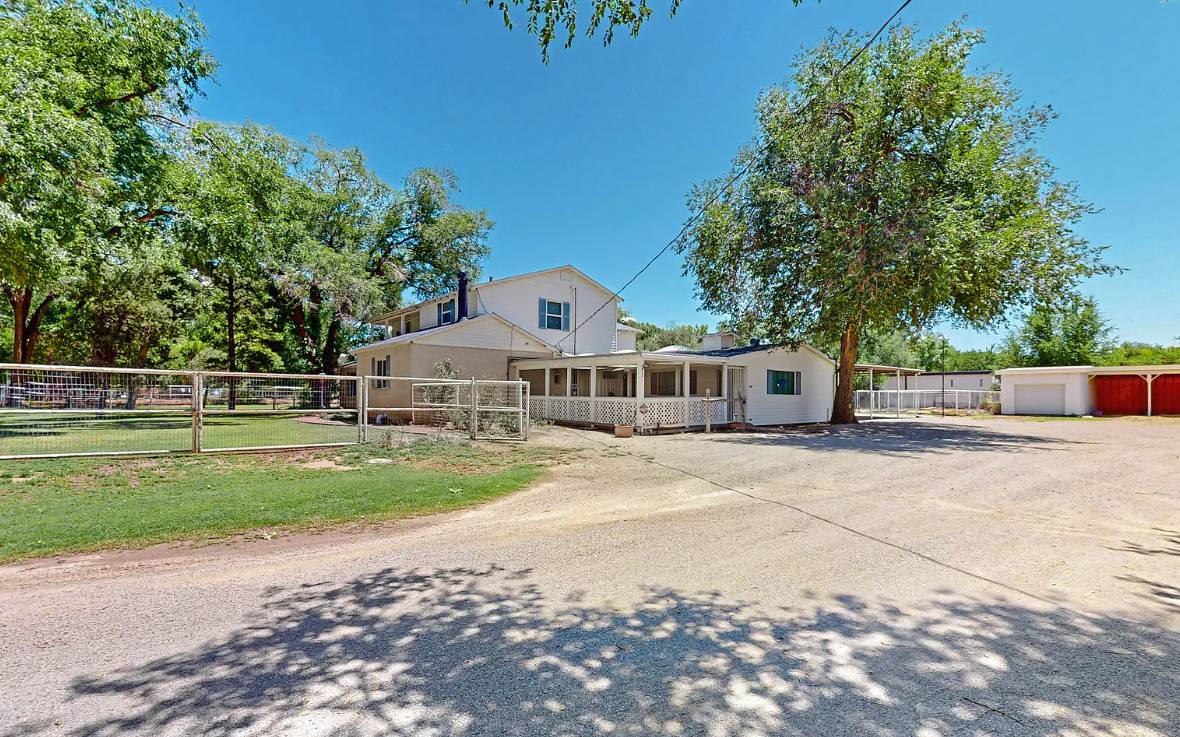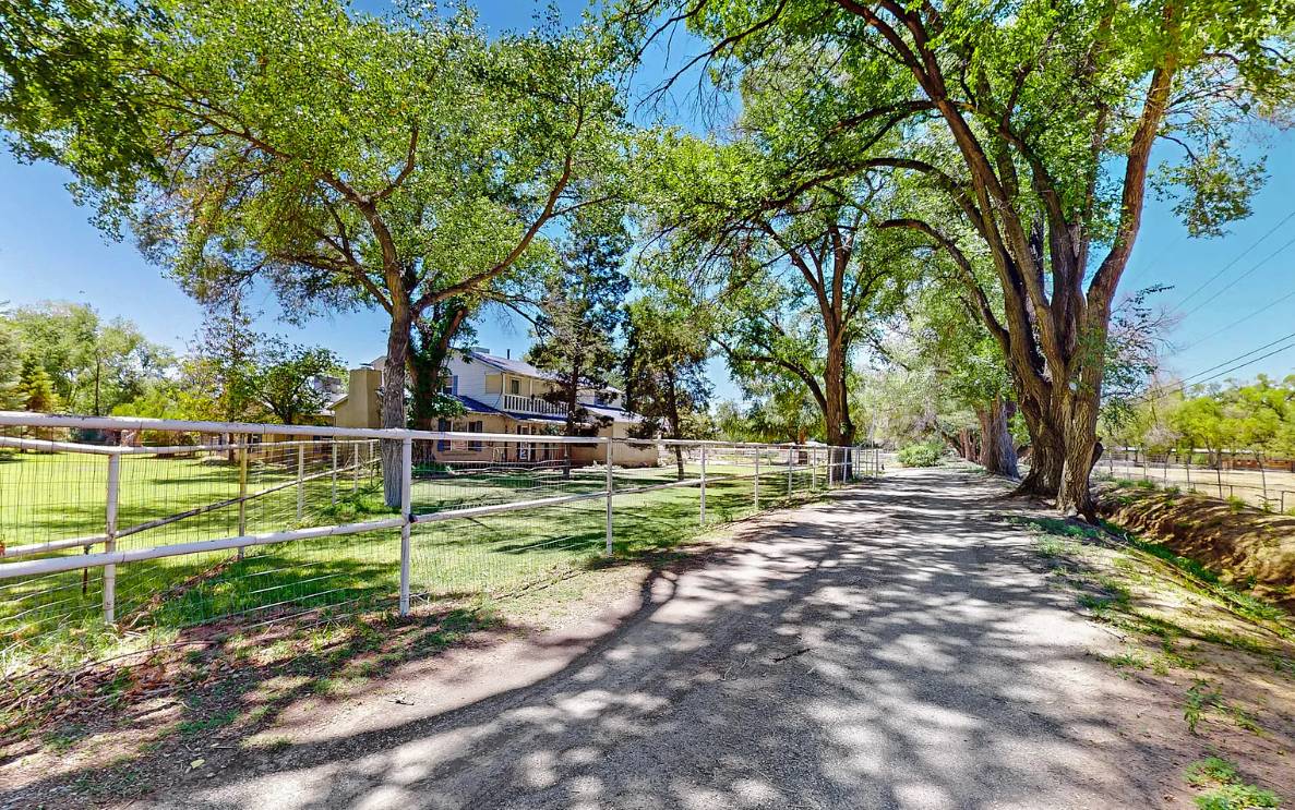 Nestled in the heart of Los Ranchos on a private gated road, this rare offering blends rural tranquility with practical luxury. The flat, usable acreage—surrounded by mature trees—features irrigation rights and easy access to scenic walking and riding trails, ideal for horse lovers, custom builders, or those envisioning a multi-home compound.