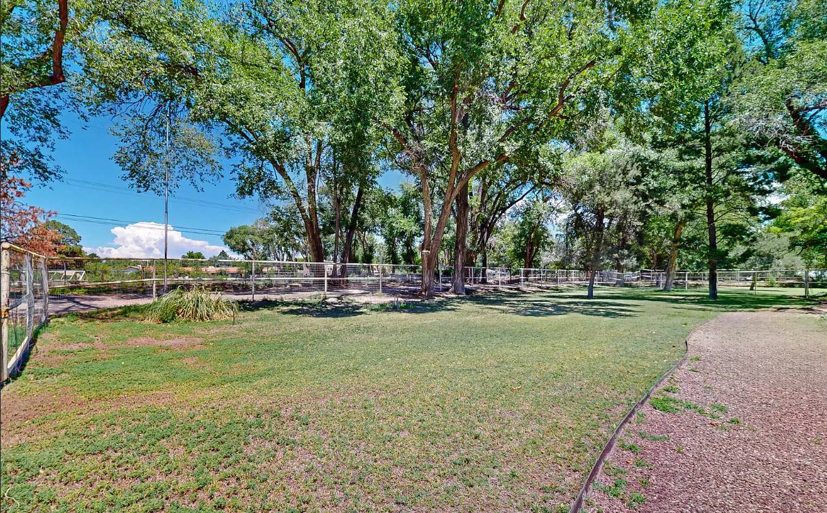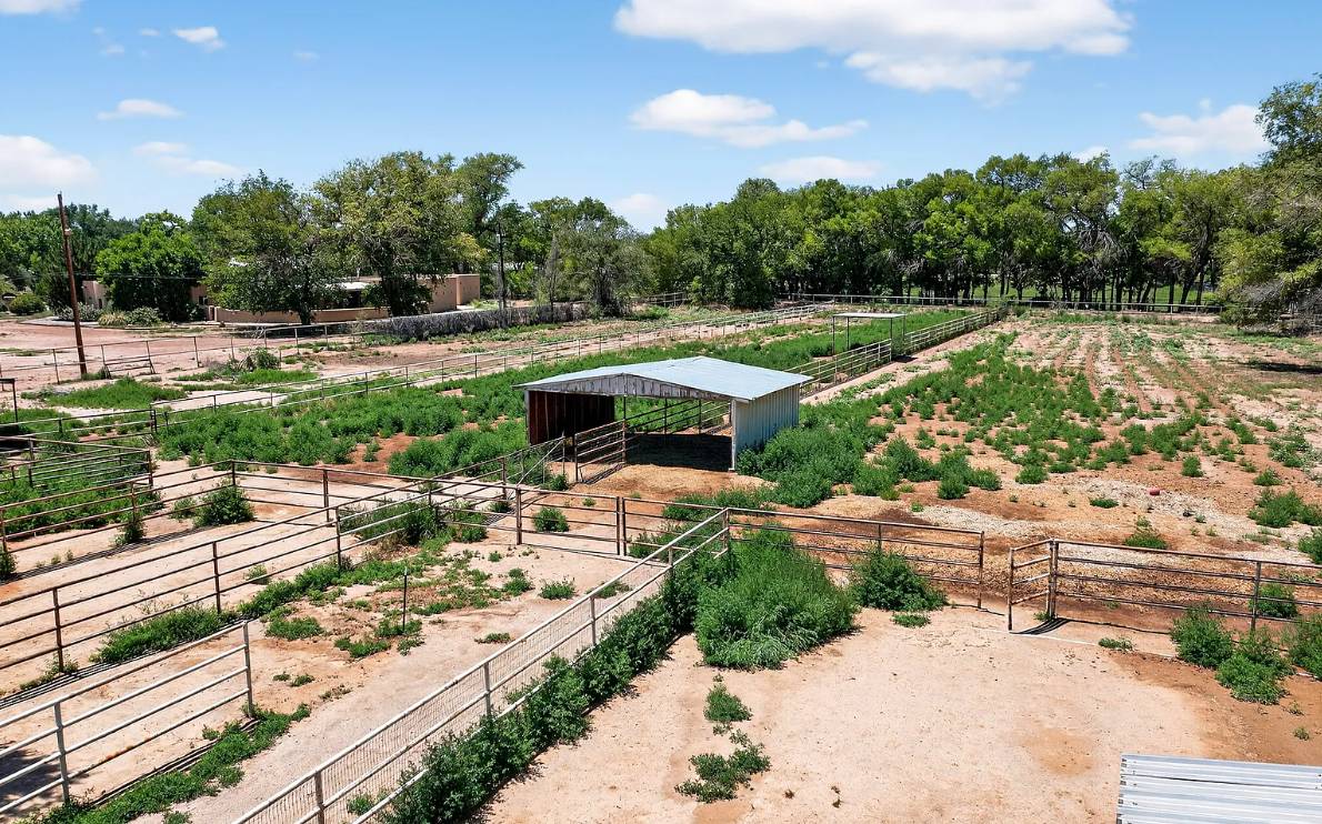 • The equestrian amenities at 900 Westgate Ln NW make it an exceptional choice for horse owners. The flat, irrigated 4.38 acres provide ample space for pastures, paddocks, and future barn or arena construction. Direct access to Los Ranchos riding trails offers convenient opportunities for daily exercise and leisure rides, while the property’s mature tree cover provides natural shade and comfort for horses. With its private gated access, fully fenced boundaries, and proximity to local feed stores and equestrian services, this estate is perfectly suited for both recreational and competitive riders.