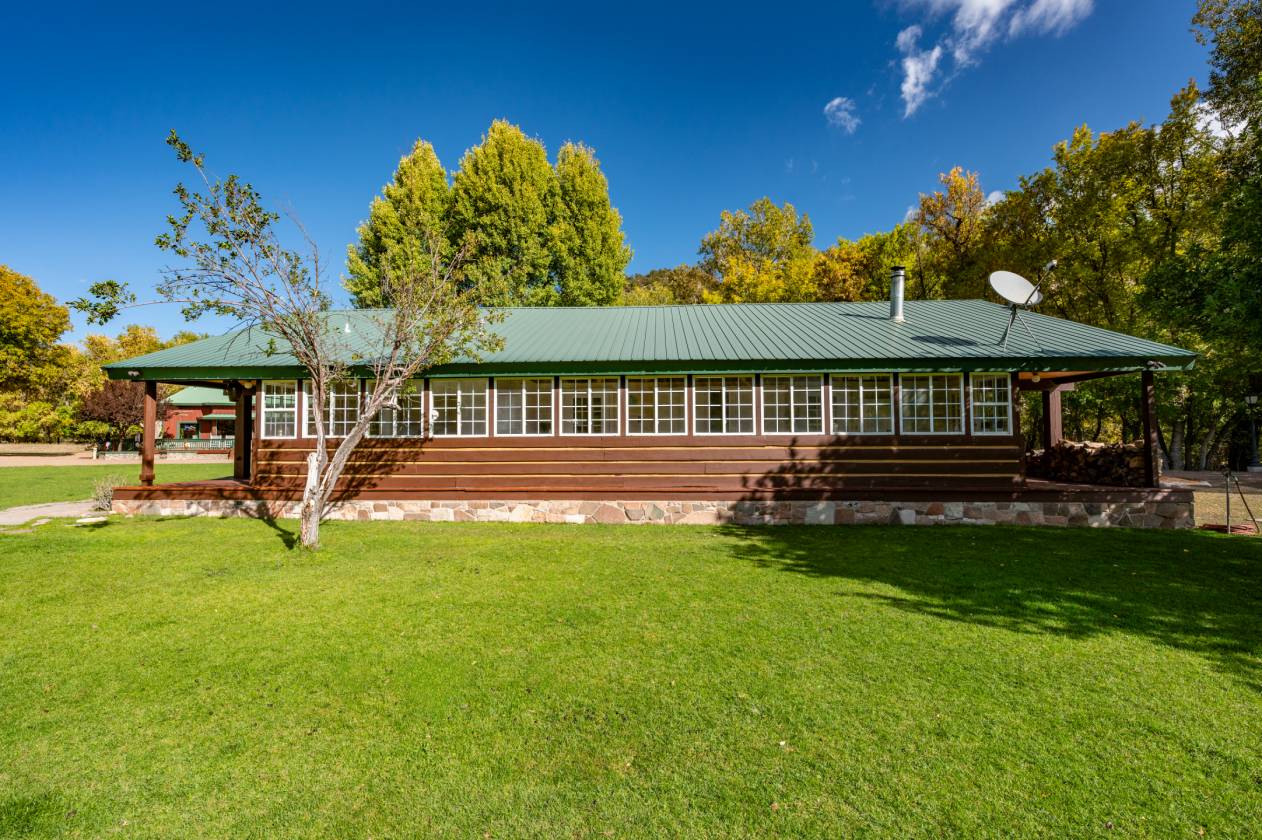 The Hines Ranch Retreat is a magical property in western New Mexico. Sleeping approximately 40 (4 homes and 4 cabins), with a full commercial diner, soda fountain & pizza oven on +/-96 acres with 3.75 acre water rights, spring-fed water, and an agriculture well. There's a 20-acre meadow with a 0.5-acre pond stocked with trophy fish and a minnow pond supplied by a spring-fed waterfall surrounded by diverse vegetation creating a wildlife haven.