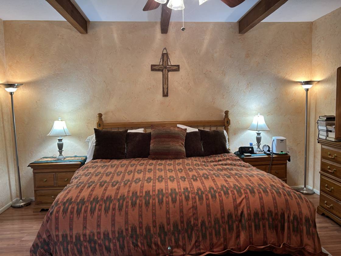 Beautifully maintained equestrian property with rideout to public lands; no need to trailer horses! The custom designed single level home offers an open floor plan with large rooms, 3 bedrooms, 3 baths, 3 fireplaces, office, bonus room (baby or excecise) off master bedroom and 1 bedroom has private separate entry (Guest bedroom). Enjoy the gorgeous canyon from 3 outside covered porches (off entry, off kitchen plus the back porch adjoins the guest bedroom, laundry room and dining room. Commercial grade solar, auto-connecting backup power, orchard with 8 fruit trees & greenhouse. For the Horses an 8 stall Mueller Barn (weld-up) with tack and feed rooms plus large hay loft, 60'x180' arena, 50' round pen and 50' holding pen (back property) and 4 paddocks withsafe vinyl fencing/steel drill pipe posts & 3 loafing sheds.