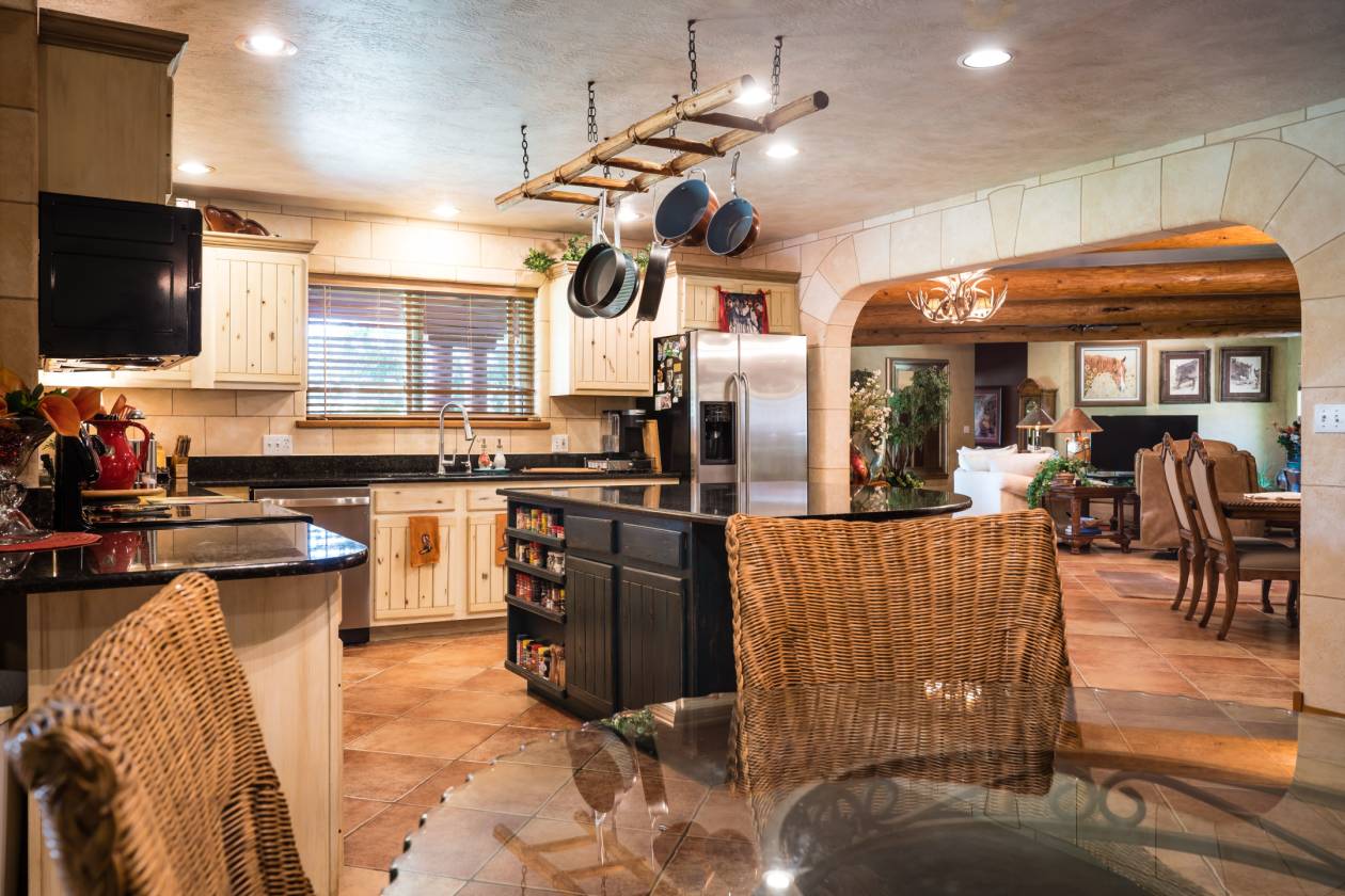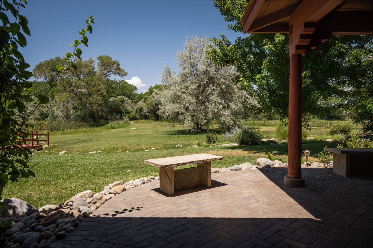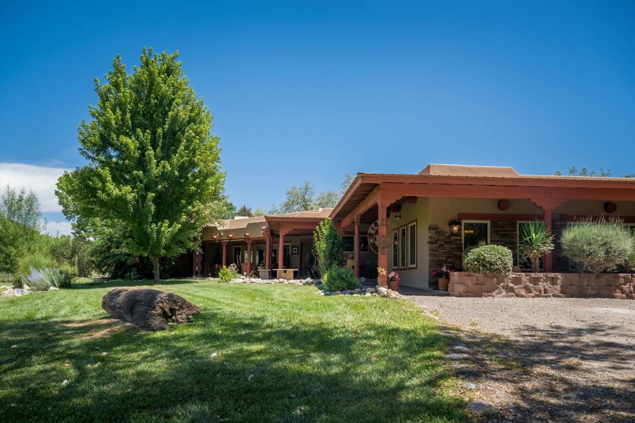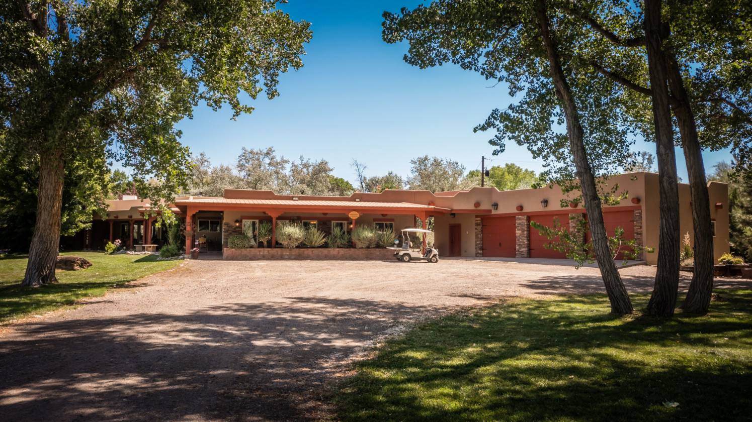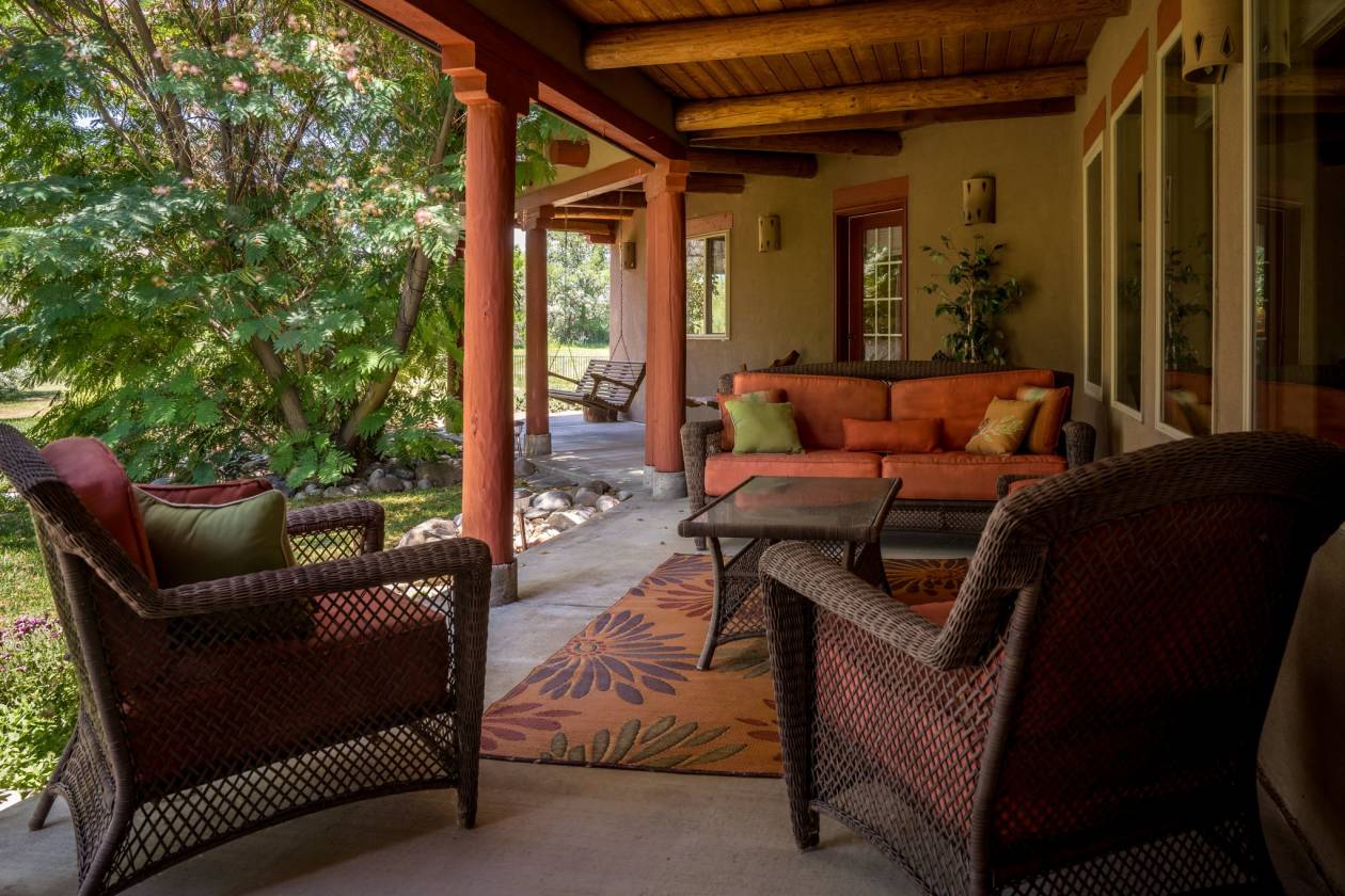 - The custom designed Santa Fe Style home was crafted and built for this exact property location, with the intention of balancing the hundreds of ft of river frontage, ponds, manicured pastures, and the gorgeous stand of cotton woods. With its spacious and tastefully designed open floor plan, this magnificent residence includes a polished and well-crafted office which has inside and outside. The large island gourmet kitchen, containing a massive walk-in pantry, definitely compliments the large great room with its welcoming fireplace. It’s almost as if the home has three master bedrooms due to the way each one a has its own wing designed for privacy. Two huge walk-in closets compliment the master suite. A huge 3.5 bay garage attached by a breezeway could house even the largest 3500 long-bed dually! And without a doubt, one of the homes most impressive features is the incredible front and rear veranda’s, which include an outdoor kitchen to entertain while enjoying the southwest’s phenomenal climate with family and friends.