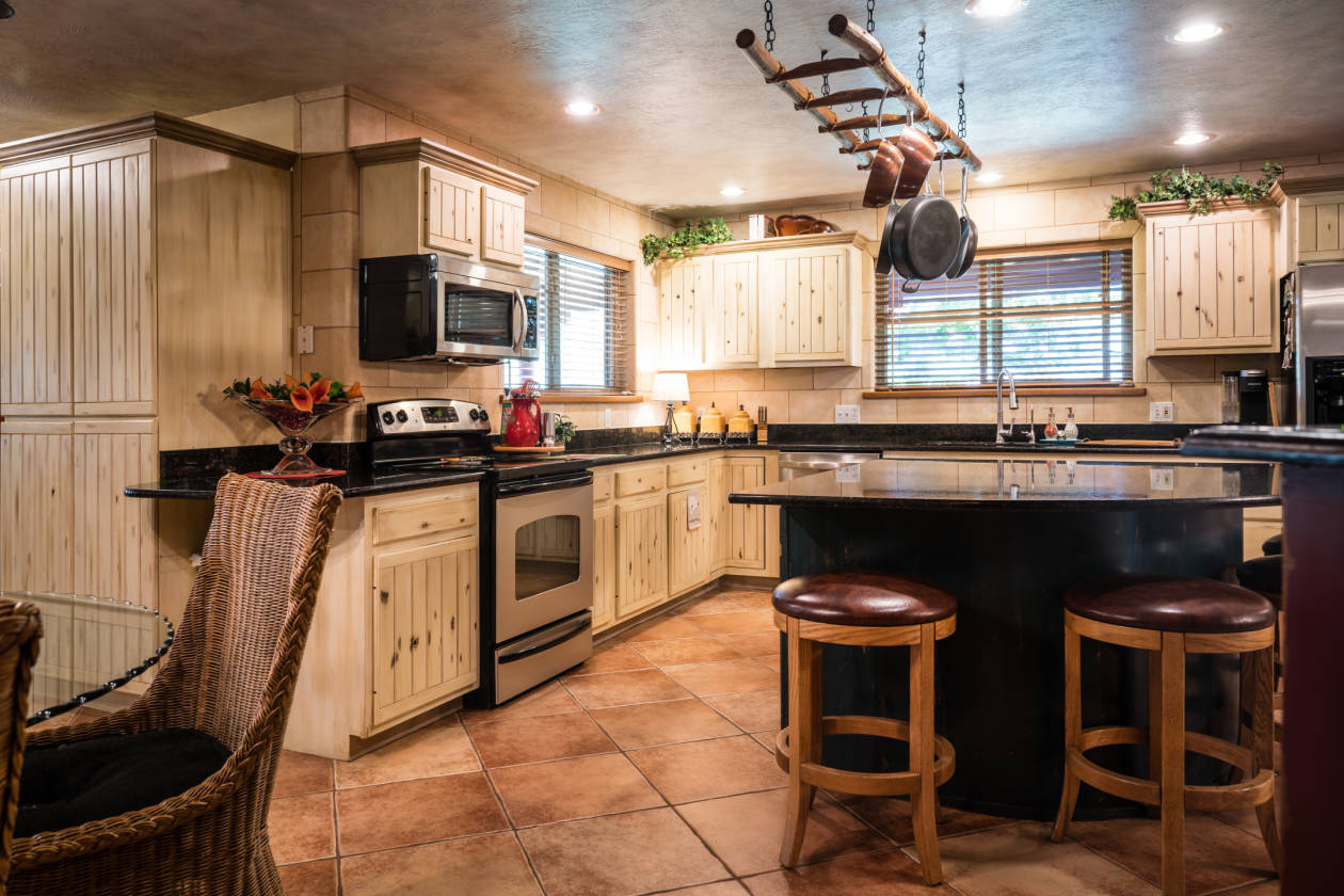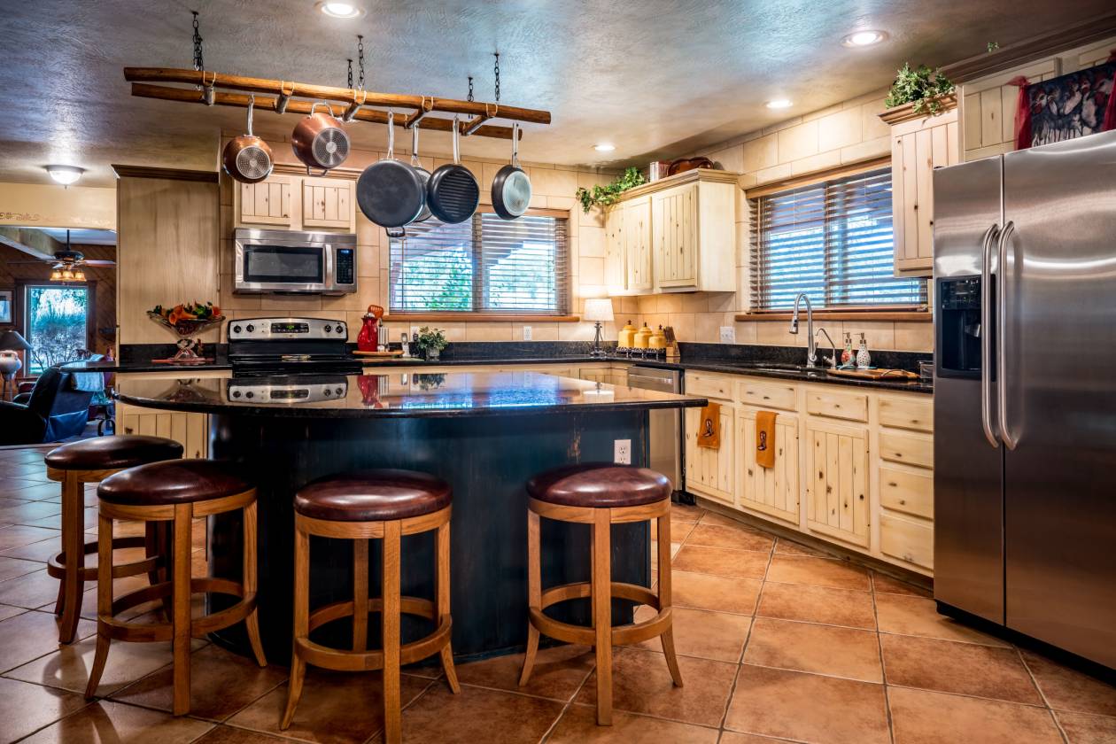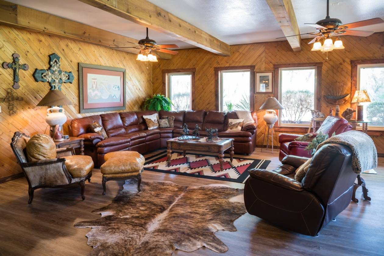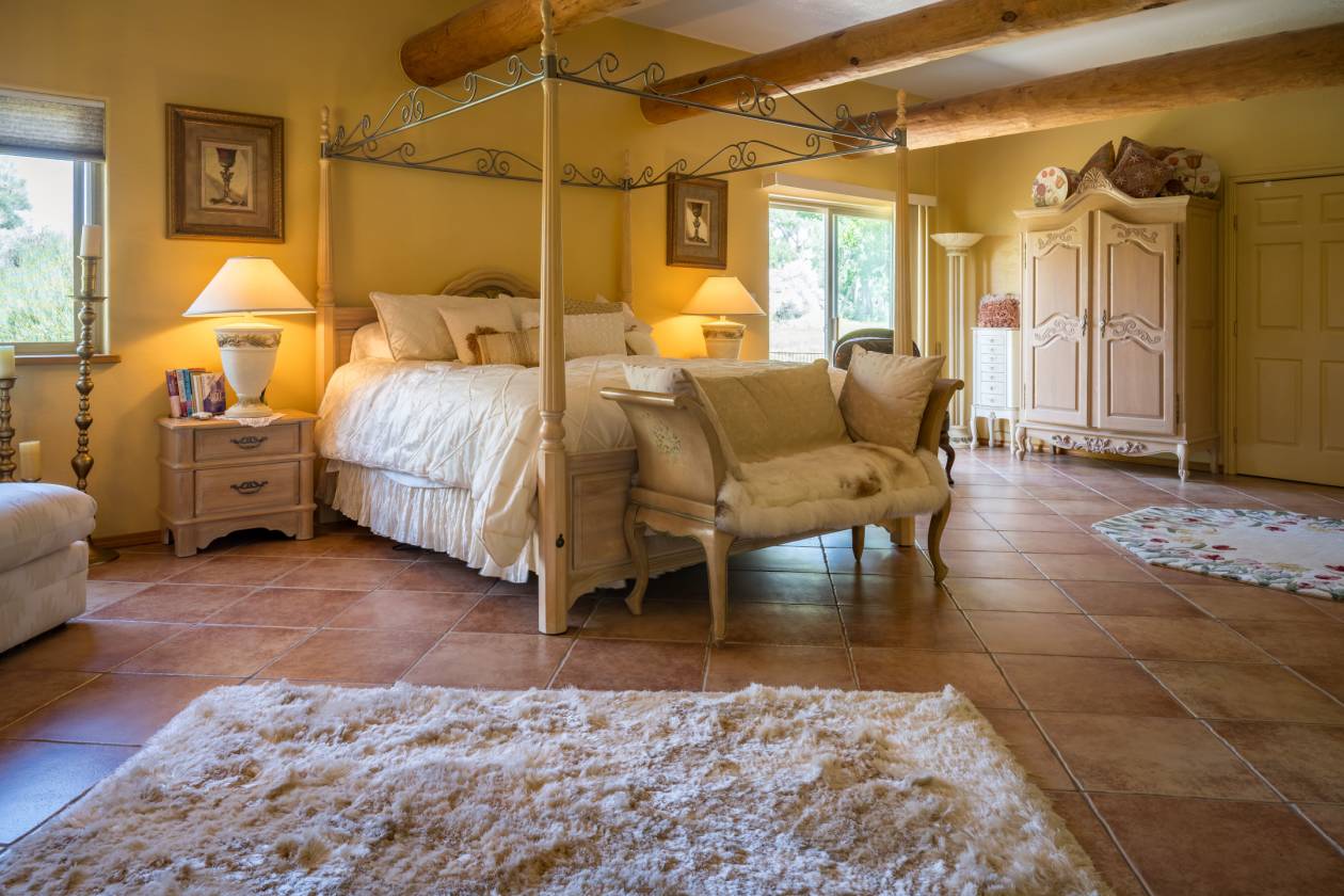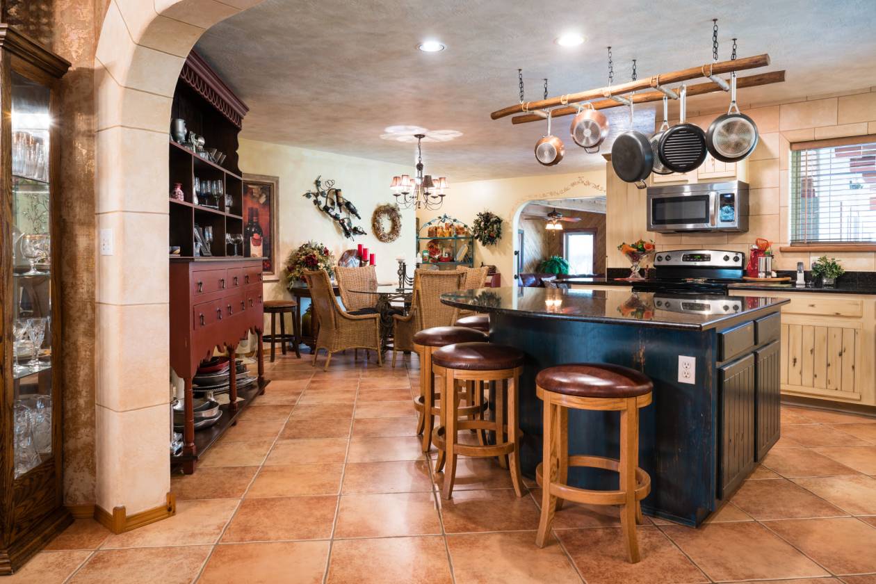 - The custom designed Santa Fe Style home was crafted and built for this exact property location, with the intention of balancing the hundreds of ft of river frontage, ponds, manicured pastures, and the gorgeous stand of cotton woods. With its spacious and tastefully designed open floor plan, this magnificent residence includes a polished and well-crafted office which has inside and outside. The large island gourmet kitchen, containing a massive walk-in pantry, definitely compliments the large great room with its welcoming fireplace. It’s almost as if the home has three master bedrooms due to the way each one a has its own wing designed for privacy. Two huge walk-in closets compliment the master suite. A huge 3.5 bay garage attached by a breezeway could house even the largest 3500 long-bed dually! And without a doubt, one of the homes most impressive features is the incredible front and rear veranda’s, which include an outdoor kitchen to entertain while enjoying the southwest’s phenomenal climate with family and friends.