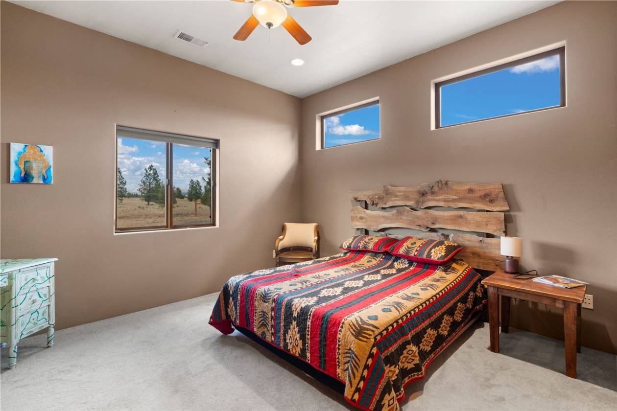 PRICE REDUCED - BEST BUY FOR A 42 ACRES RANCH MOSTLY FLAT FEATURING A LARGE DELUXE "BARN PRO" STABLES with 1600 sq ft apartment. Tara Ranch is a magical spot of profound quiet and serenity on a mostly flat, fully fenced, 42 acres. From the ranch gate, you drive on a ¼ mile long beautiful private driveway to the house and barn. The main house is a very substantial, well-built 4,500 sq ft home with 12' ceilings, diamond finish plaster walls, arches, large beams throughout and oversized living spaces and rooms to give a very spacious, gracious feel. The state of the art 6 stall “Barn Pros Equestrian Facilities” barn, features a full 1,600 sq ft apartment above it for caretaker or guests. The absolutely gorgeous views of Hermit’s Peak and the adjacent mountaintops offer complete privacy, as the property is surrounded on three sides by a 2,500-acre private ranch. For horse lovers, the 42 acres of great fescue grass are superb for riding, or training, on mostly flat land peppered by trees. The 45X60 ft horse pen is a great addition. The area of Hermit Peak and Johnson Mesa has a huge network of horse and offload trails, all extremely accessible by very well-maintained roads. Located just past the little pueblo of San Geronimo, Tara Ranch is an easy hour from Santa Fe and about half an hour from Las Vegas, NM. Built in 2008, this home is designed on one level with radiant floor heat enjoying nice open main living areas with living, dining and kitchen spaces all relishing the magnificent views. There is easy access to the covered portal for outdoor dining, grilling and enjoying the spectacular vistas. The backyard is fully fenced with decorative pole fencing. A heated 3+ car garage, with direct access to the inside of the home, is a wonderful bonus. The chef’s kitchen; with two ovens, large gas cook top with griddle, two sinks, wild stone granite counters, stainless appliances, huge pantry and plenty of cabinets, is a joy to cook in! The home has a great layout with the master bedroom, media/office and one guest bedroom on the west wing and the other two bedrooms, sharing a Jack and Jill full bath on the east wing. The master bedroom has access to a private covered portal with a 220 hook up should one like a hot tub, and the en- suite his and hers bath has a fabulous Jacuzzi tub in which to soak and look at the mountains, as well as large walk-in closet, two sinks and large shower with genuine coral stone tile. The near bedroom also has a full en suite bath. The barn has its own septic system, 6 stalls with rubber flooring, Tack room/workshop, hay storage, washing space for horses and a 45 X 60 fenced corral. It also has covered parking for an RV which could easily be converted into an additional coral to house horses or livestock in the three stalls that are currently not being used for animals. On the second story above the barn is a spacious 2-bedroom, 1-bath apartment, with a cozy wood burning stove, kitchenette and ample living space. The hand-crafted furniture southwest style currently in the home is also available for purchase, and should one want the two friendly and adorable donkeys, they could stay at no cost. The donkeys have been a fantastic way to keep coyotes off the property! The boiler was replaced in 2024 and the hot water heater in 2022. The private well provides plenty of water and the home also has a water softener. Tara Ranch is truly a special place on every level and a wonderful retreat from the hustle and bustle of town!