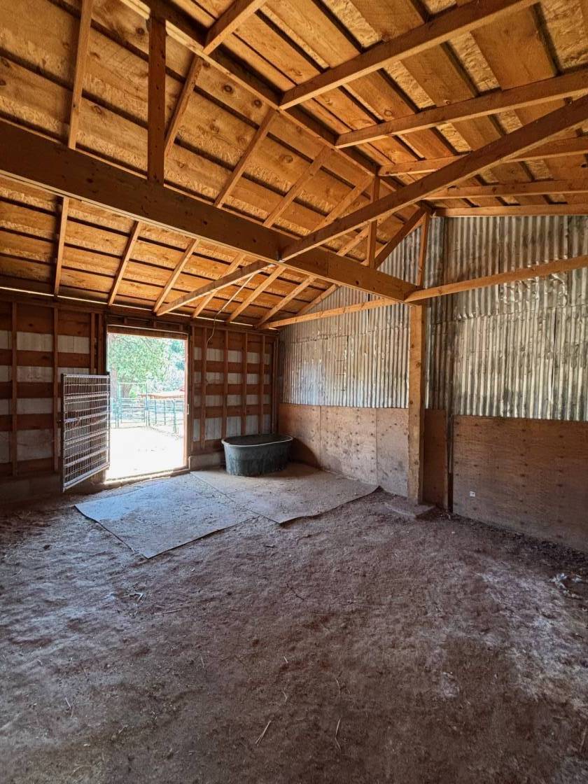 - Barn with hay storage, tack room and 3 stalls with electricity