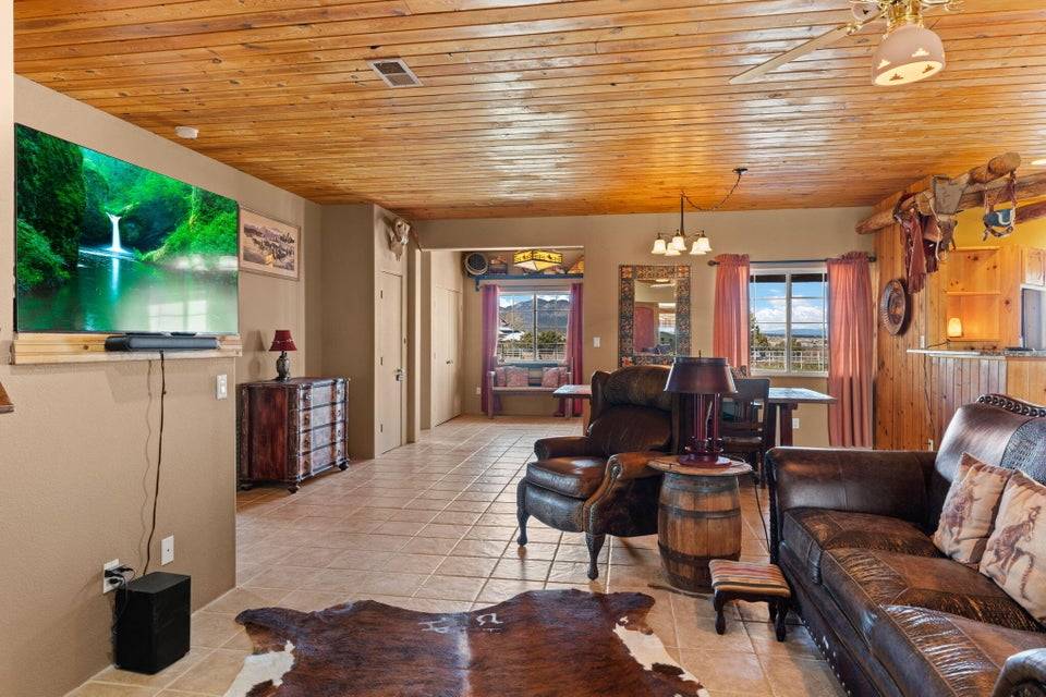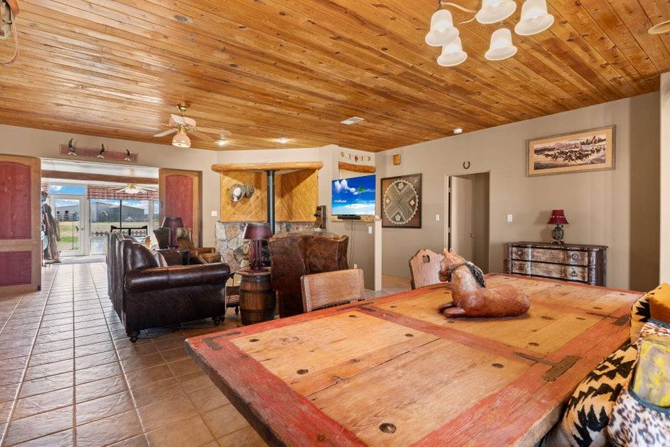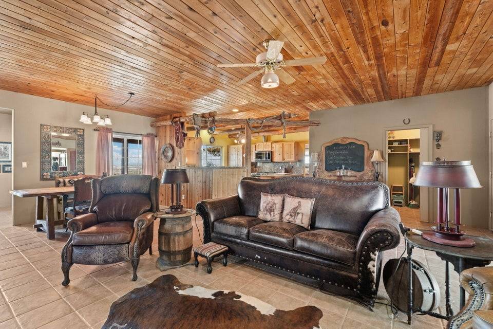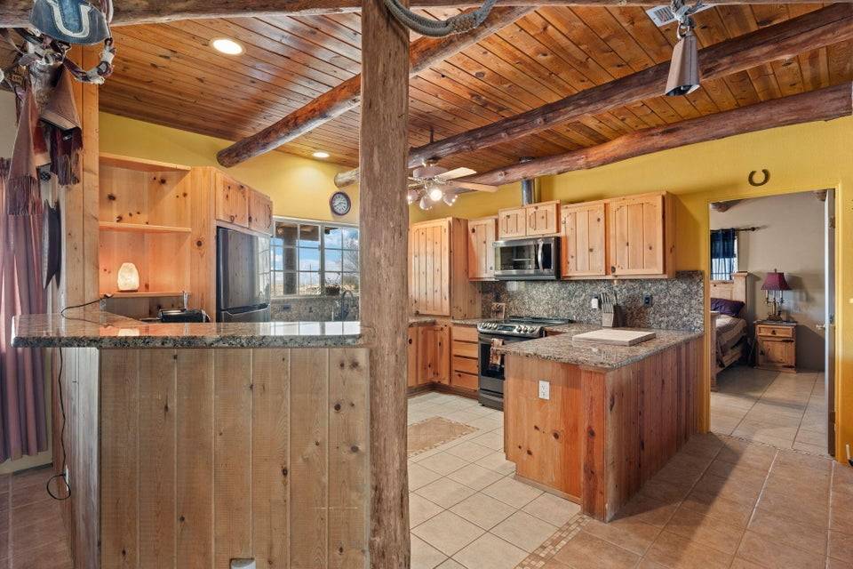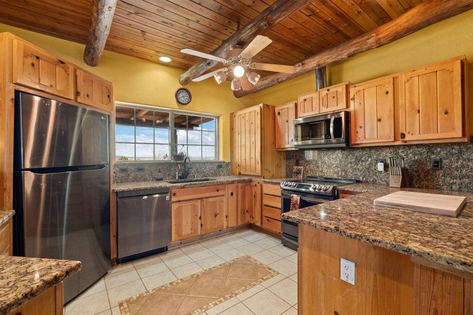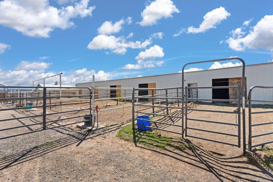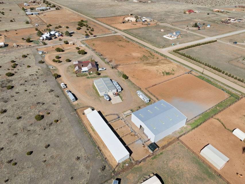Equestrian Dream Property. This stunning 4-bed, 2-bath southwestern ranch home on 5.1 fully fenced acres with an indoor arena is a horse lover's Desire! The spacious kitchen features stainless steel appliances, granite countertops, and vigas on the ceiling. The cozy living room has tongue-and-groove ceilings and a gas stove. Radiant in-floor heat ensures comfort throughout. The master suite includes a luxurious bath with a Jacuzzi tub and double-head shower. The property also has a heated sunroom, backup Generac generator, and horse facilities, including a 66' x 80' indoor arena w/ entire east side ''hangar'' door that opens up to outdoor arena, 5-stall horse barn, multiple turnout pens, a 40' x 60' shop and 2 RV plug-ins. Community Water and Natural Gas. 45 Minutes to Santa Fe, 35 Minutes to Albuquerque. 7 Minutes to Interstate 40.