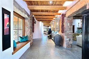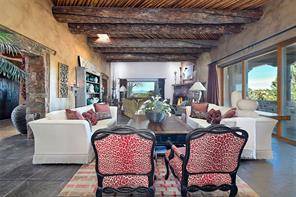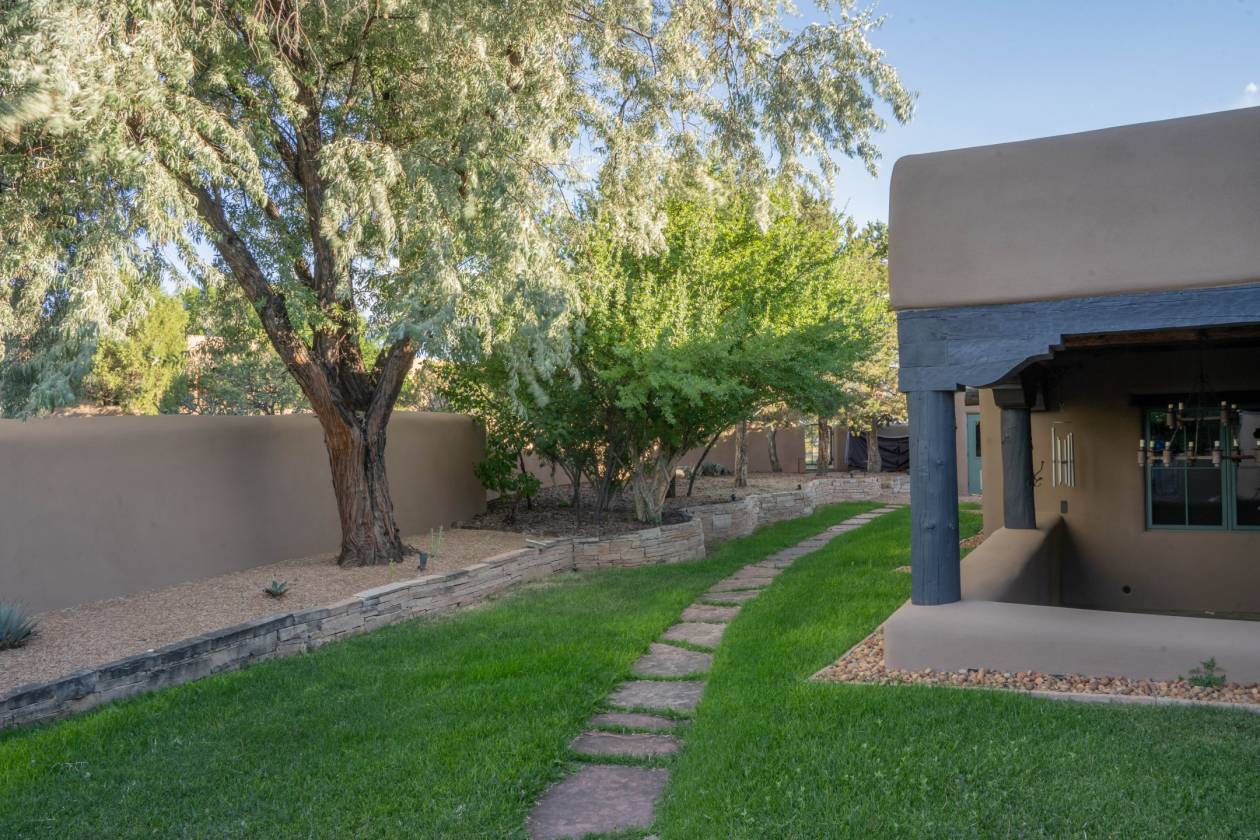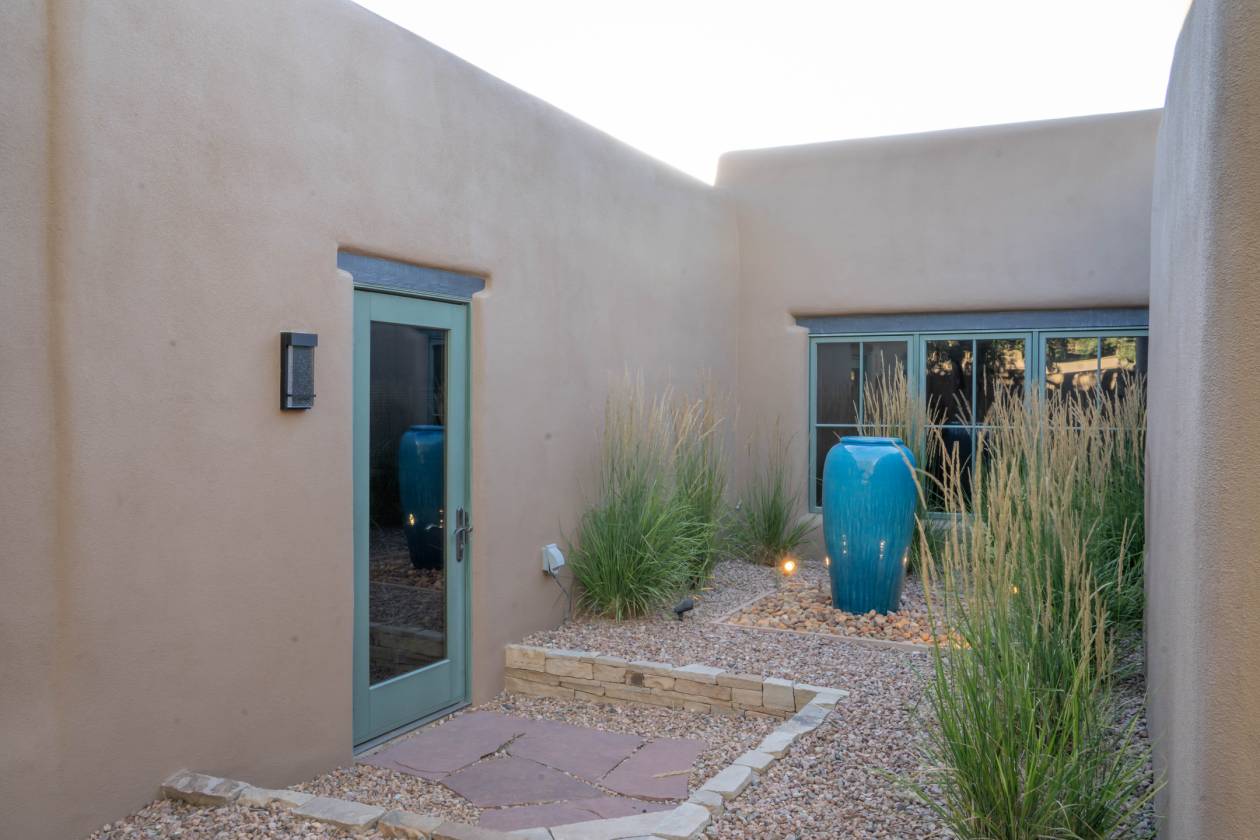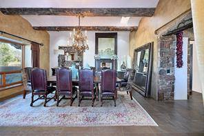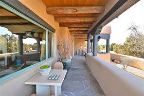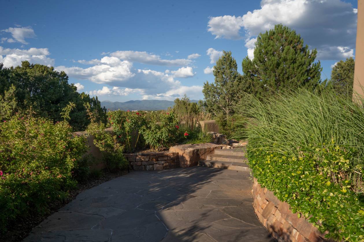 Welcome to 26 Estates Drive, a breathtaking 8,356-square-foot adobe estate located in the exclusive Las Campanas community in Santa Fe, NM. This property features a stunning main house and a detached casita, perfect as a guest retreat. Blending timeless Southwest charm with modern luxury, the estate offers captivating views and an ideal design for relaxation and entertaining. Inside, you’ll find handcrafted vigas, smooth plaster walls, and rich wood-beamed ceilings, enhanced by large moss rock features that add a unique touch of authenticity to the home. The gourmet kitchen is a chef’s dream, showcasing a 2024 Viking stove, steam oven, Quartzite countertops, custom cabinetry, and a 288-bottle, temperature-controlled wine storage area. With four spacious bedrooms and six bathrooms, the home offers luxurious accommodations, including a serene primary suite with a cozy fireplace and spa-like en-suite bath. The outdoor spaces are equally impressive. They feature a wrap-around portal with multiple seating areas, a built-in heated spa for eight, and a fully equipped outdoor kitchen and dining area. Native landscaping and stone walkways enhance the property’s natural beauty, creating a tranquil retreat. Beyond its charm, the home is equipped with modern conveniences, including radiant cooling and heating, solar panels, a foam roof installed by Southwest Spray Foam in 2022, and stucco redone in 2024 for lasting durability. Located in Las Campanas, with access to world-class amenities and golf, this estate offers an unparalleled lifestyle close to everything Santa Fe has to offer. Schedule your private showing today to experience the extraordinary elegance and charm of 26 Estates Drive.