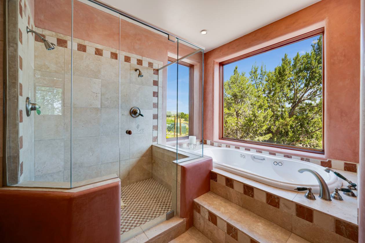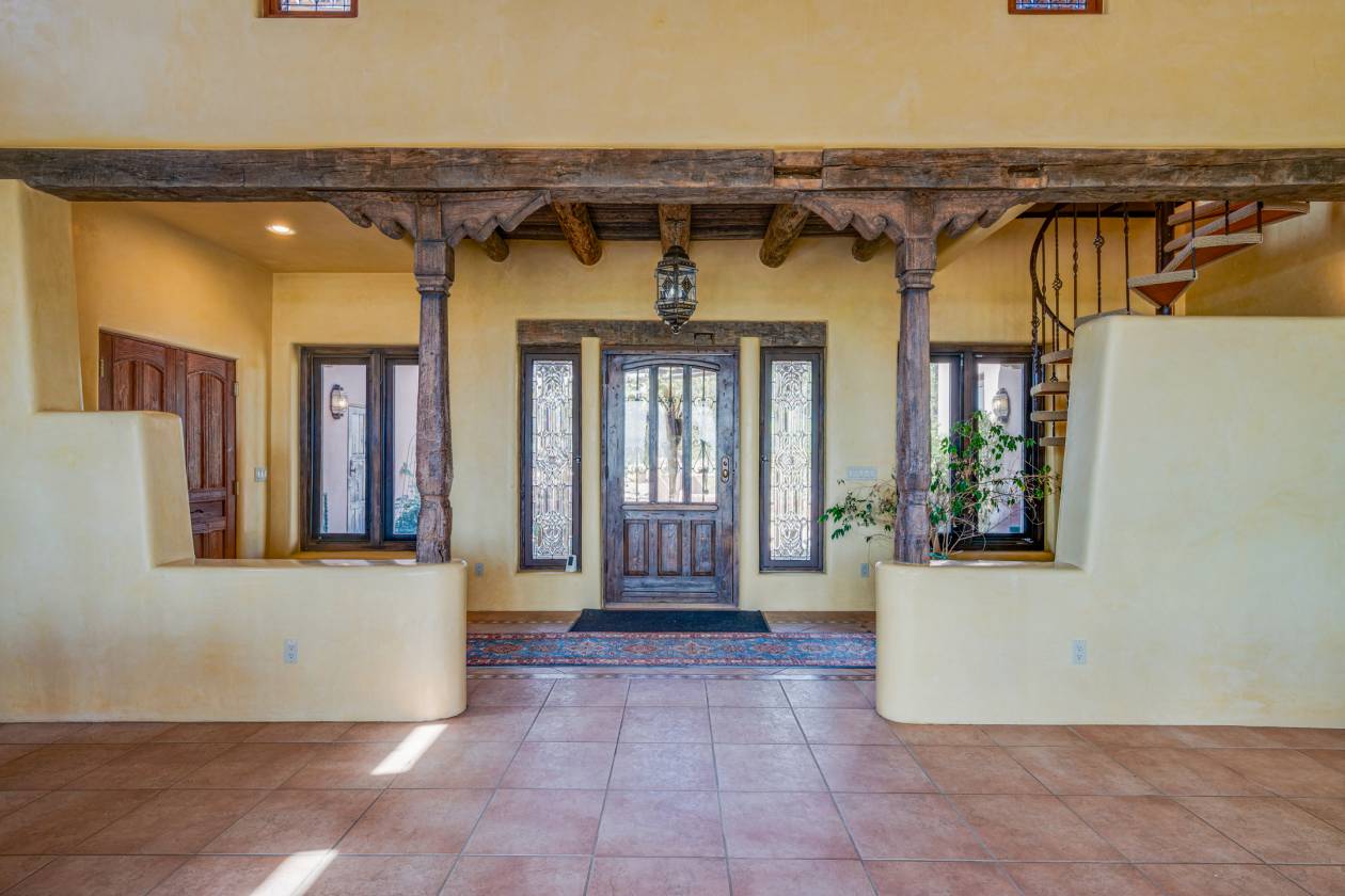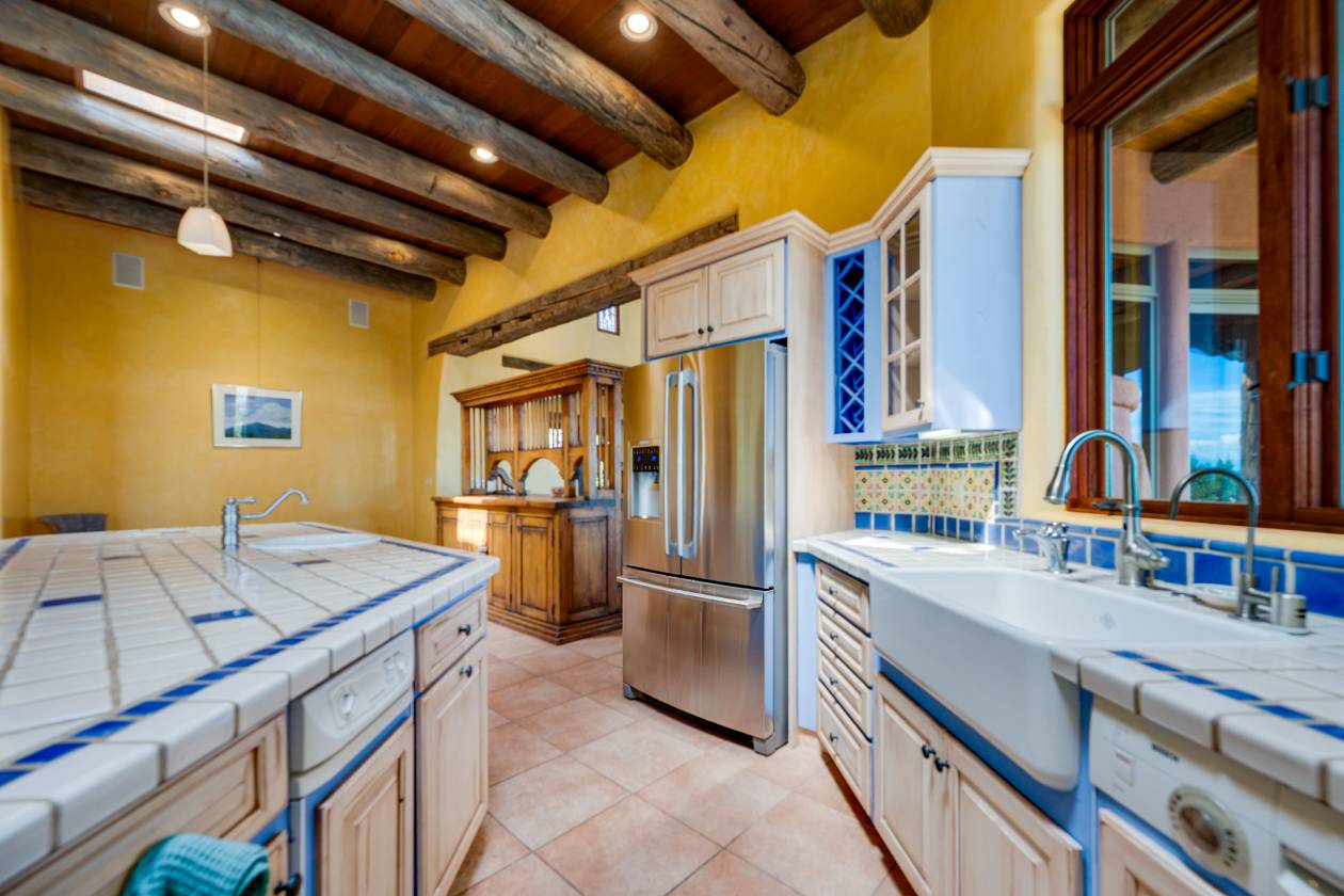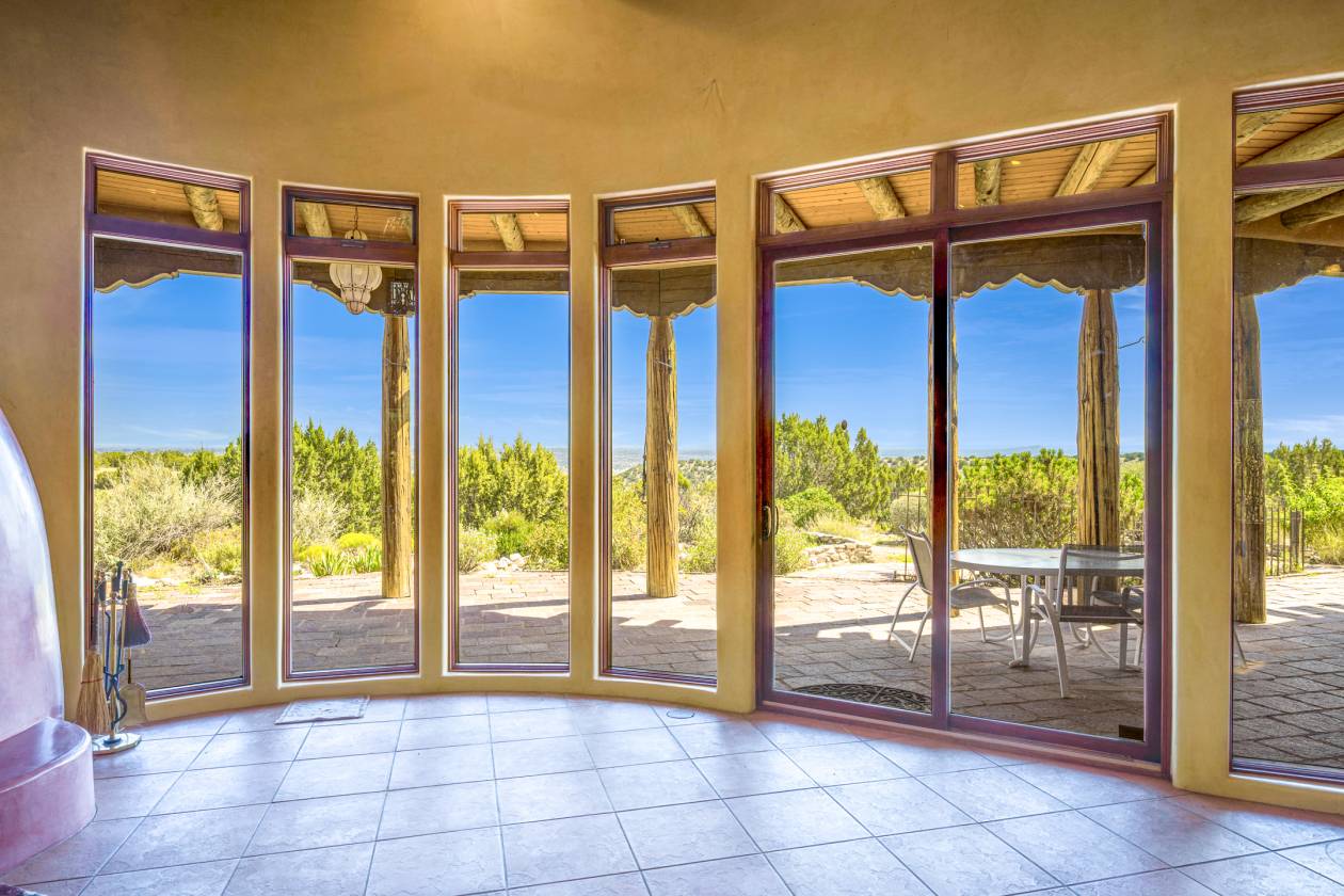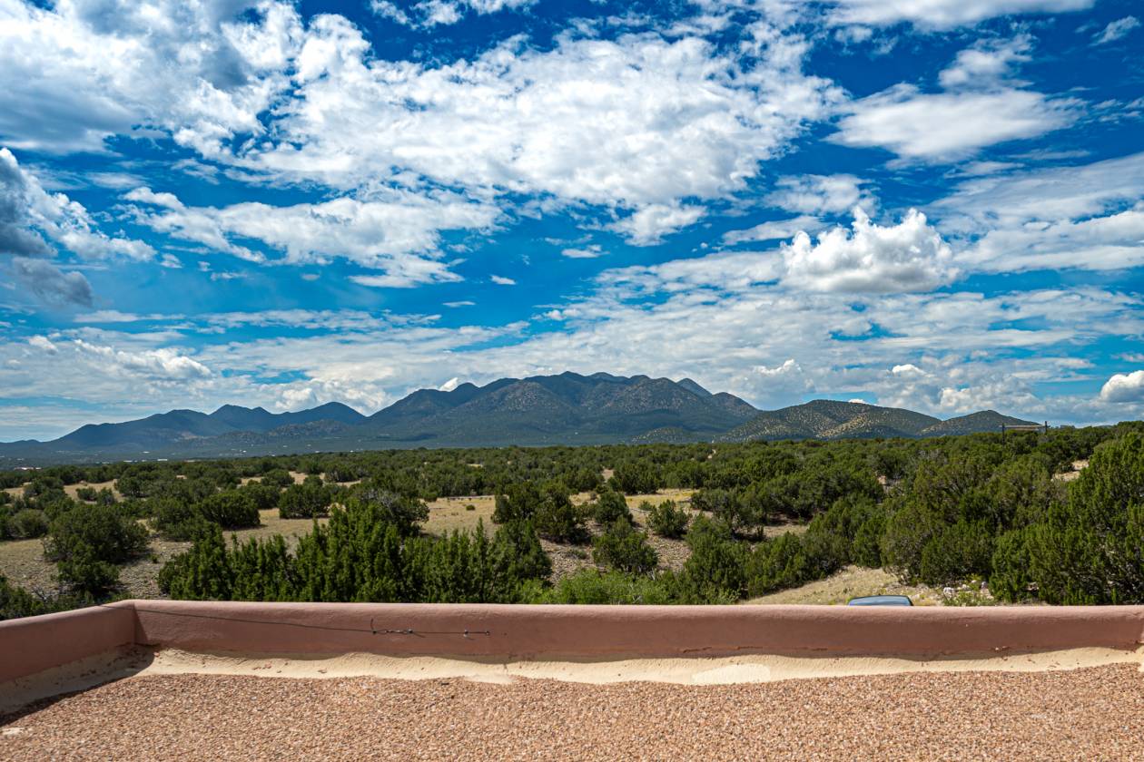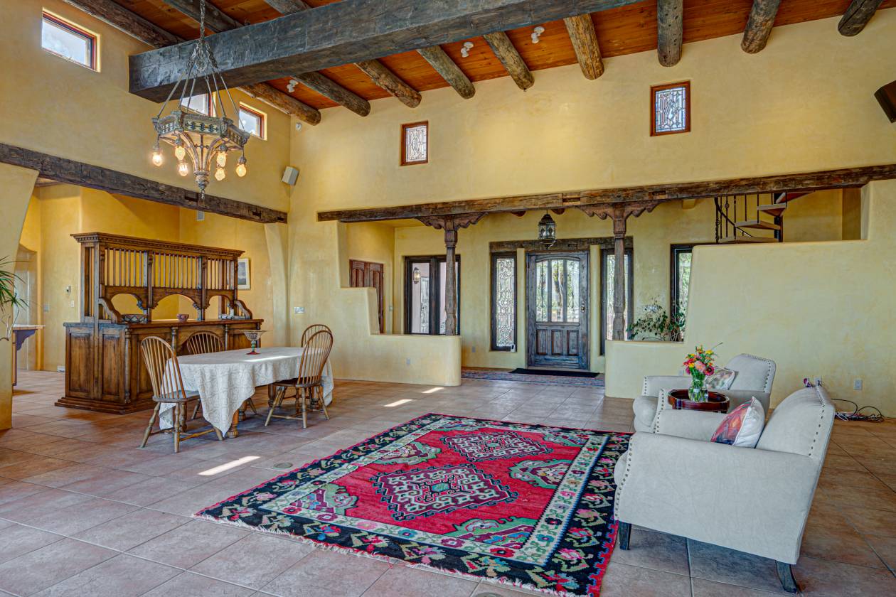 Oro Viejo Ranch is a timeless sanctuary on 106 acres. A harmonious blend of natural splendor, meticulous craftsmanship, and modern convenience. There are breathtaking panoramic views of the Sangre de Cristo, Ortiz Mountains, Cerrillos Hills, and the iconic Lone Butte. Horse enthusiasts will appreciate the six-stall, barn, tack room, workshop, covered hay storage, electric, and hot water, and protected outdoor runs. A insulated chicken coop provides the perfect setup for fresh eggs, while a private well with a large storage tank ensures a reliable water source. A convenient RV hookup is also available on the property.