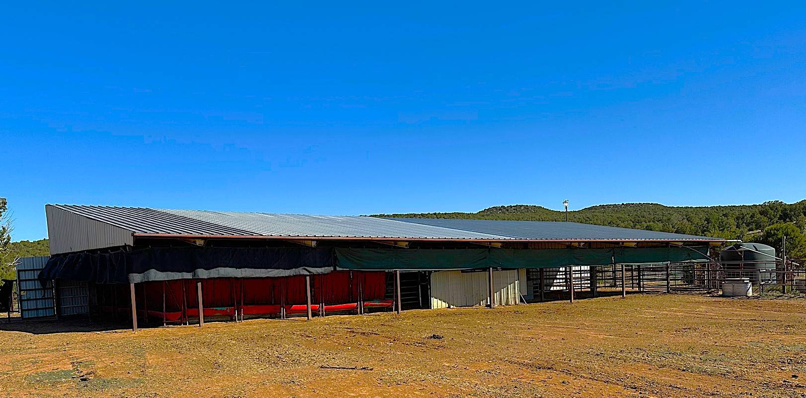 - Livestock facilities include: well pipe corrals, large grow out pens, hay/implement/livestock barns, 3 stall horse/tack/tool/hay barn, riding arena, round pen arena, enclosed barn & vet clinic too