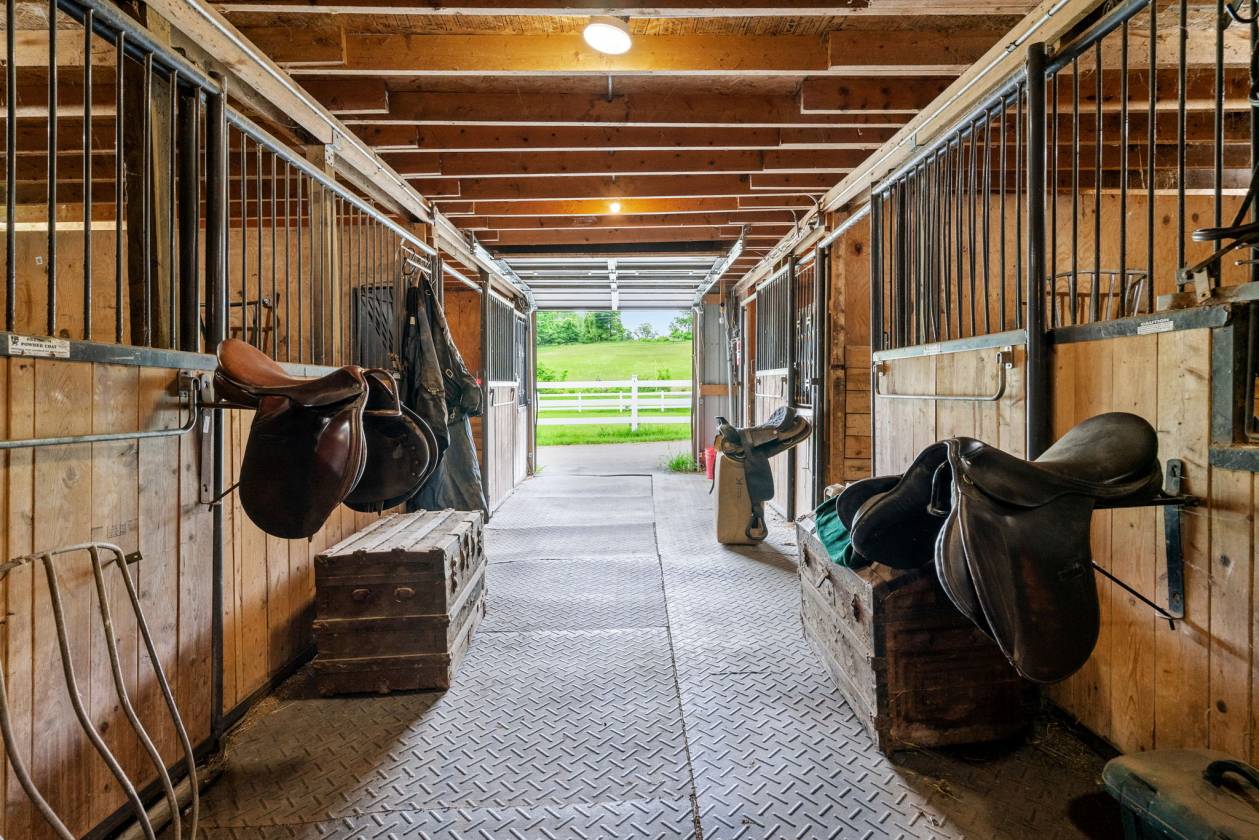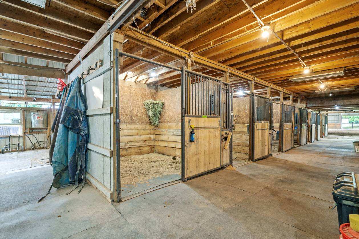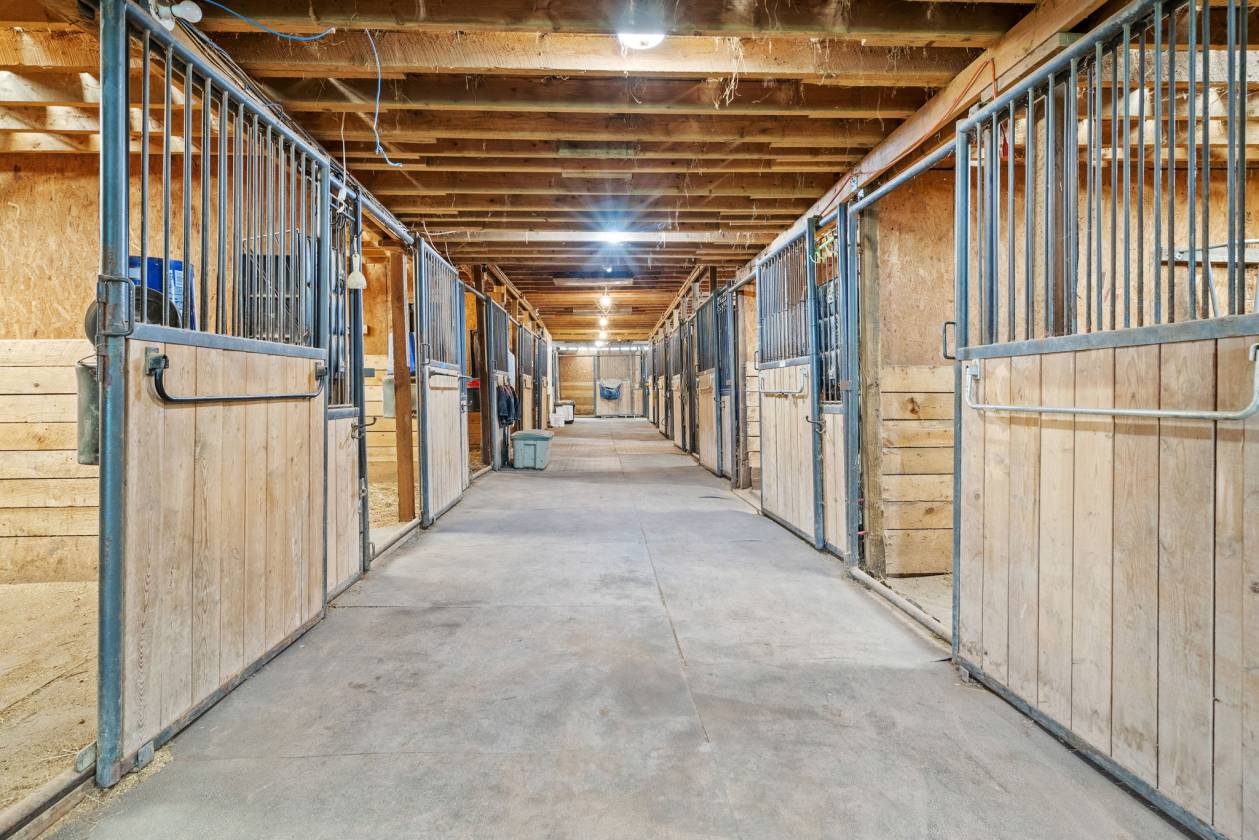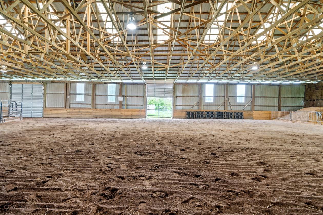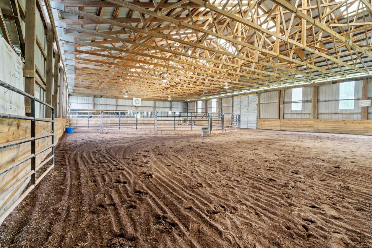 • This 38-stall barn is designed with both horse and rider in mind, offering amenities and thoughtful details throughout. The barn features a 60' x 180' indoor arena with sand footing, providing a safe and comfortable environment for year-round training and exercise. Each of the 38 stalls is equipped with rubber mats and sliding stall doors. The barn includes a wash stall with overhead sprayer hose, a well-organized tack room, a feed storage room, and a convenient viewing room for observing training sessions or relaxing after a ride. Ample hay storage ensures you’ll always have supplies on hand. Recent upgrades include all-new LED lighting throughout the facility, enhancing visibility and energy efficiency. This meticulously maintained barn is ideal for professional training, boarding, or private use, offering everything you need for a high-functioning equestrian operation.