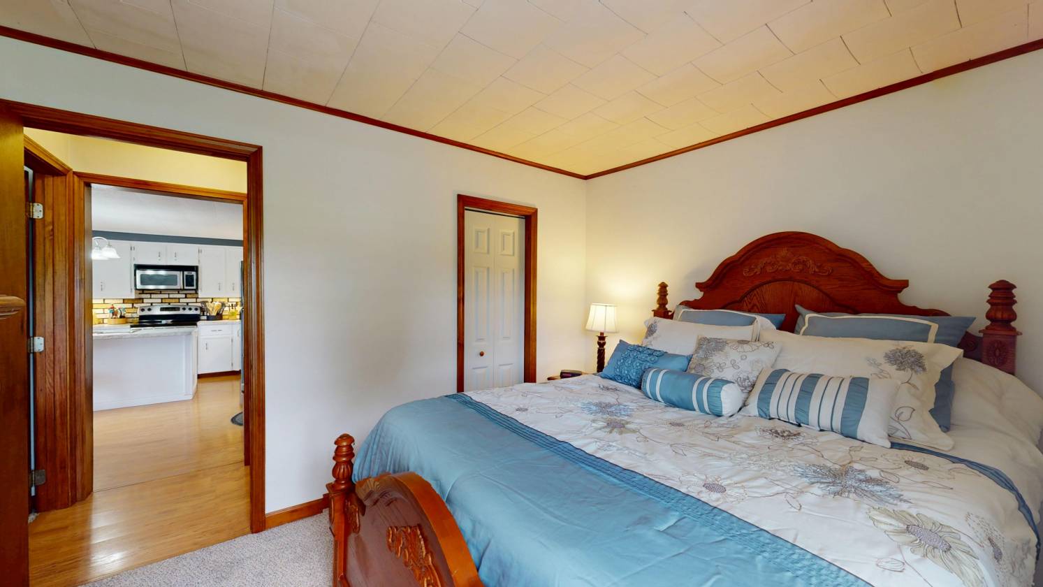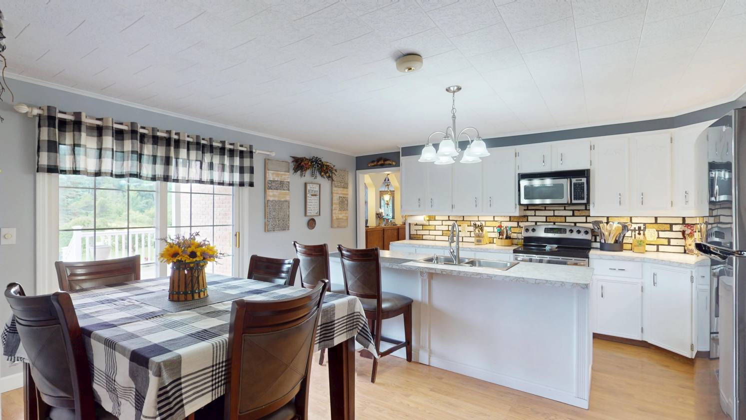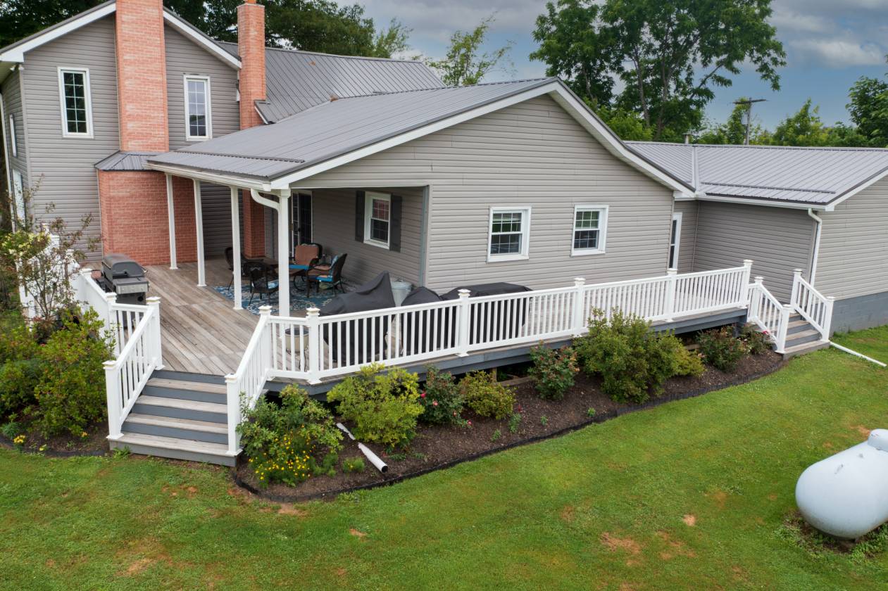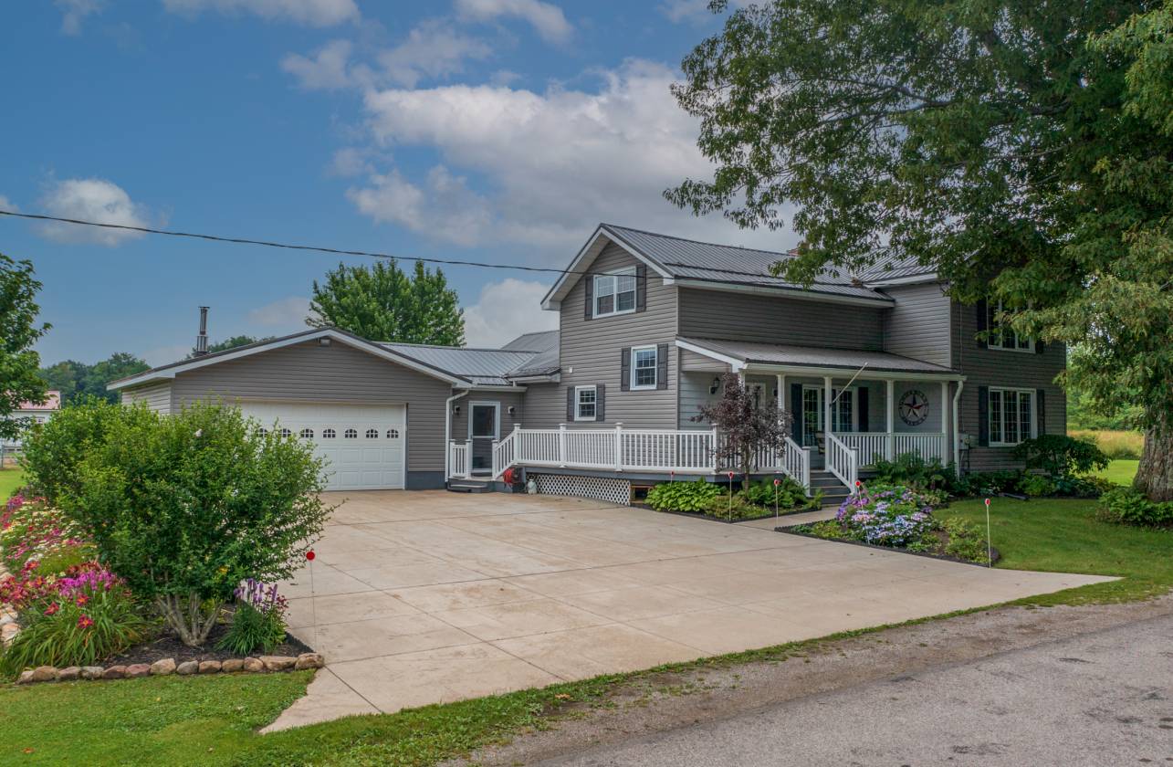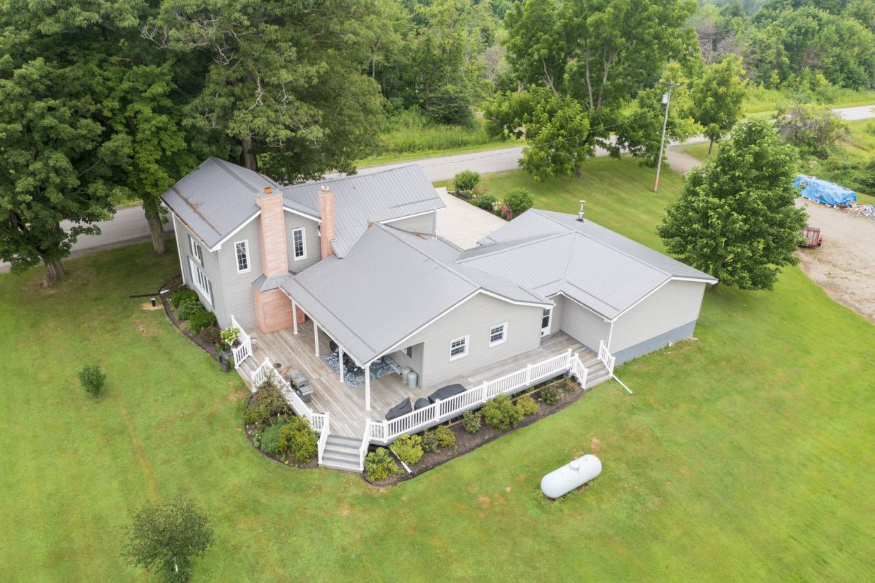 - Interior and Exterior renovated in 2020. Garage renovated in 2017. Floors are hickory hardwood. Ceilings are white oak. Trim is both hickory and white oak. Beautiful entry door. Large wrap around deck with vinyl cover for winter. Stone fireplace with pellet stove insert in living room. Pella windows. Garage 23.5 x 31 with cement floors, woodburning stove, tool cabinets and 8 x 16 insulated door. Basement is full with stonewall foundation walls and spray foam ceiling. On site septic and well.