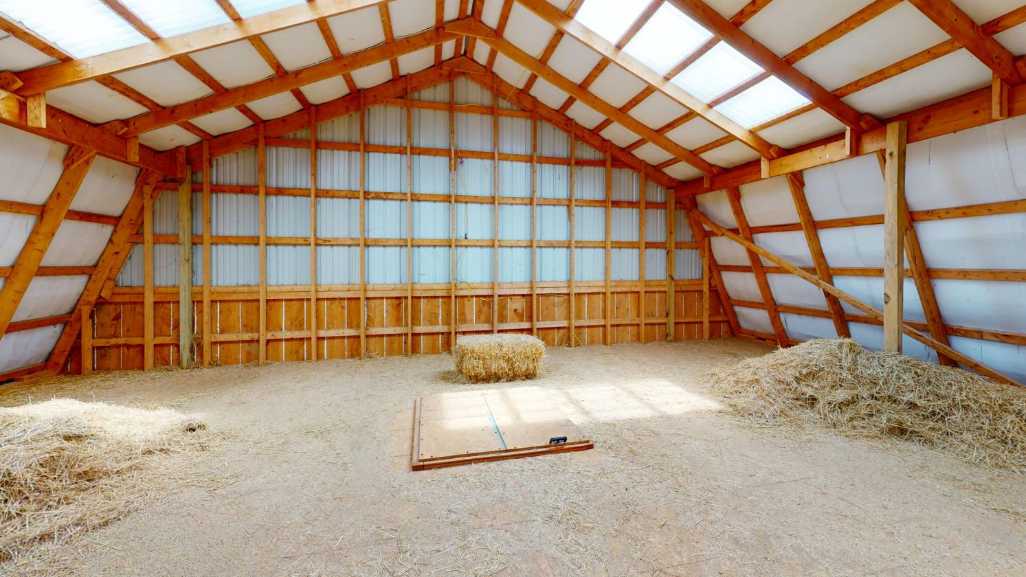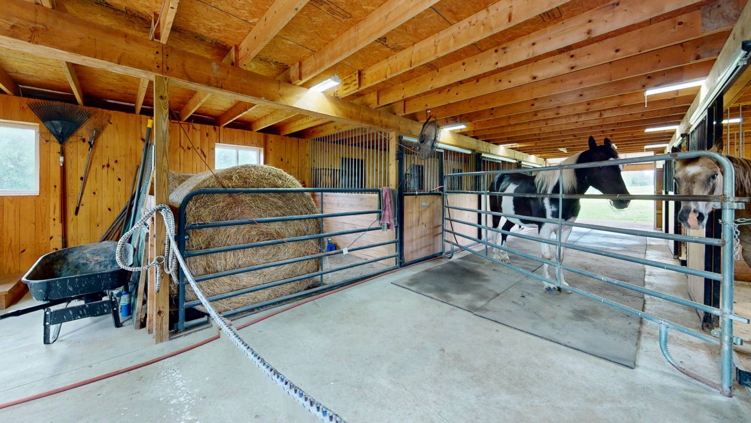 - Barn built in 2017 is 32 x 50 with full hay loft, tongue and groove 2 x 6 walls, steel roof and siding, 6-8 stalls with rubber mat flooring and tack room. 10 x 32 lean to on back. Storage building is 24 x 30 with cement floor and 8 x 9 garage door. 50 ft round training pen built in 2019. 7 acres horse safe fencing.