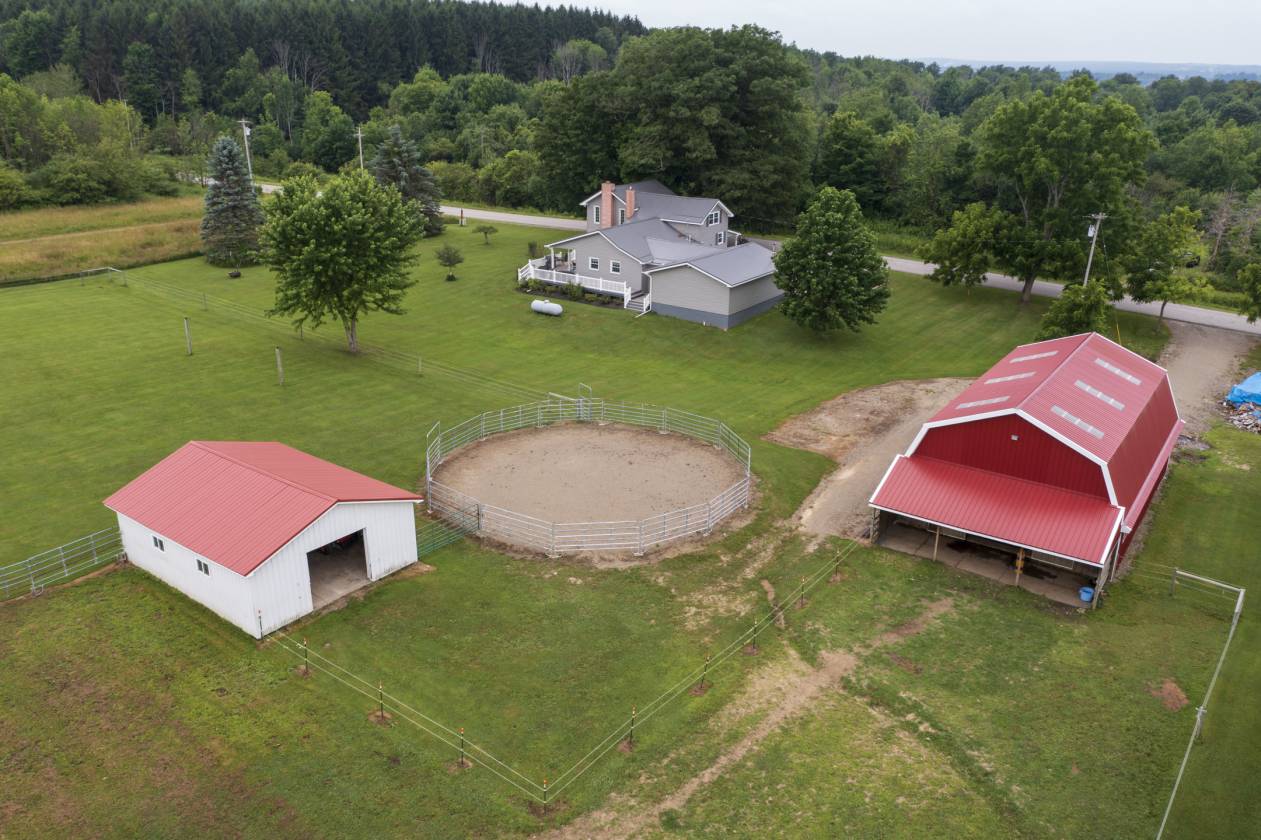 Beautifully Renovated Farm House Situated on 17 Acres with Attached 2 Car Garage. 6-8 Stall Horse Barn with Tack Room. Multi-purpose Outer Building. Training Pen and 7 acres of Fencing. Must See Meticulously Landscaped Property.