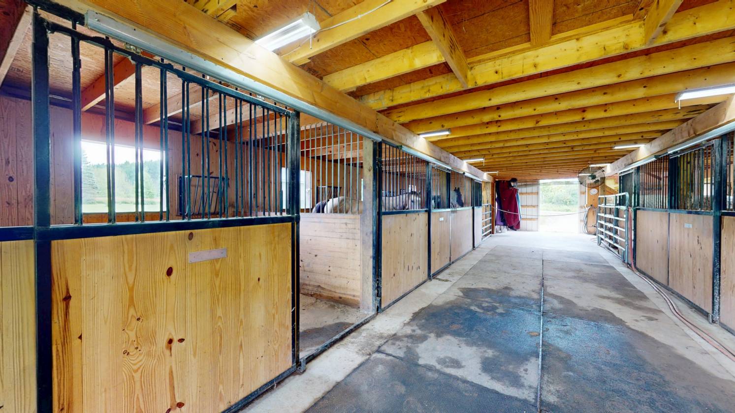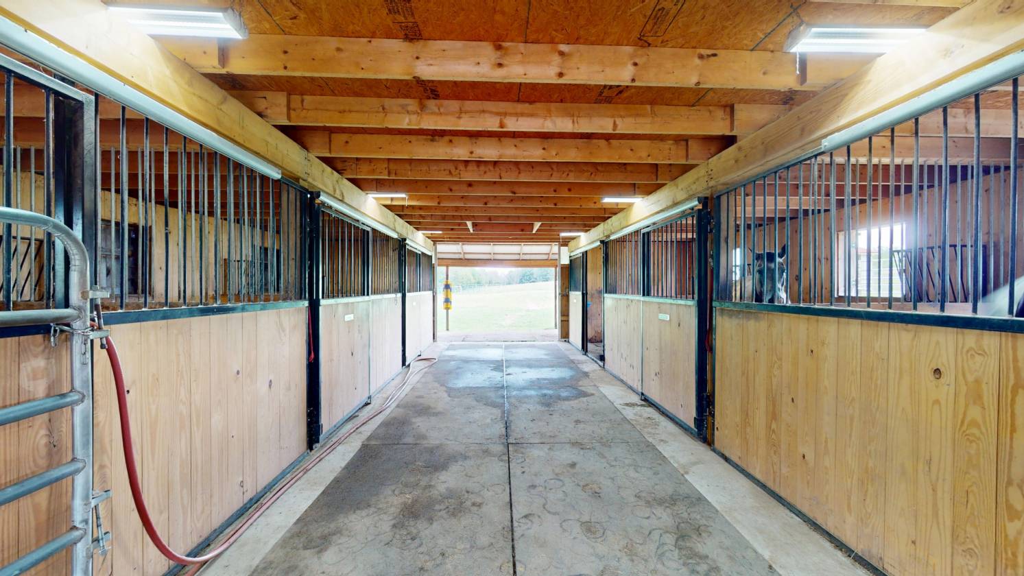- Barn built in 2017 is 32 x 50 with full hay loft, tongue and groove 2 x 6 walls, steel roof and siding, 6-8 stalls with rubber mat flooring and tack room. 10 x 32 lean to on back. Storage building is 24 x 30 with cement floor and 8 x 9 garage door. 50 ft round training pen built in 2019. 7 acres horse safe fencing.