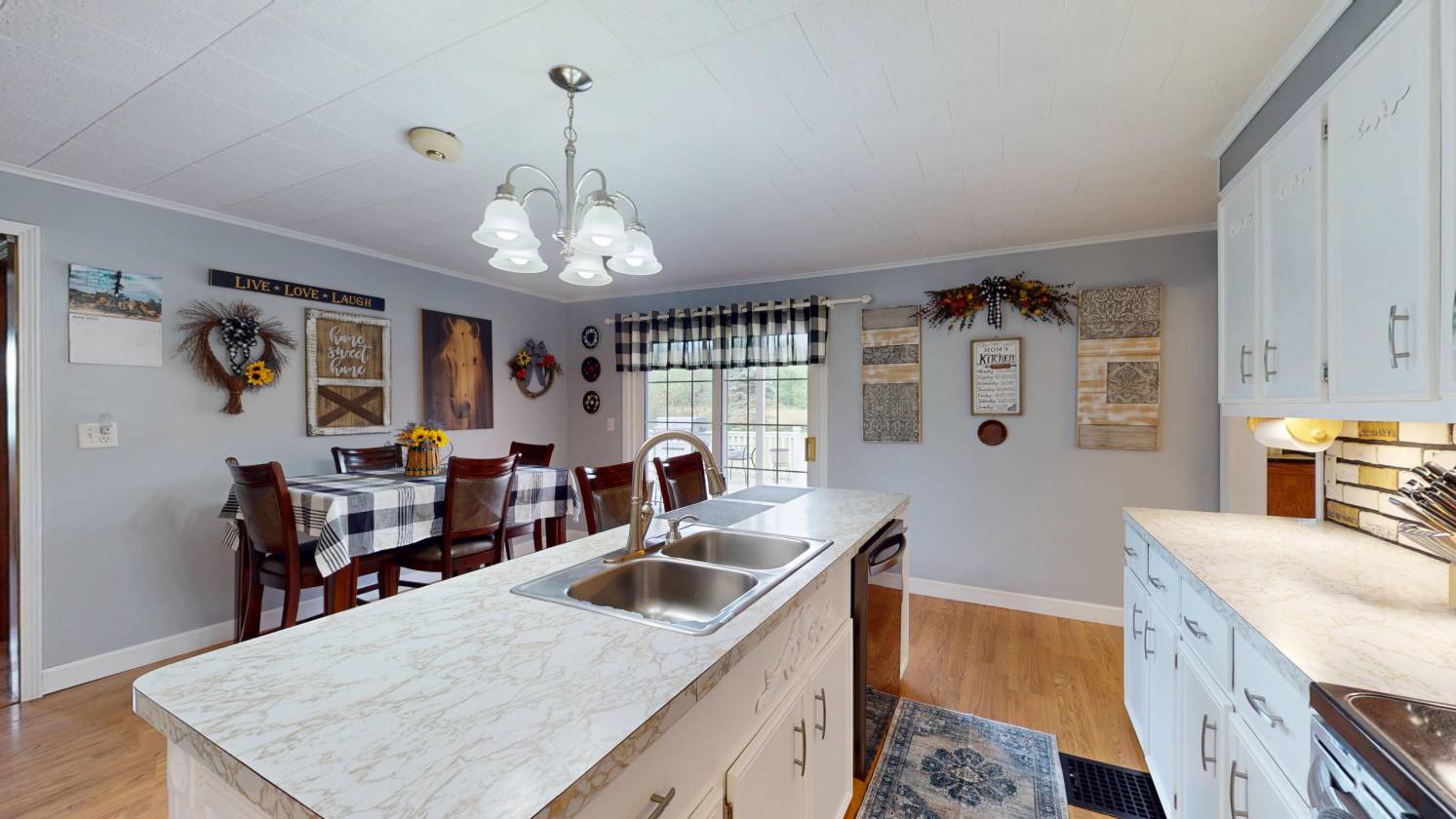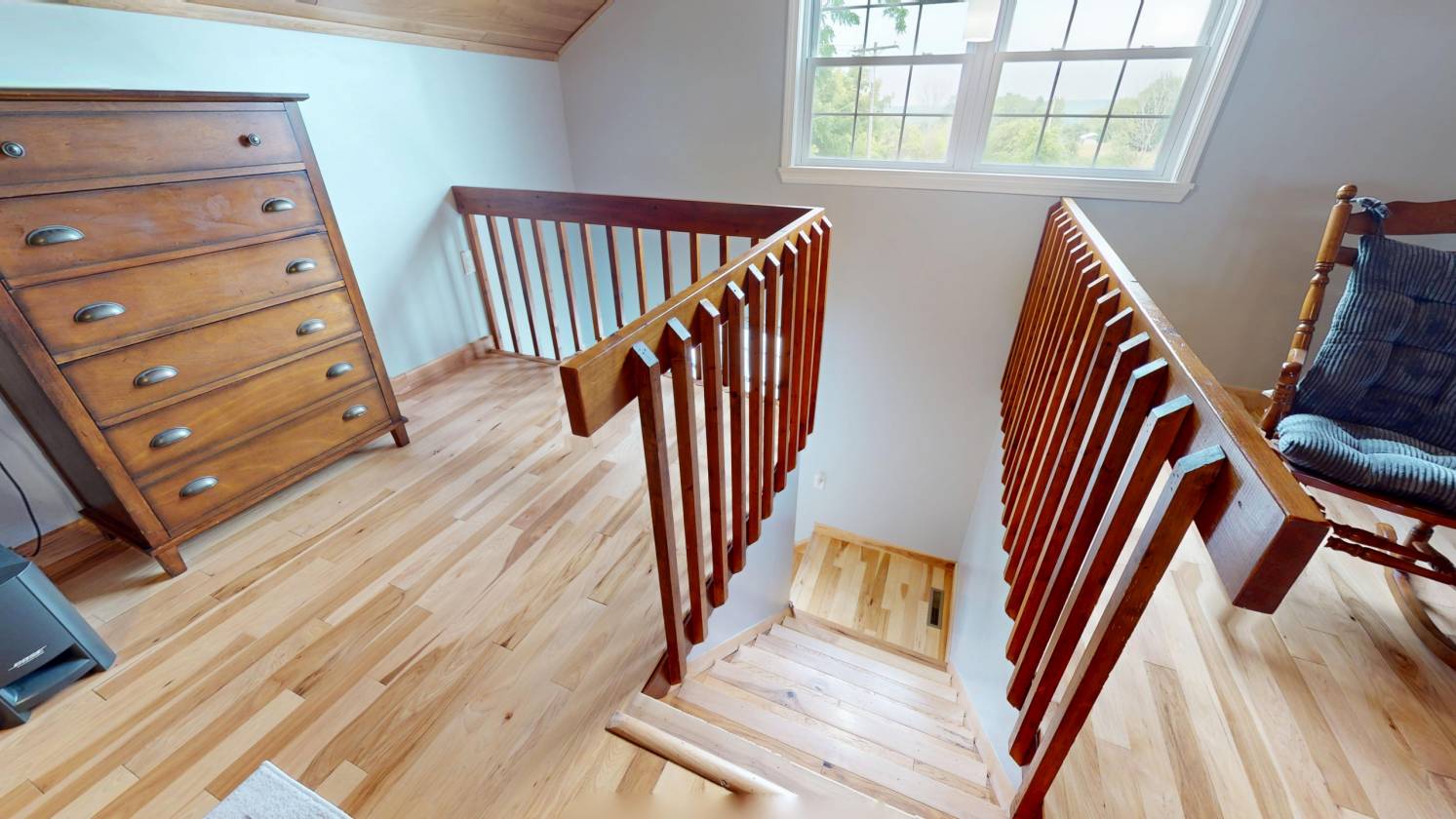 - Interior and Exterior renovated in 2020. Garage renovated in 2017. Floors are hickory hardwood. Ceilings are white oak. Trim is both hickory and white oak. Beautiful entry door. Large wrap around deck with vinyl cover for winter. Stone fireplace with pellet stove insert in living room. Pella windows. Garage 23.5 x 31 with cement floors, woodburning stove, tool cabinets and 8 x 16 insulated door. Basement is full with stonewall foundation walls and spray foam ceiling. On site septic and well.