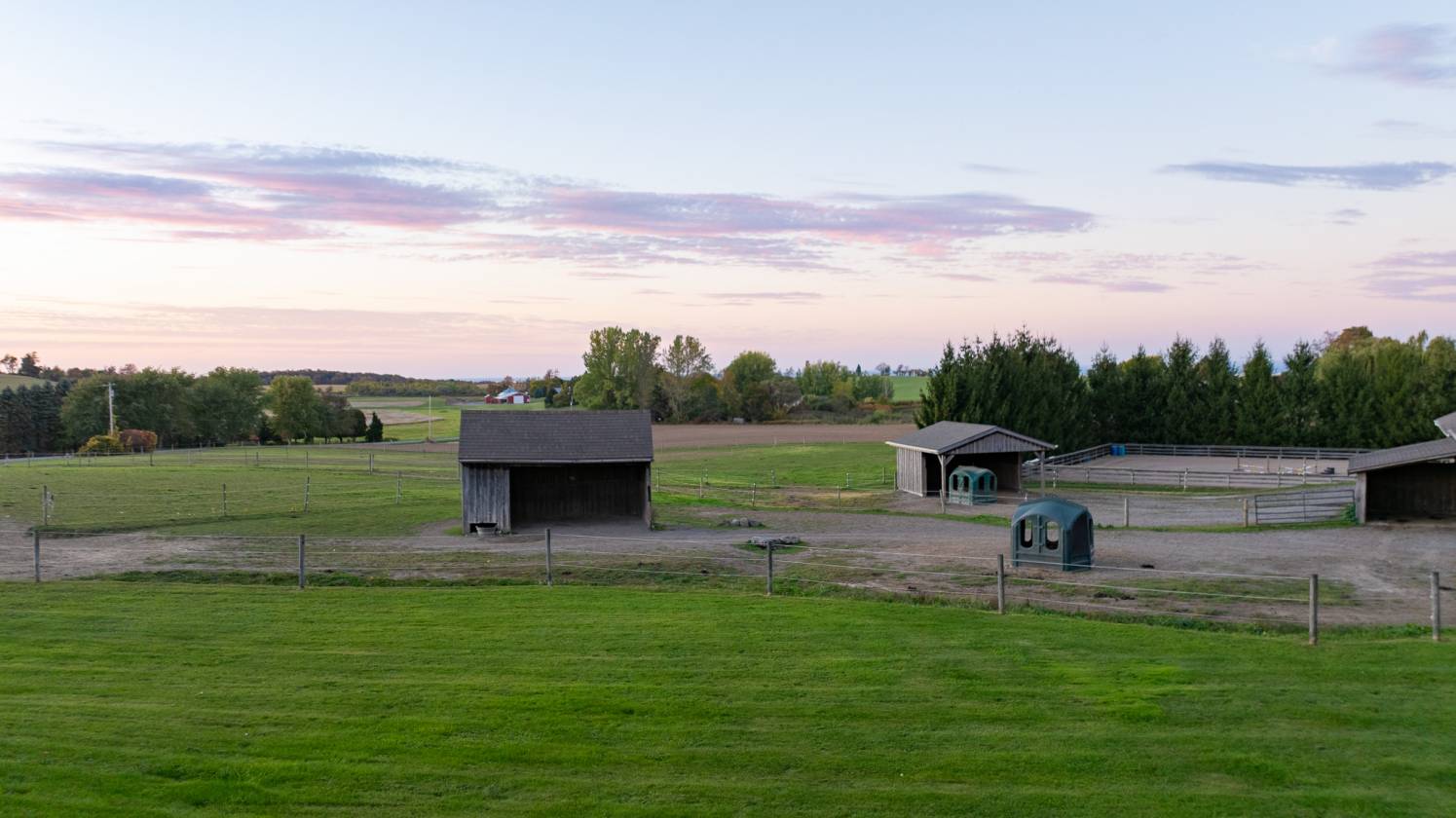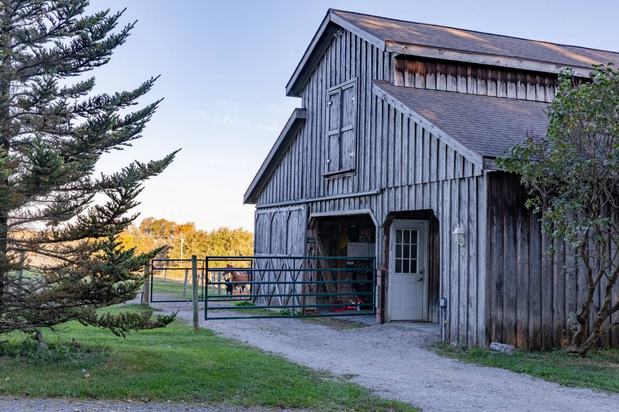 uncovered arena • hay barn • fenced • 2 barns with 9 stalls
