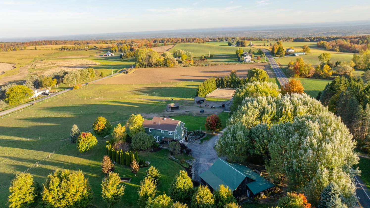 Hilltop Equine Estate - Experience breathtaking views from nearly every vantage point of this stunning hilltop estate. Thoughtfully designed and masterfully built, this 4-bedroom, 3.5-bath ICF-constructed home offers exceptional quality, energy efficiency, and comfort throughout its approximately 3500 sqft, three infloor radiant-heated levels. The main floor features a spacious kitchen overlooking the dining area, family room, and living room—ideal for everyday living and entertaining. A convenient first-floor laundry completes this level. Upstairs, you’ll find four generous bedrooms, each with picturesque views. The primary suite includes a spa-inspired bath and a ”rooftop” terrace that captures the estate’s gorgeous scenery. The lower level offers a versatile space with a full bath and kitchenette—perfect for a game room, guest suite, or in-law quarters. Outdoor living is equally impressive with a back deck and side porch, both offering tranquil views of the manicured 12+ acres. The immaculate 9-stall barn is well-lit and fully equipped with a secure tack room, viewing area overlooking the 100x120 outdoor arena, and multiple well-drained pastures and paddocks. Additional features include a large storage barn and a 2,100 sqft workshop for hobbies or creative pursuits. Come experience the beauty and functionality of this exceptional equine estate—an inspiring place to call home.