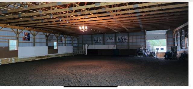 Very nice barn with attached 60x100 riding arena. Barn and indoor were built after I purchased the house, so these buildings are nearly new! Stalls are totally matted including sides. Sand and rubber footing for max comfort. Footing is treated for total dust control. I built this to have my show horses at home with me as I no longer wanted to board. Barn area is heated.. There is a covered walkway that takes you from main house to barn. Brand new HEAT and AC inits this year.. Ideal situation for me would be to rent back from buyer for few months…