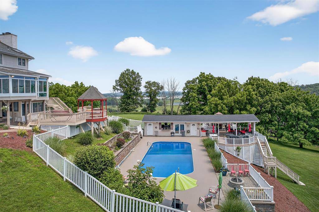 Welcome to an extraordinary 4,400+ square foot residence in the coveted Warwick School district, where luxury and lifestyle converge to create the ultimate entertainer’s dream. This meticulously maintained and thoughtfully updated home offers breathtaking panoramic views, inviting you to unwind in the serene front atrium or the sun-drenched sunroom at the rear. Step inside to discover a harmonious main floor, where an open-flow layout seamlessly blends with versatile spaces tailored for a home office, music room, or study. Freshly painted in a neutral palette, the living room, complete with a TV and Bose surround sound system (included), sets the stage for memorable gatherings. The adjacent kitchen flows effortlessly into a convenient laundry and pantry room, strategically positioned off the garage for easy grocery unloading and discreet meal prep, keeping your entertaining space pristine. Ascend to the upper level, where the master suite serves as a tranquil retreat, boasting brand-new flooring, fresh paint, a modern ceiling fan, and a luxurious 2024-renovated bathroom featuring new fixtures, elegant tiles, and a rejuvenating steam shower. Three additional bedrooms share a fully renovated, contemporary bathroom with sleek fixtures and a walk-in shower, ensuring comfort for family or guests. The walk-out basement, currently a stylish home office, offers boundless potential as a guest suite or multi-generational living space, complete with a private bathroom and dining area for extended stays. The festivities continue outdoors on a private deck and patio, where you can luxuriate in the BRAND NEW hot tub, take a refreshing dip in the pool, or gather around the firepit for s’mores under the stars. Host unforgettable gatherings with the poolside TV, outdoor kitchen, and gazebo bar area, perfect for grilling favorites or crafting cocktails. Nestled just minutes from Harriman, Legoland, Woodbury Commons, and major shopping, with easy access to train and bus lines, this home offers both seclusion and convenience. A scenic drive to the charming Village of Warwick and approximately 50 miles to the George Washington Bridge make this an ideal retreat for those seeking a blend of rural serenity and urban accessibility. This is more than a home—it’s a lifestyle.