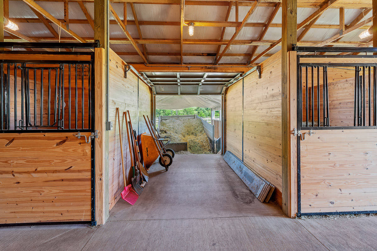- -19 Southern yellow pine 10' x 12' stalls, 1 of the stalls converted to 12' x 20' stall perfect for foaling/stallion stall, easily converted back to 2 stalls if desired