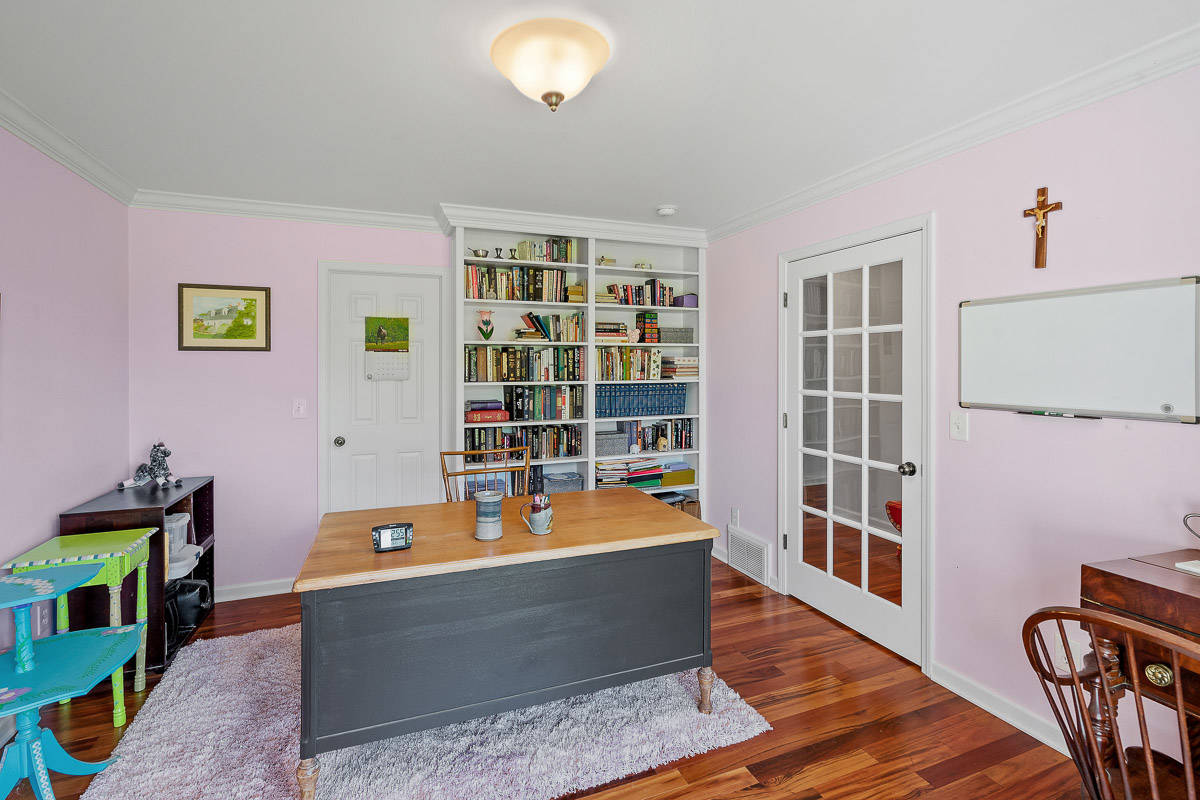 - -3 bedrooms with large walk in closets one has custom shelving currently the office