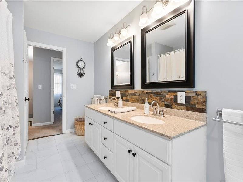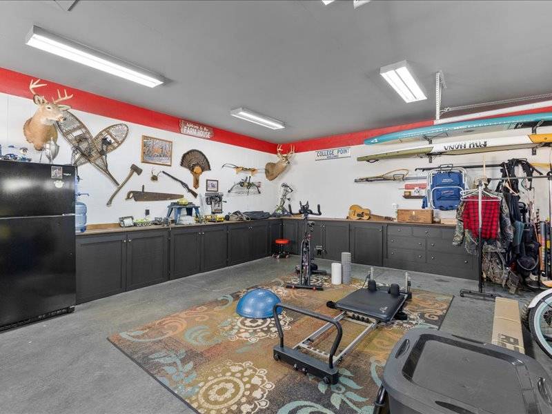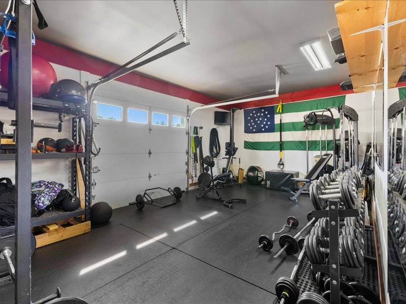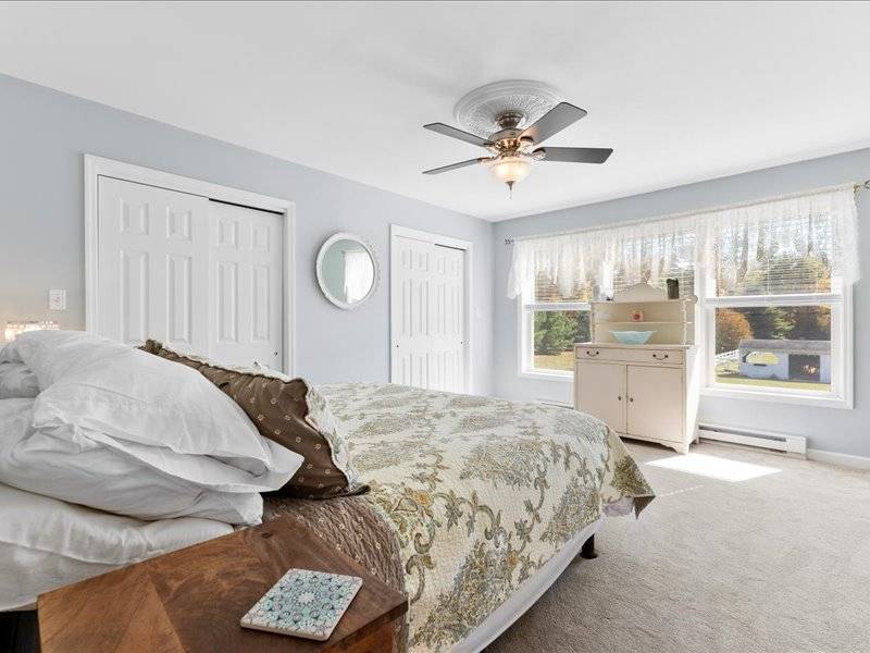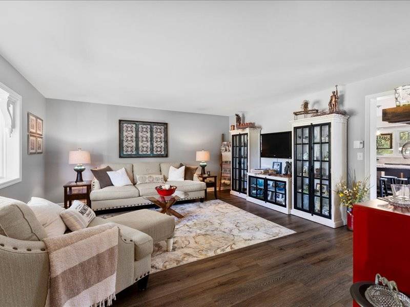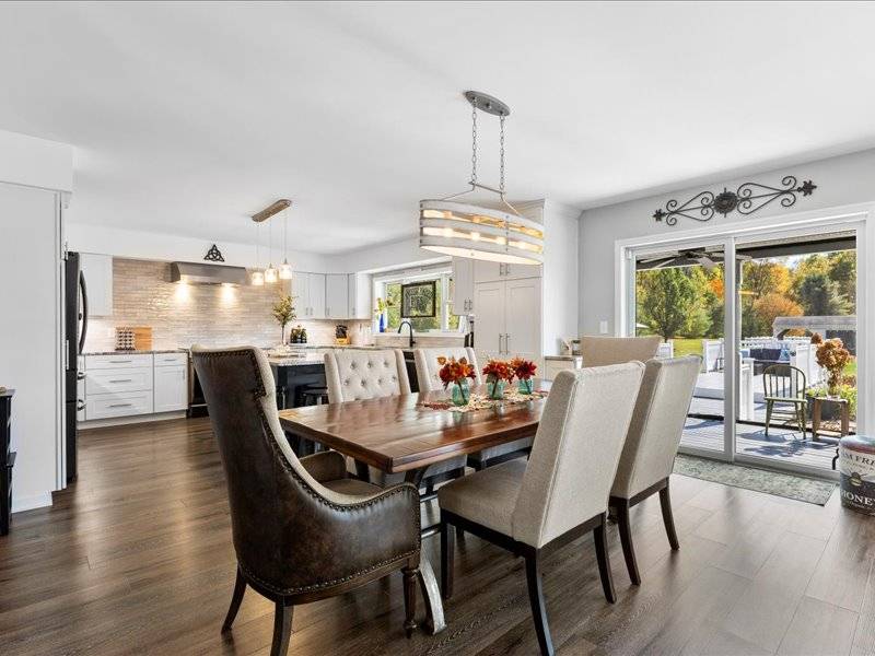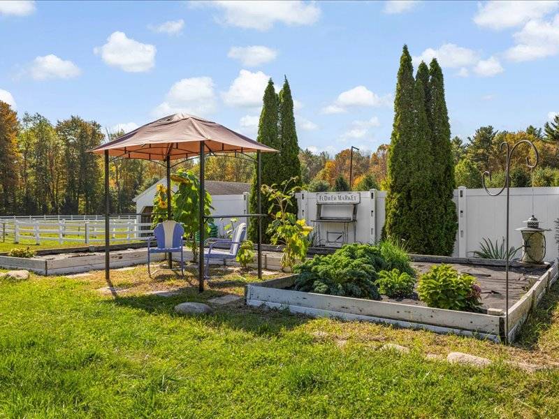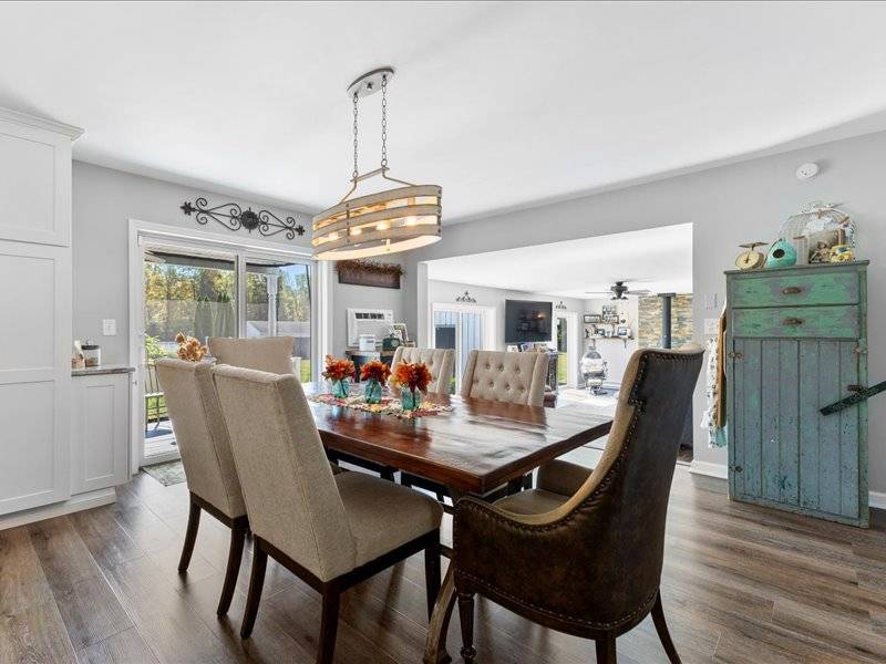 This home shows like a staged model with wide plank luxury vinyl flooring throughout the first floor. The open layout includes a sunken family room featuring a wood stove with a dramatic floor-to-ceiling stone surround. Bright and spacious, the home offers large windows overlooking the back property, barns, and paddocks—perfect for keeping an eye on a horse or two. The versatile property lends itself to many endeavors. Enjoy the multi-level back deck, stamped concrete patio, and fire pit. A screened-in deck with two paddle fans makes outdoor living comfortable day and night. The first floor also includes a laundry room and half bath, which could easily be converted to a full bath. The showcase kitchen offers an island, granite counters, abundant cabinet space, black stainless Samsung appliances, under-cabinet lighting, and a subway tile backsplash. An attached two-car garage is complemented by a detached garage currently used as a workshop and workout space. Additional outbuildings include a barn that could serve as a chicken coop or wood storage, plus two barns and paddocks suitable for horses.