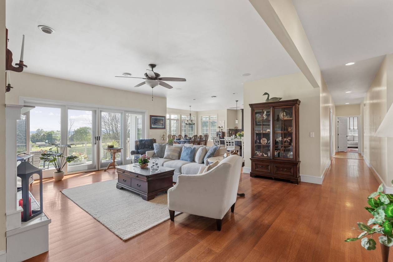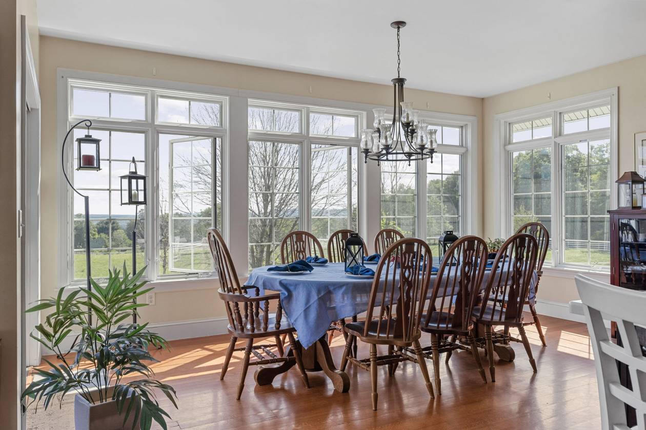 - • Wall of windows overlooking 10-acre horse pasture