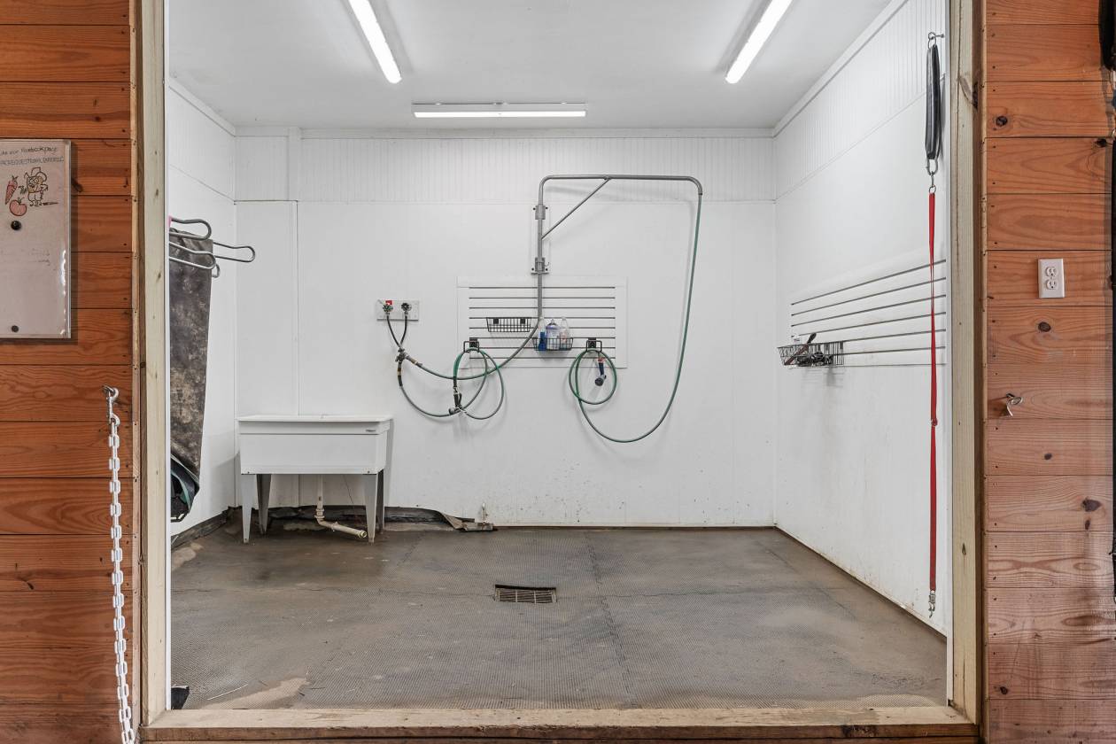 - • Oversized hot/cold wash stall with blanket hangars