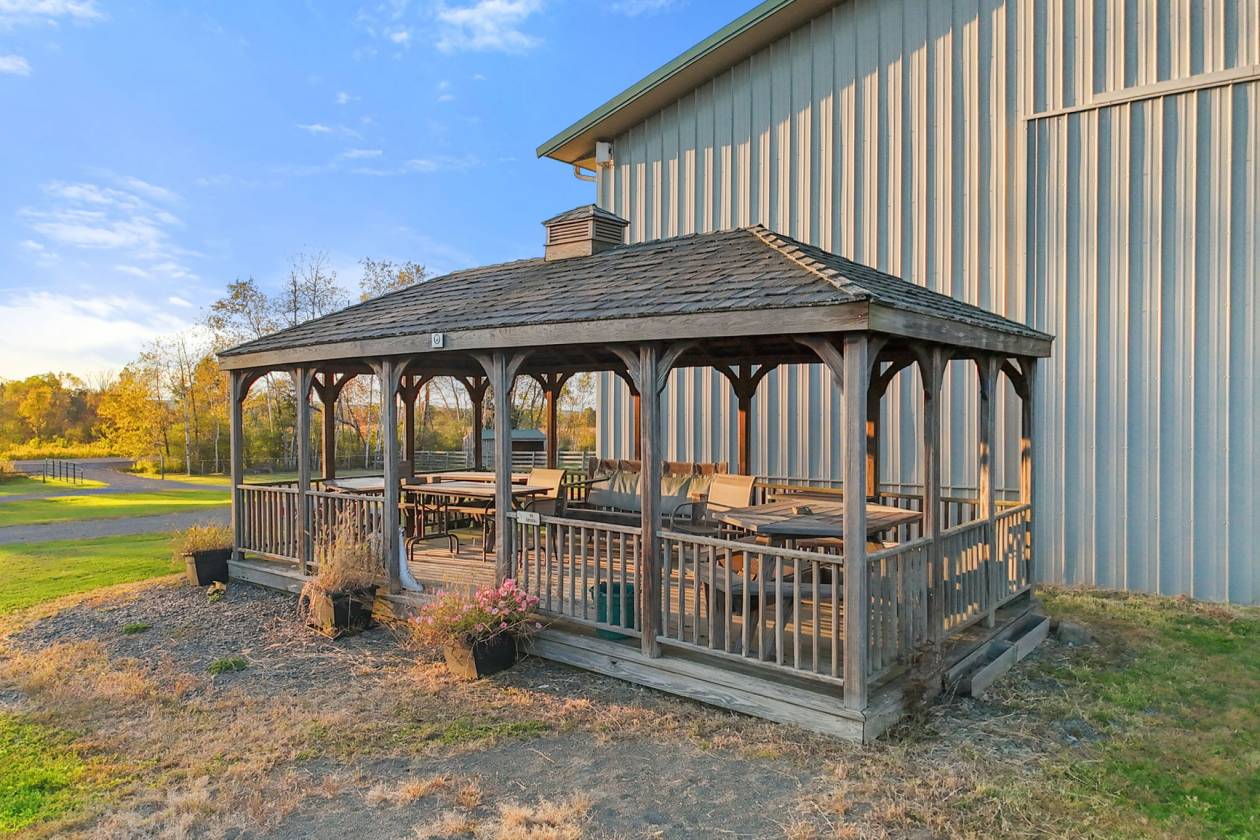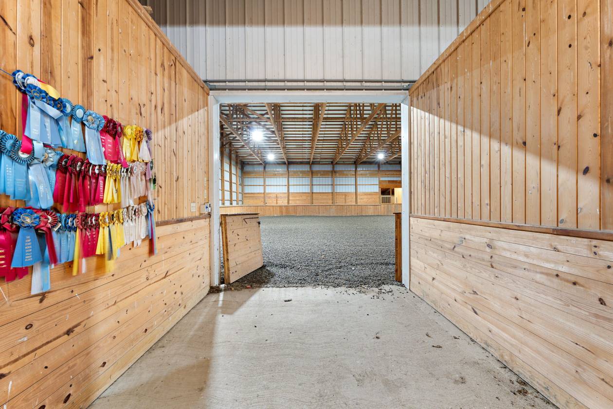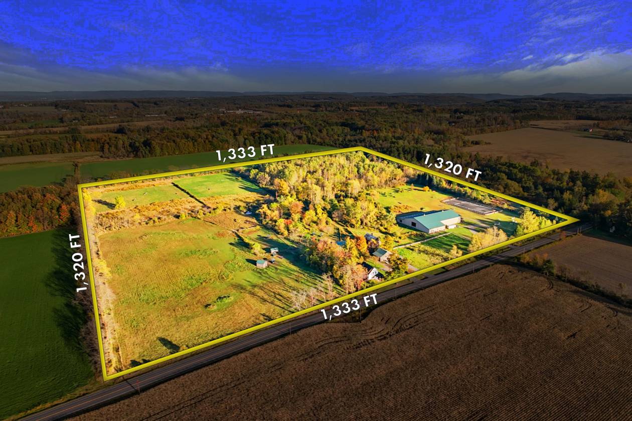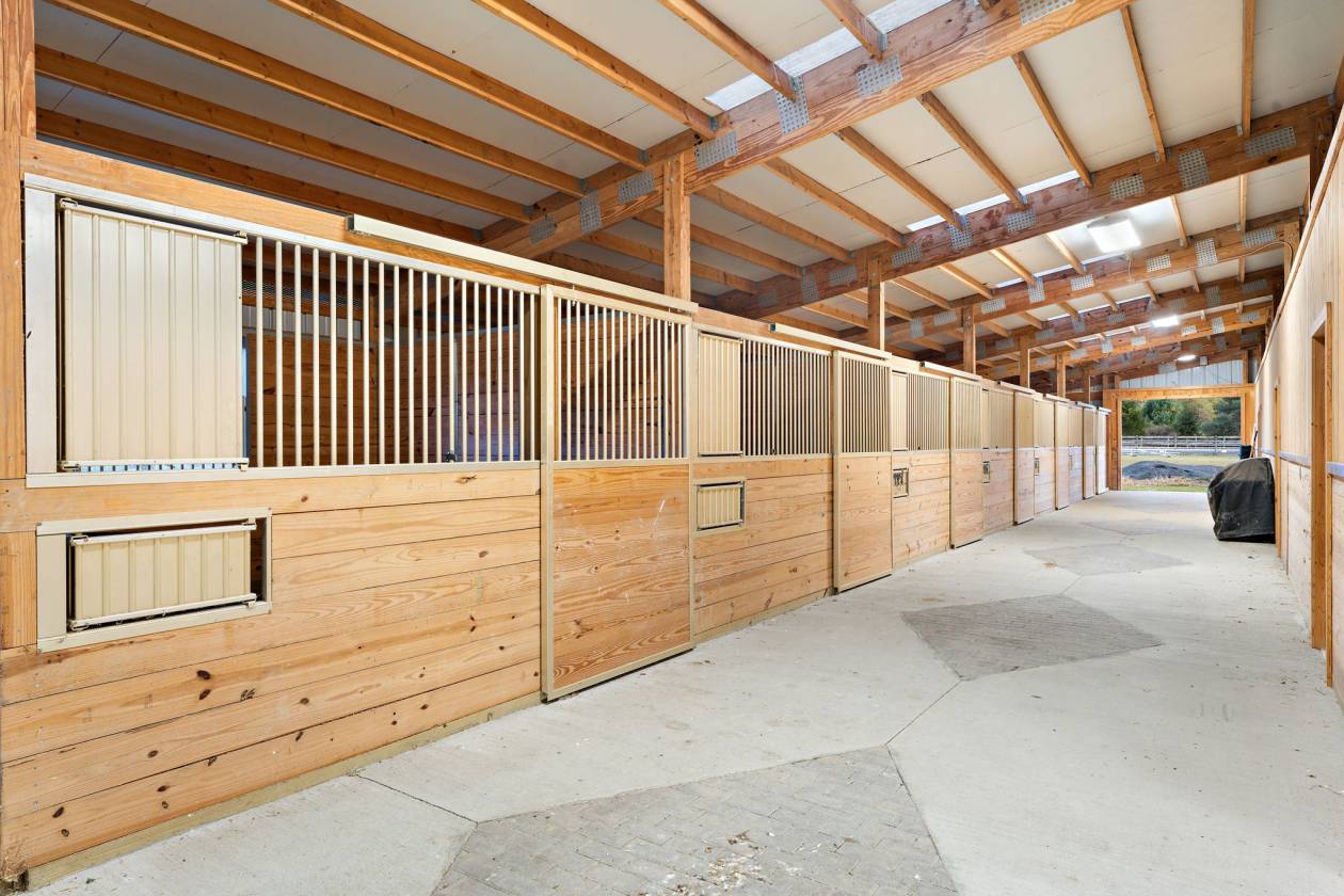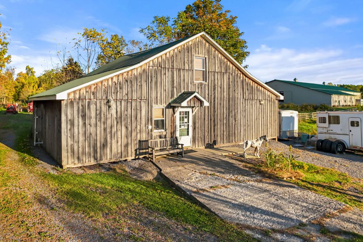 In the idyllic countryside of upstate New York, just fifteen minutes from the internationally renowned Cornell University and its world-class equine and veterinary centers, lies a property of rare distinction and opportunity. This 39.3-acre estate represents the ideal fusion of professional-grade equestrian infrastructure and refined rural living—an address designed for those who expect the very best in both lifestyle and performance. At its heart stands an extraordinary indoor eventing and training complex, purpose-built for the serious equestrian. The 80 x 176 riding arena is surrounded by 18 matted stalls, with windows allowing light and air to circulate freely. The barn’s thoughtful layout includes dual tack rooms, a full kitchen, an office, three bathrooms, 5 grooming bays, a wash stall, generous storage facilities, and two heated viewing lounges overlooking the arena—creating an environment equally suited to private enjoyment, elite training, or a thriving boarding enterprise. Complementing the main barn are a 6-stall stable, a dedicated hay barn, 5 run-in sheds, a six-pen kennel, a chicken coop, and a gazebo—each positioned with both practicality and beauty in mind. A two-story Carriage House offers exciting potential for conversion into luxury accommodation for a farm manager or visiting riders. The grounds are perfectly tailored for every discipline, offering a 100x200 dressage arena and a 2100m cross country course that includes jumping areas and wooded riding trails. 28 acres of fenced paddocks contain 11 separate pastures, all framed by the tranquil beauty of surrounding farmland. Ample parking areas easily accommodate horse trailers, guests, and staff vehicles. Presiding over the property is a historic 1900 Stickley Craftsman farmhouse, a fine example of early 20th-century American design. Featuring three bedrooms, one and a half baths, and a wraparound porch, the residence has been lovingly maintained and furnished with authentic Stickley pieces, preserving its timeless character and charm. Distinguished yet welcoming, this estate offers an extraordinary opportunity for discerning buyers—whether envisioning a boutique equestrian business, training center, or private equine retreat in one of America’s most scenic and culturally rich regions.