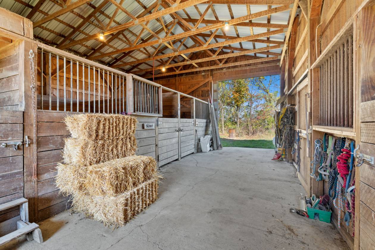 - 4-stall breeding and isolation barn has three 14x16 stalls, one 14x12 stall