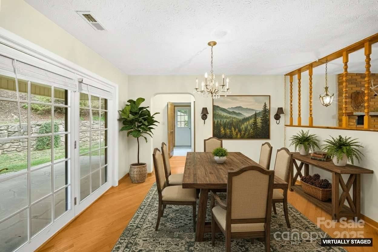 Classic charm meets country living on this beautiful nearly 2.5-acre property just minutes from Asheville. The timeless brick ranch offers easy one-level living with thoughtful updates throughout. Inside, you’ll find hardwood floors, a bright kitchen with real wood cabinets, a peninsula with bar seating, granite countertops, and new appliances. The large cozy living room is anchored by a gas fireplace for ambiance and a blower for extra warmth. The primary suite features two closets and has been updated with new flooring a handicap-accessible bathroom for added comfort and convenience. Step outside to enjoy a large stone patio perfect for entertaining, established garden space, and gently rolling pasture ready for your horses. The impressive 4-stall barn includes power, water, a tack room, hay loft, and a dedicated shed for tractors and equipment, everything you need for a functional mini-farm setup. Whether you're an equestrian enthusiast or simply love the idea of a little extra space, this property offers the best of both worlds: peaceful country living with easy access to Asheville’s vibrant amenities. Horses welcomed!