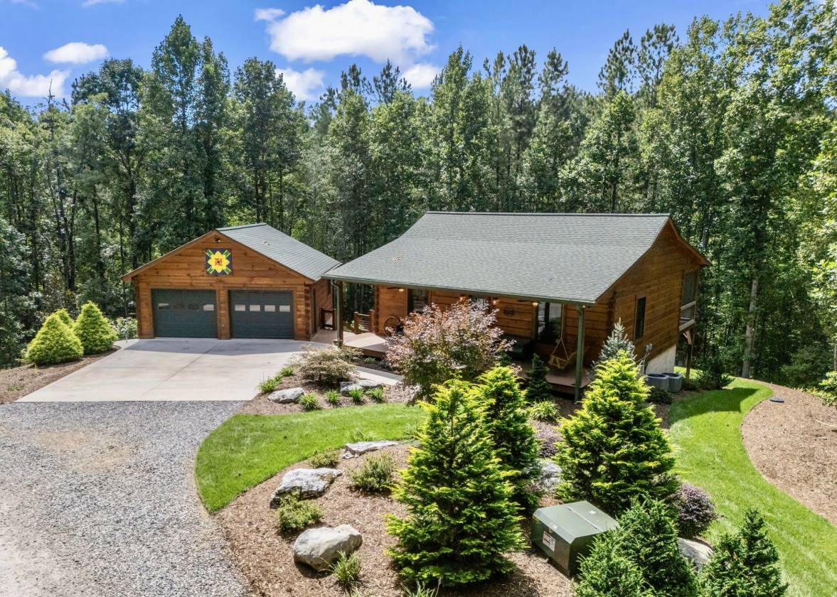 A cozy log cabin. A pristine stream. You've worked hard. Now live the dream. 3 BR 2 BA log home constructed of 10 inch flat surface logs, on 2 acres with a beautiful stream in back. Located at The Coves Mountain River, a 3,200 acre gated community in the Blue Ridge Mountains of NC, with two equestrian centers and a thriving equestrian club. Impeccable land scaping featuring large stones, Japanese maple, perennials and evergreen trees. Front porch (porch swing included), side porch, screened back porch floored with low maintenance composite decking. Great room with vaulted ceilings and a beautiful stone fireplace with gas logs. Kitchen includes a gas range and under-cabinet counter lighting. On-demand gas water heater. Primary bedroom suite and full bath on main floor. In the walkout basement are two bedrooms, a full bath, and a den/sitting room. A concrete patio is just outside the basement. Take the path at the back of the yard down to a beautiful stream. Additional amenities for your Outdoor Lifestyle...community trails to hike, bike, ride horses, or UTVs. Kayak, fish, wade and pan for gold in 5 miles of the Johns River, on site. Community vineyard and garden. Fabulous post and beam Clubhouse, on one of the highest peaks, Wrap around porches and decks to savor 360° long range mountain views, including the Blue Ridge Mountains, the South Mountains, and the Brushy Mountains. Also at the Clubhouse... a saline pool, full kitchen, fitness center, locker rooms, pool table loft, lending library, fire-rings and overlooks. Dog park. Pickleball courts, putting green, shuffleboard. Activities, excursions, socials. 500,000 acre Pisgah National Forest and the Wilson Creek Wild and Scenic River area are across the road from The Coves. 1.25 hr to Charlotte or Asheville. Minutes to Blowing Rock, Morganton, Lenoir NC, and Blue Ridge Pkwy. The mountain vibe and outdoor lifestyle await!