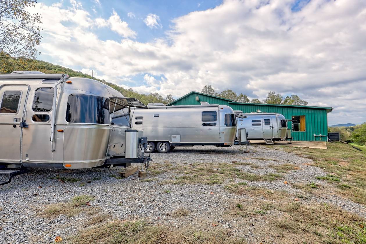 - Additional Building called "The Lodge": Under Construction – Pella Windows & Doors, Wood Siding, New Metal Roof, Massive 16 ft Covered Deck, Full Kitchen, Full Bath & Laundry, Office Area with Views, Large Bedroom, Large Great Room, Tall Ceilings – Bedroom could be divided into 2 Separate Sleeping Spaces, 3 RV Hook-up Sites with 3 Airstream Units: 27 ft Flying Cloud, 30 ft International Christopher Deam Signature Series, 45 ft Flying Cloud, New Well with Pump and Filtration System and 4-Bedroom Septic System