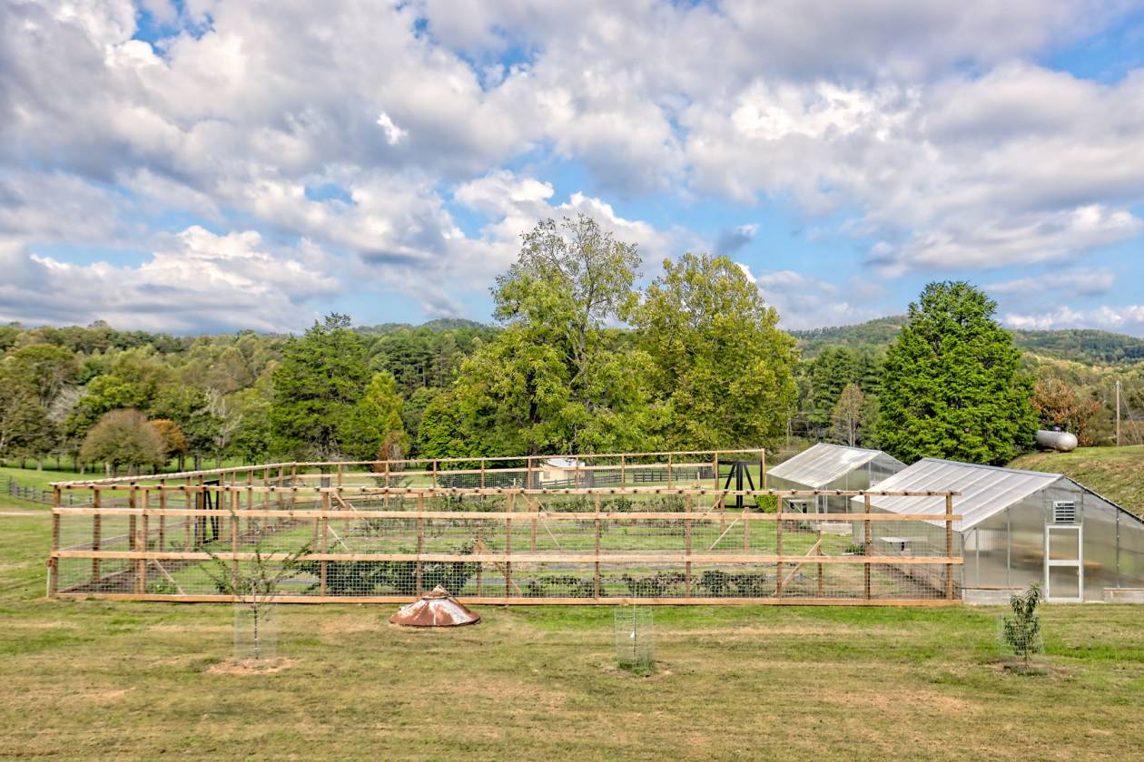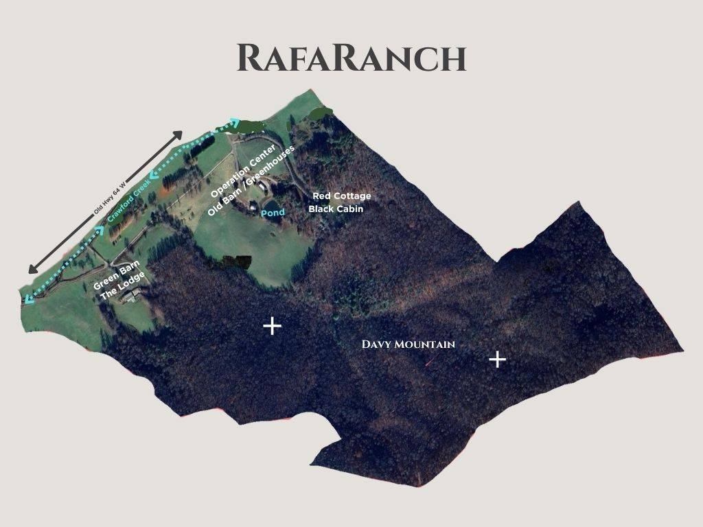 Introducing RafaRanch, a serene sanctuary for farming, livestock, hunting, and outdoor recreation. This is a rare opportunity to acquire one of Clay County's largest land holdings, comprising 349.711 acres of unrestricted land. The property features a perfect mix of pasture, woods, and creek frontage, spanning over the Davy Mountain range. RafaRanch includes a main residence with 3 bedrooms/3.5 baths, as well as a guest residence consisting of two studio apartments, each with 1 bedroom/1 bath and private entries. For gatherings and events, there is The Lodge, in addition to three RV hook-up sites with Airstreams. The Operations Area includes a barn, equipment barn, covered hay storage, two greenhouses, a large garage/workshop, along with 85 acres of pasture with waterers and fencing. The ranch also features a skeet shooting and gun range, a pond, and 3,500 feet of frontage on Crawford Creek, 4+ natural springs, all secured by a gated entrance. The property is being sold fully furnished, including equipment and Airstream RVs. A detailed features sheet is available upon request. The owners have dedicated significant effort and thought into the continual improvement of the ranch. This unique blend of rural privacy and proximity to essential services is found near Hayesville, Murphy, Hiawassee, and Blairsville. Approximately 2.5 hours to Atlanta or Asheville airports.