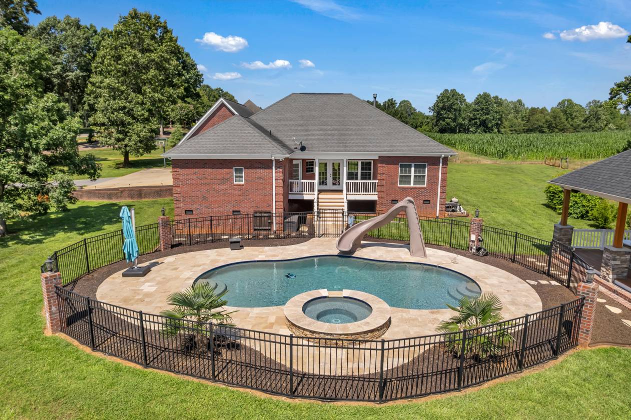 Gorgeous 3 bedroom, 3 bathroom brick home on 11.4 acres with approx. 180’ of Broad River frontage, a resort-style saltwater pool & fenced pasture! This open concept, split bedroom home features engineered hardwoods in main areas with a comfy living room with gas fireplace, formal dining room and kitchen with updated stainless steel appliances and island. Large primary suite has a seamless glass shower, tub & dual vanity. The Jack & Jill bedrooms are perfect for any situation. Upstairs has a large bonus room with endless opportunities. A travertine deck, slide, cleaning robot, fully automated Hayward Omni Logic system & hot tub complete the pool area. Entertain in the pool house with Bluetooth-controlled LED lights, built-in speakers, gas fire pit, outdoor TV, drop down movie screen & a outdoor kitchen. A koi pond w/butterfly koi, horseshoe pits & adjustable basketball goal add to the fun. Renai tankless water heaters (house & pool), Rainsoft water filtration. A true private paradise!