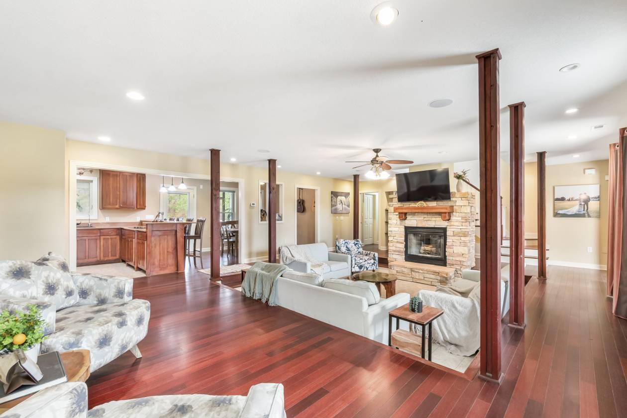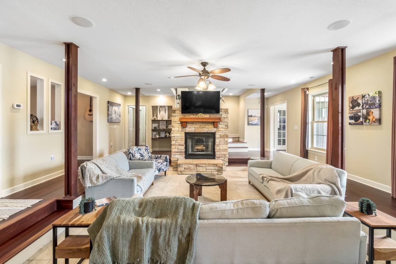 The home has been meticulously maintained and thoughtfully upgraded. Space is no issue with 3 bedrooms plus an office, a second living room over the garage with a bathroom, and a bonus room! Major improvements include a new air handler, new tankless water heater, new whole-house water filtration and softener, a new triple-stage kitchen water filtration system, fresh paint, and new flooring including carpet in the office, primary bedroom, and guest bedroom. Septic was pumped in 2024. Carrier Mini Split system installed in 2024 to heat and cool the garage/gym.