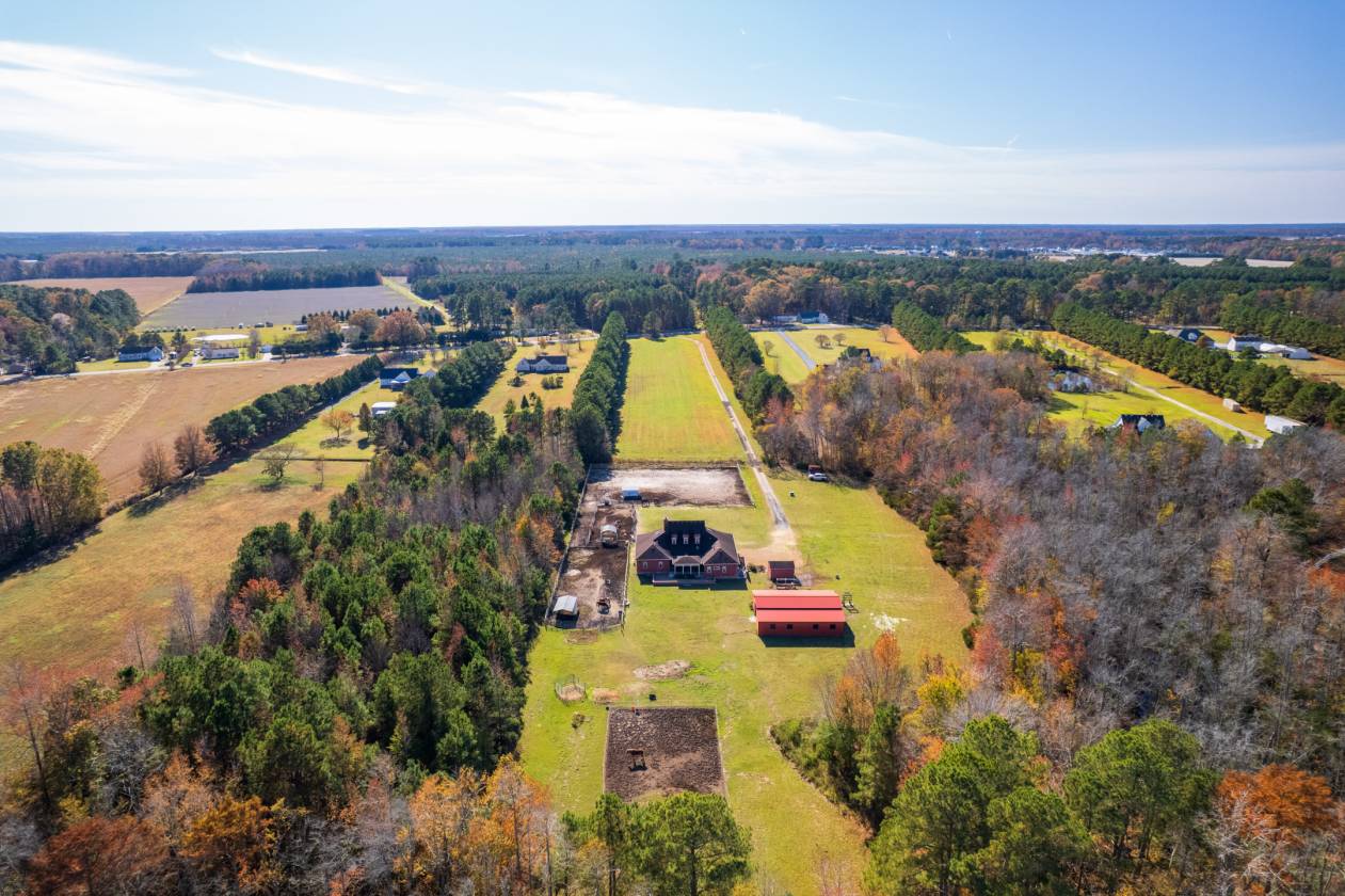 You're only 15 minutes to Chesapeake, VA, 30 minutes to Elizabeth City, and 40 minutes to the Outer Banks. You're only 35 minutes from Norfolk International airport. A private quarter-mile driveway leads you in, and the front 5 acres are currently a hay field with excellent pasture potential.