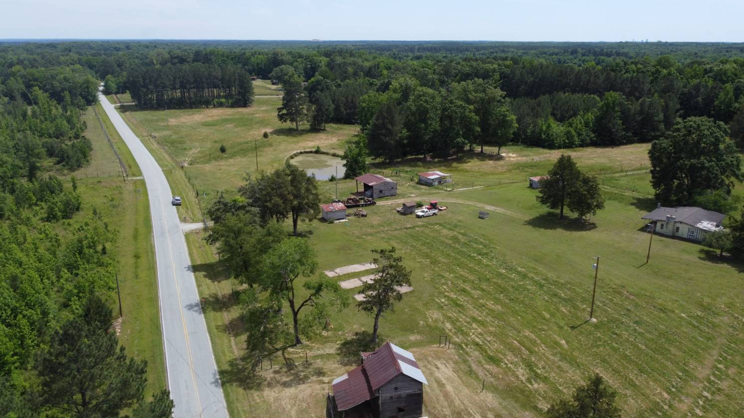 - Small pond, several barns and storage buildings.