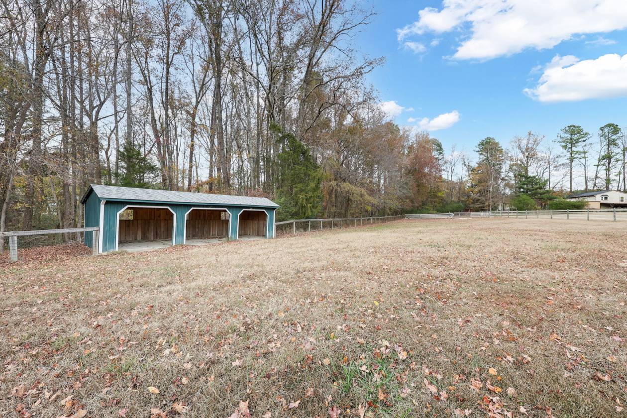 - -Half bath inside the barn, a major convenience for riders and boarders